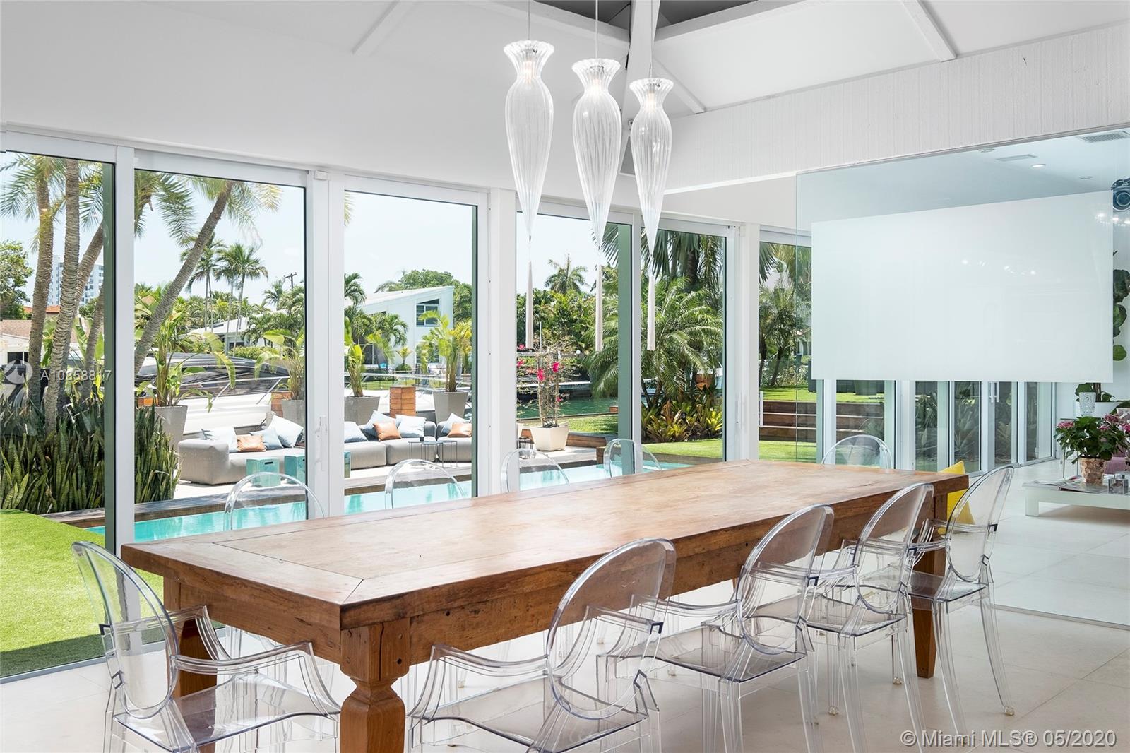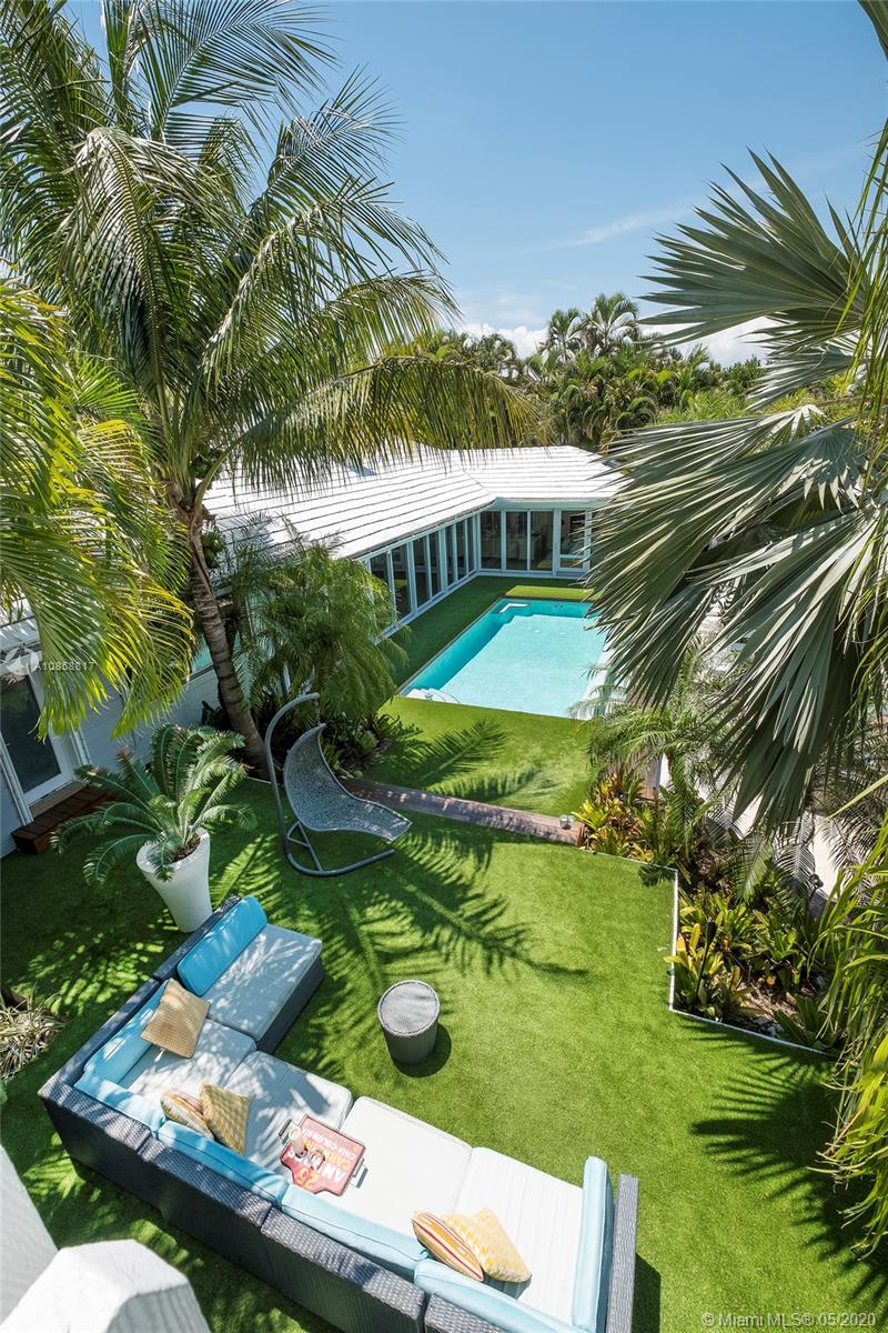 Exceptional St. Barth’s style tropical 18,750 SF double lot estate. Features 6,771 Adj SF area plus professionally designed open layout kitchen/dinning/living provides an ideal lifestyle for large dinner parties, entertaining or lounging w/family. High ceilings & impact sliders bring in natural light making for an incredible indoor/outdoor feel. Private master suite encompasses entire 2nd level & features high beamed ceilings, living area, office & 2 walk-in closets. Luxurious limestone master bath w/free-standing deep soaking tub, glass shower & access to huge private terrace offering open water bay views. Exterior features infinity edge pool, covered bbq/bar pavilion, curated landscaping, 150 FT dock w/no fixed bridges & direct ocean access. Minutes to Bal Harbour shops & beach.
