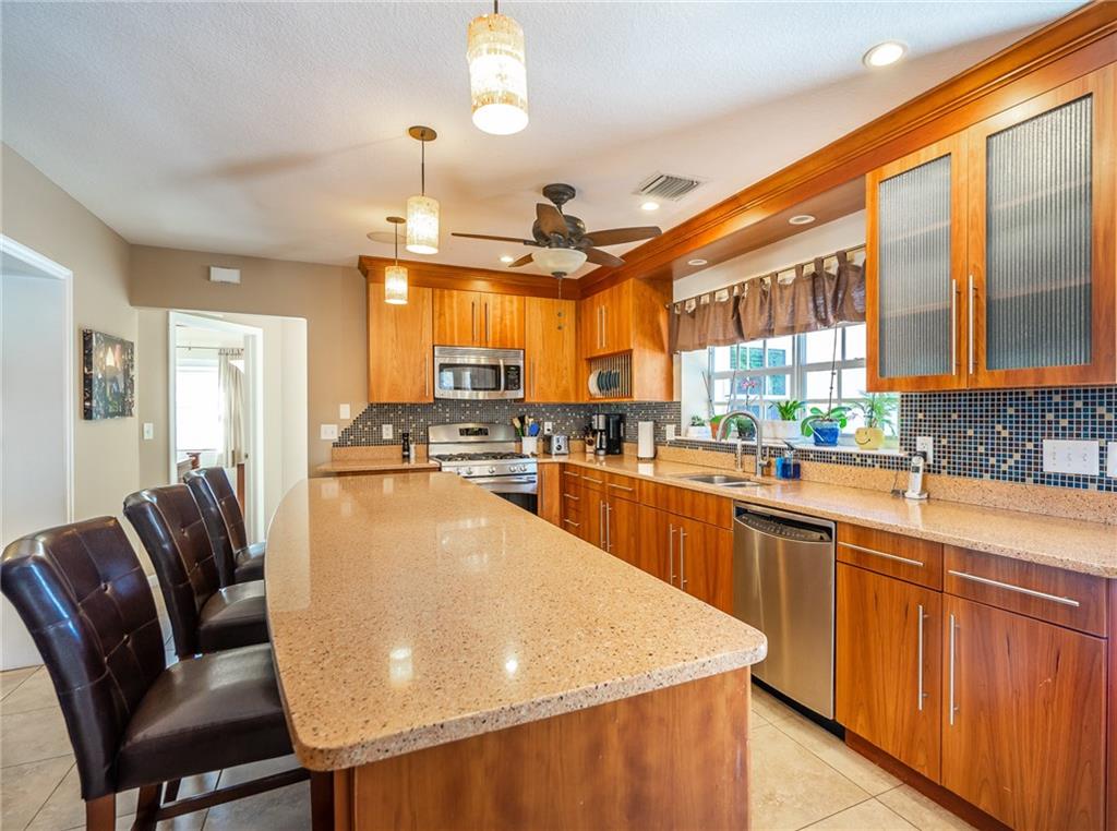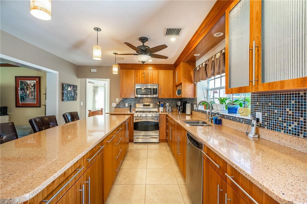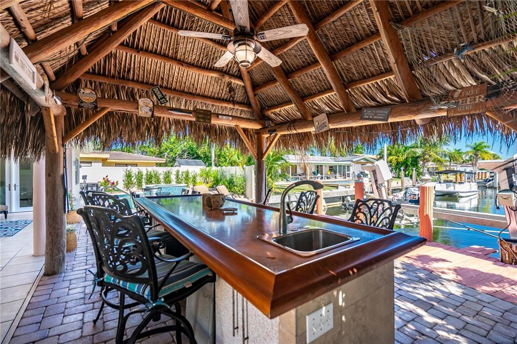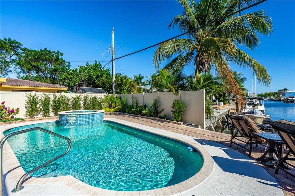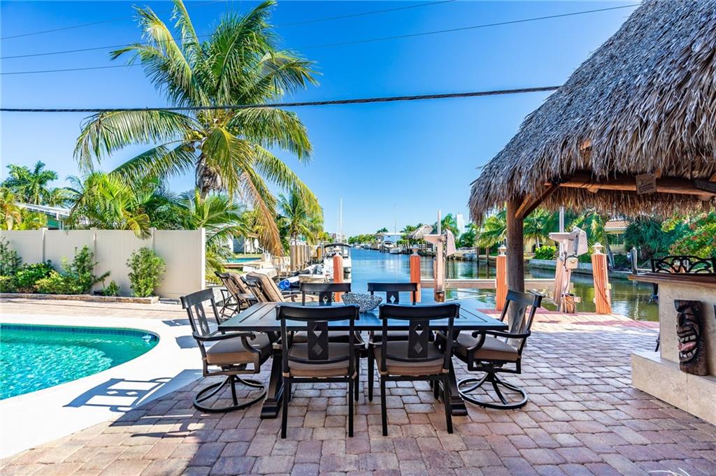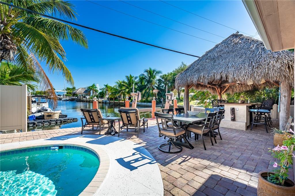 An amazing unobstructed view from your deep water, east facing dock is just the tip of the iceberg that this remodeled and pristine 4 bedroom / 3 bath home has to offer! 15-20 mins to the ocean by boat! Outside Tiki bar with power and water, 10,000 lb boat lift, in ground pool with spa, plenty of space to entertain and still have the grassy area for your dogs! Gorgeous chef's kitchen with gas range and all newer appliances, formal dining, and ample sized laundry room. Lovely bamboo floors in the bedrooms. All impact windows, doors and sliders, barrel tile roof new 2011 and flat new 2017. State of the art Carrier A/C 2016. You don't even need to paint to move in! Natural gas runs the dryer, stove, tankless water heater, and pool heater. Centrally located with easy access to the beach/shops