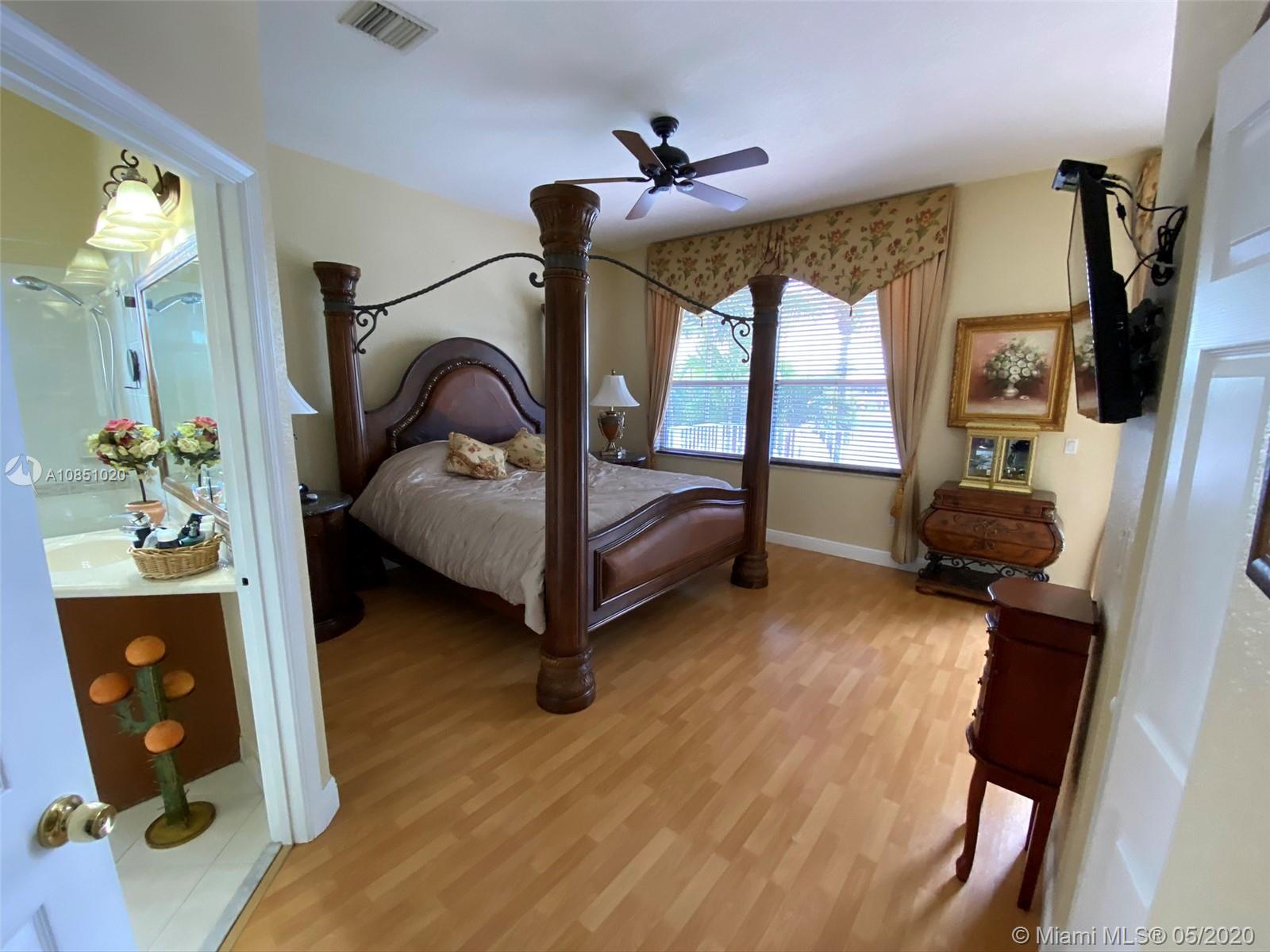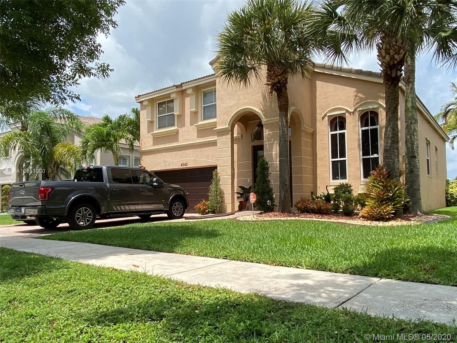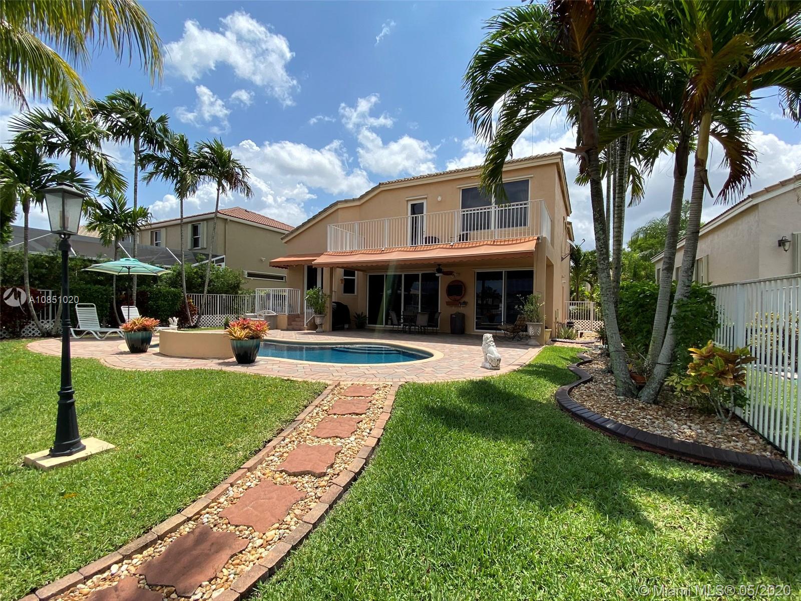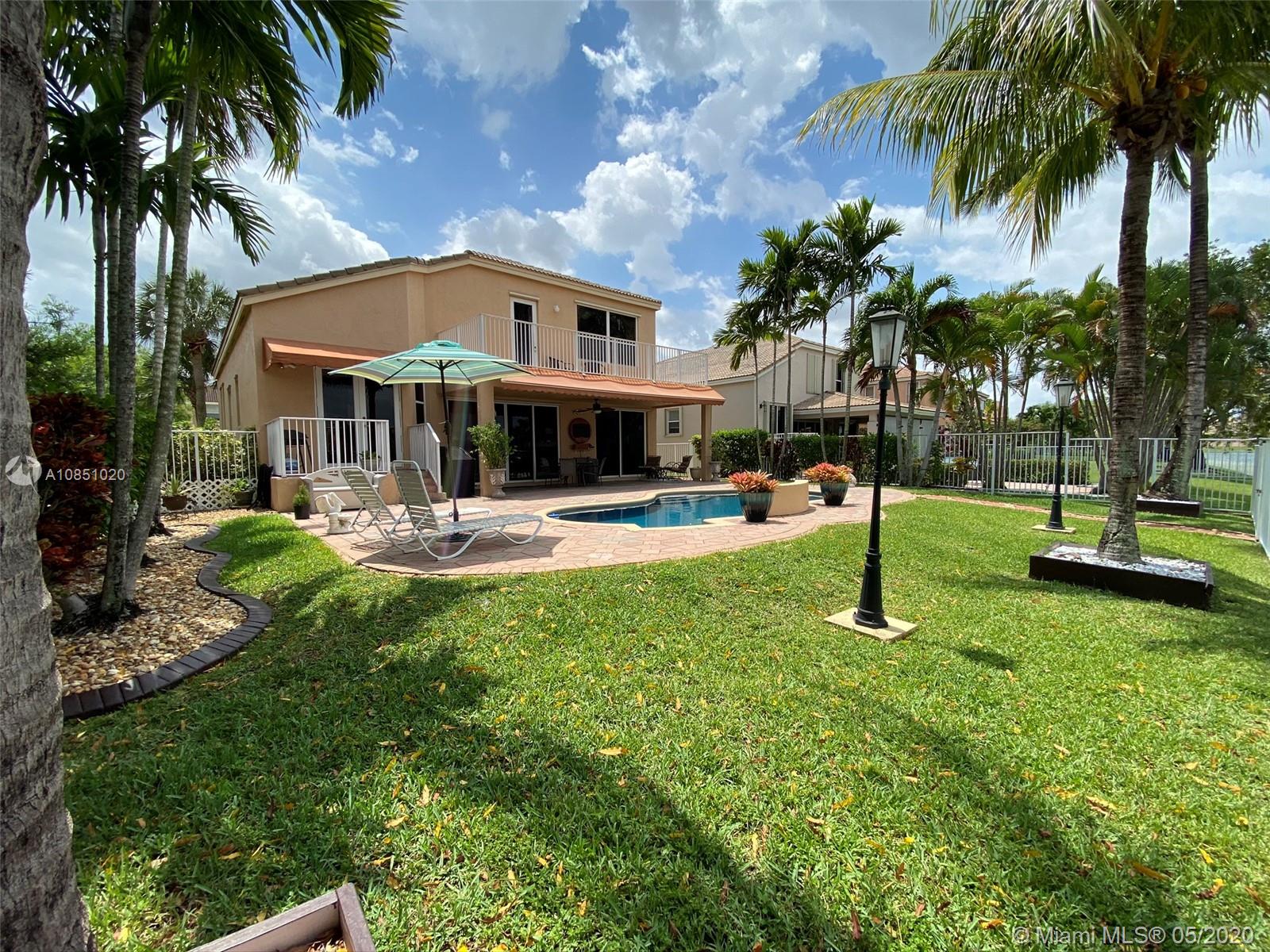 Beautiful & luxurious 2-story, 3-bedrooms & 3-baths (original floor plan 4/3), 2-car garage, pool/lake family home. Master bed on 2nd story w/balcony overlooking lake. Many upgrades:custom kitchen cabinets granite counter & backsplash, stainless steel appliances, washer & dryer, upgraded lighting, tile & wood flooring, awnings. Great schools. Gated community w/security & clubhouse w/exercise facility, community pool, tennis & basketball courts. Immaculate & Quick Move-In Condition. All furniture negotiable. Must See!