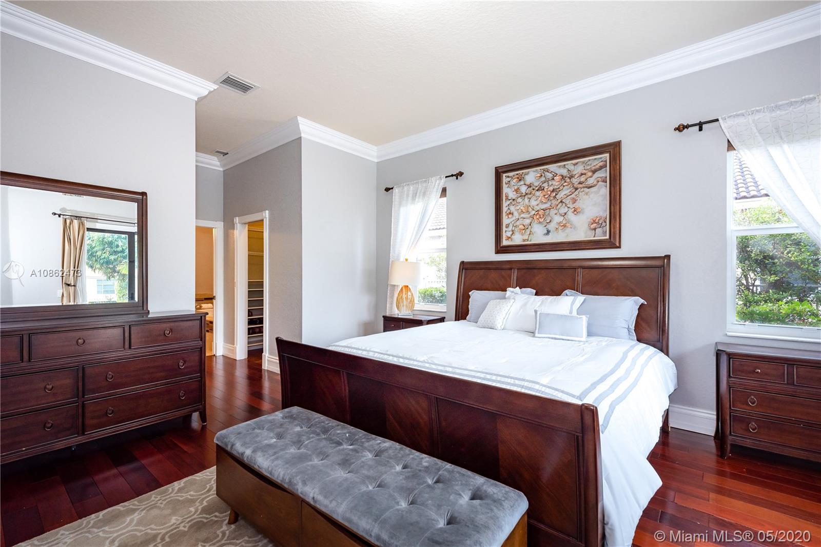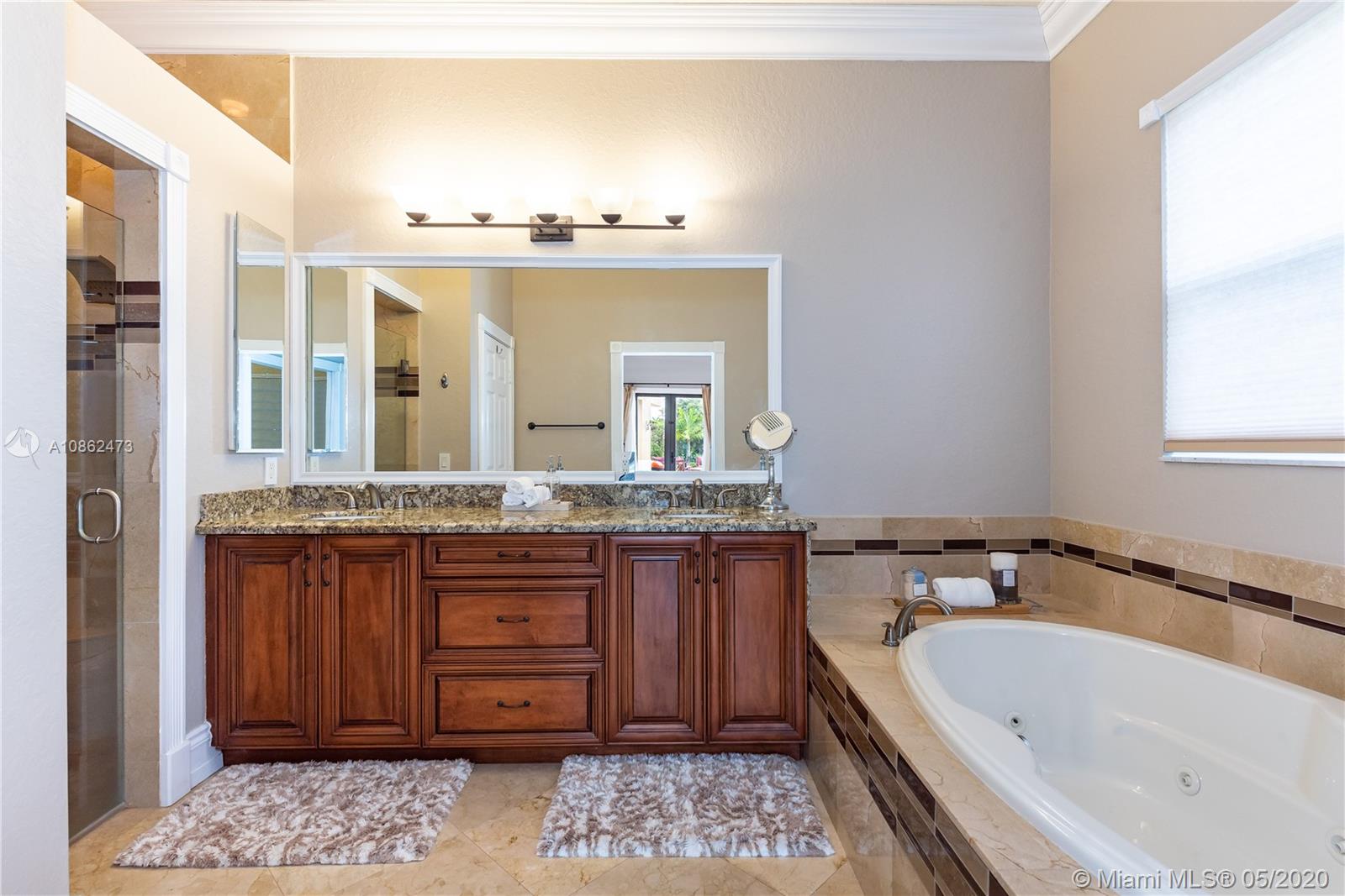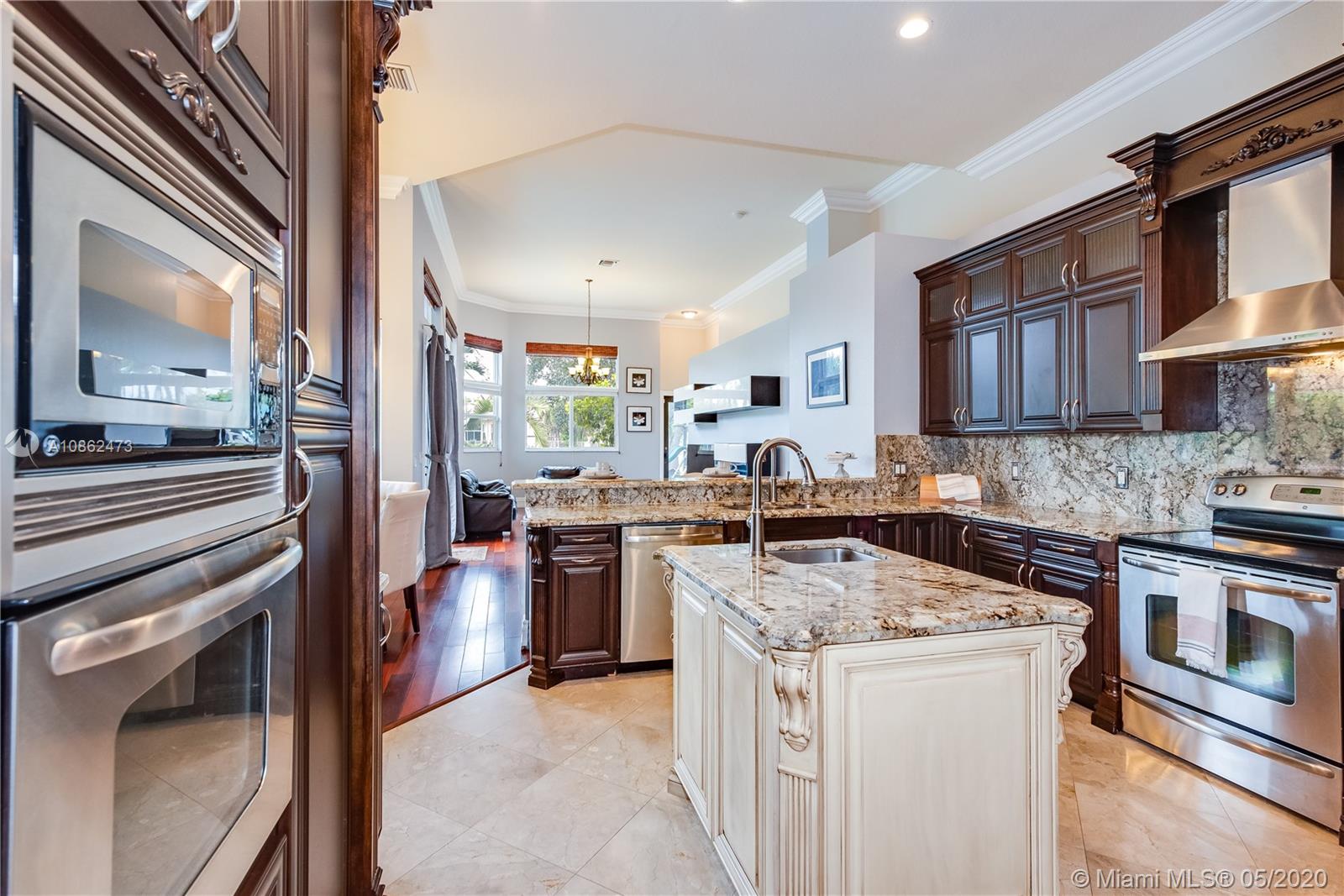 WOW! FULLY UPGRADED, contemporary 5 true bedrooms ~ 3000 sf under air with an open flowing floor plan, high ceilings & lots of natural light. Kitchen is a true chef's dream w/ upgraded custom wood cabinetry, gorgeous granite & high-end stainless package. Elegant foyer leads to triple split bedroom plan w/ 4 updated full baths. Beautiful marble, hardwoods, crown moldings, central vac & built in cabinetry including a contemporary backlit bar area. Step outside to a true Florida paradise with 11,471 sf BIG lot, covered patio, sparkling pool, fruit trees, breezy water AND lush green golf course views. Terrific hurricane protection and insurance discounts with full IMPACT WINDOWS & DOORS including garage. Wonderful gated community w/ an excellent central Davie location. BEST SCHOOLS!