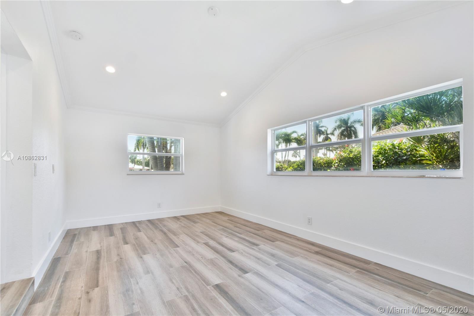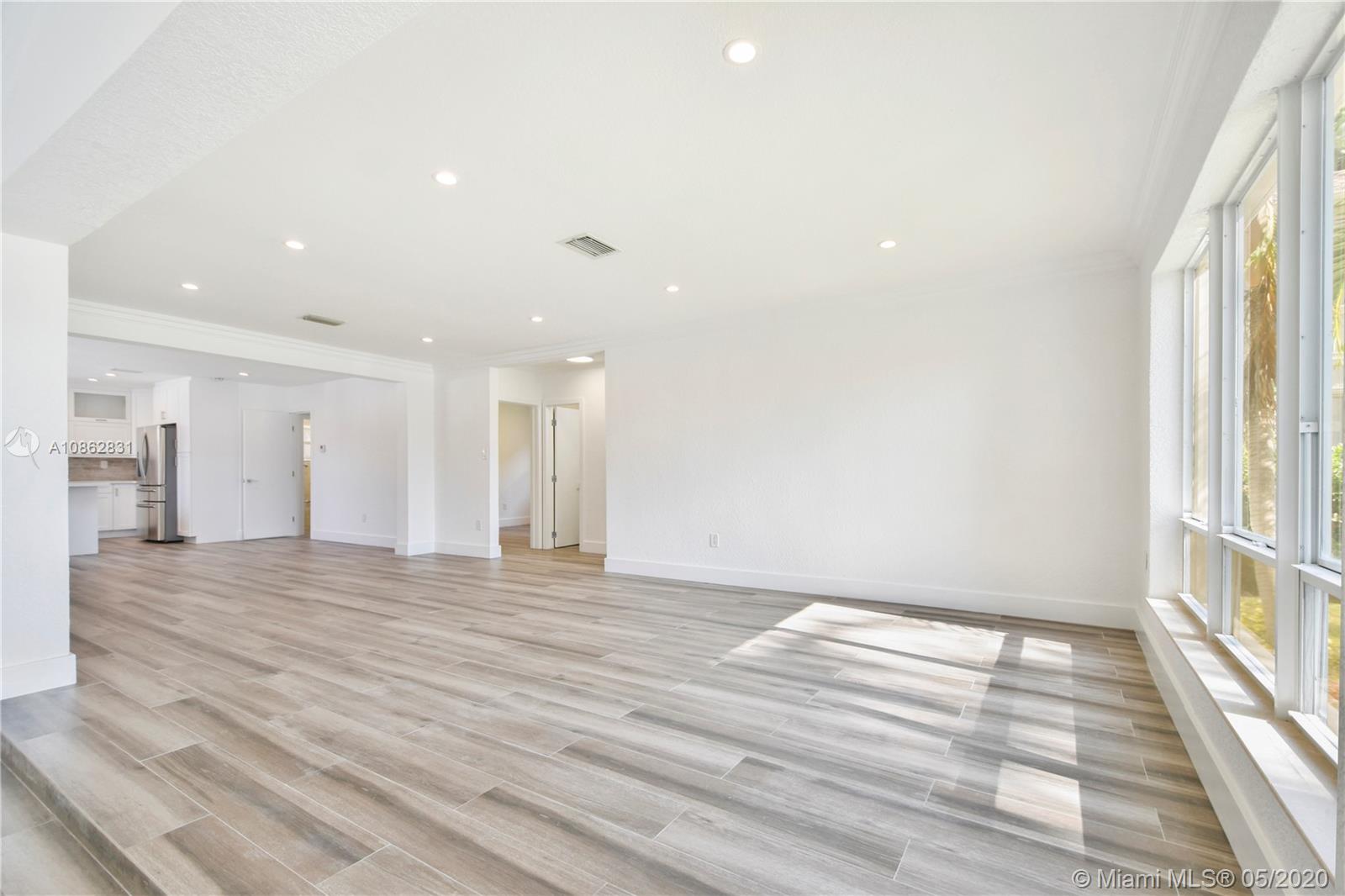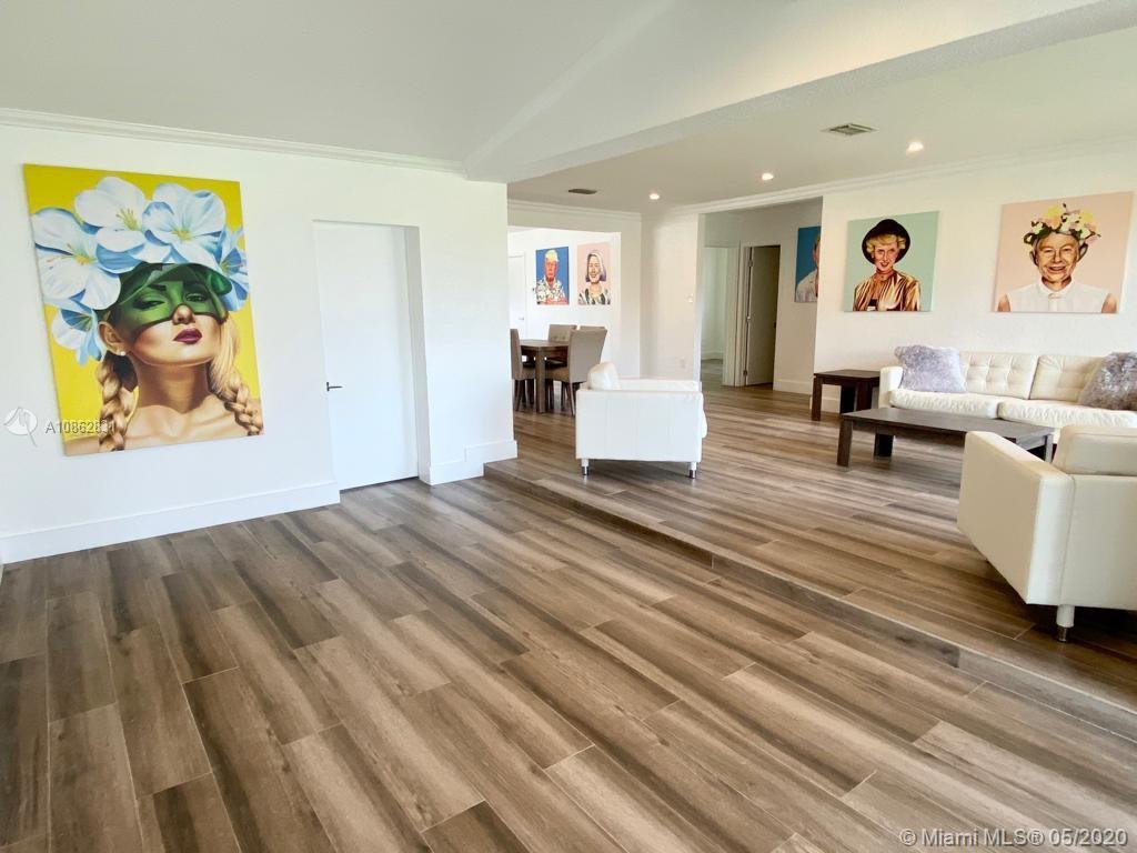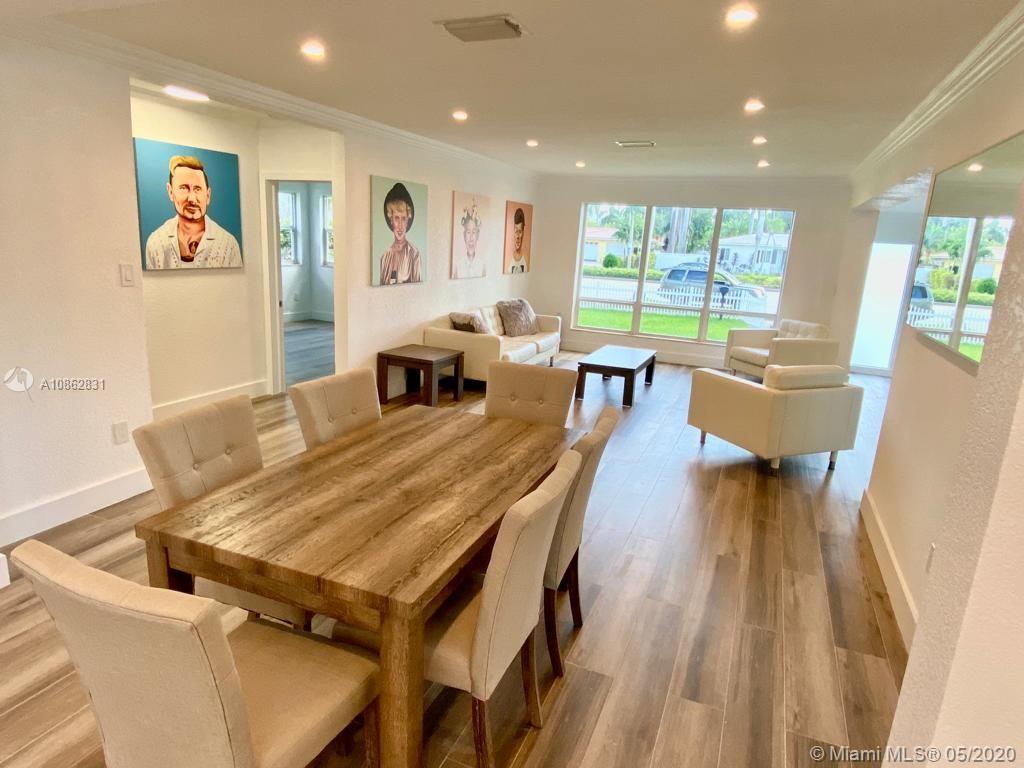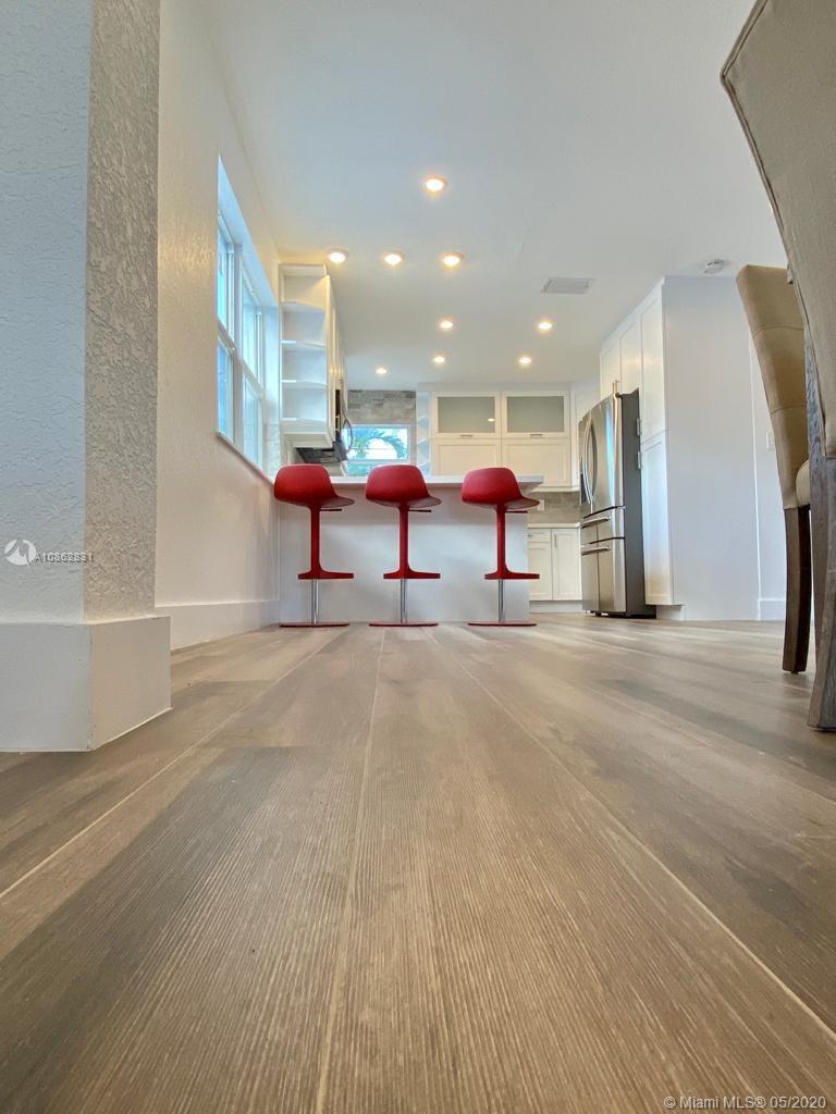 4/3 with salt water pool. Beautifully remodeled! Italian porcelain wood look tile throughout. New kitchen with top of the line quarts countertops and stainless steel appliances. Open layout with tons of natural light. 2 master bedrooms with on-suite bathrooms, one with large whirlpool. All bedrooms have built in European style closets. Laundry room with tons of storage space. Large fenced in front yard and backyard big enough to park a boat or RV. Pool with brick pavers and tons of space to BBQ and host parties. Walk to the beach or Downtown Hollywood.