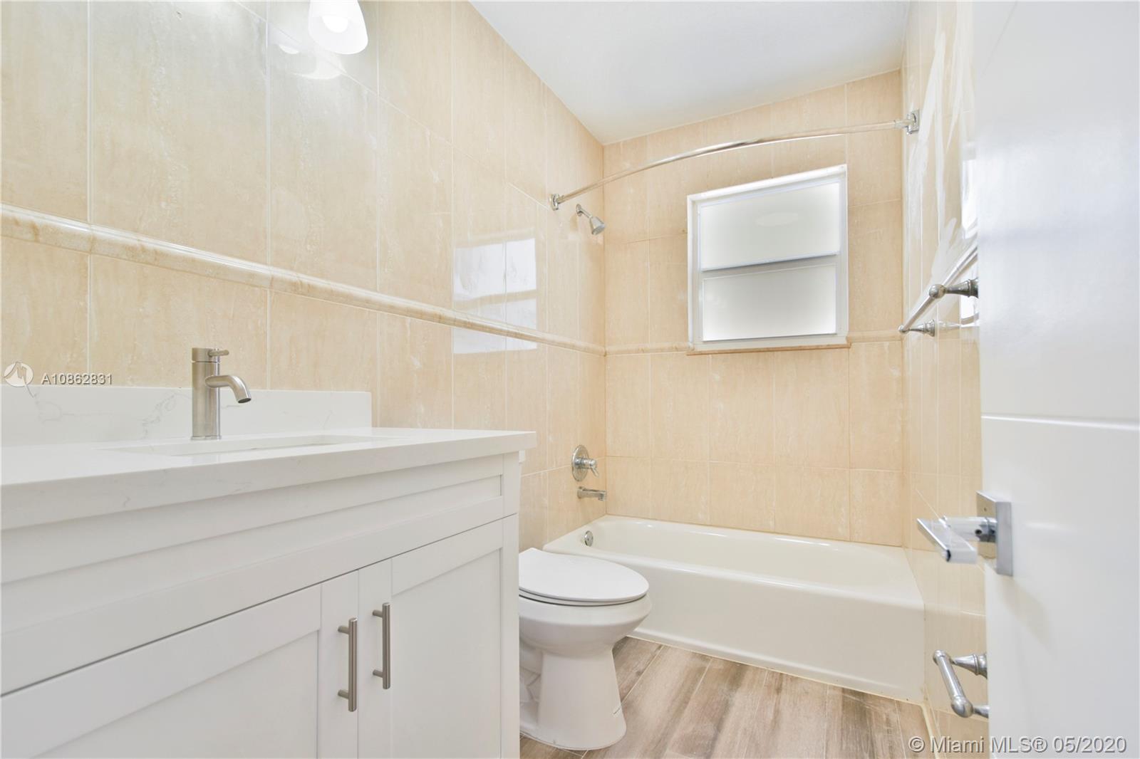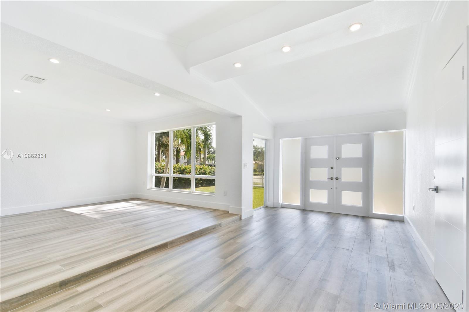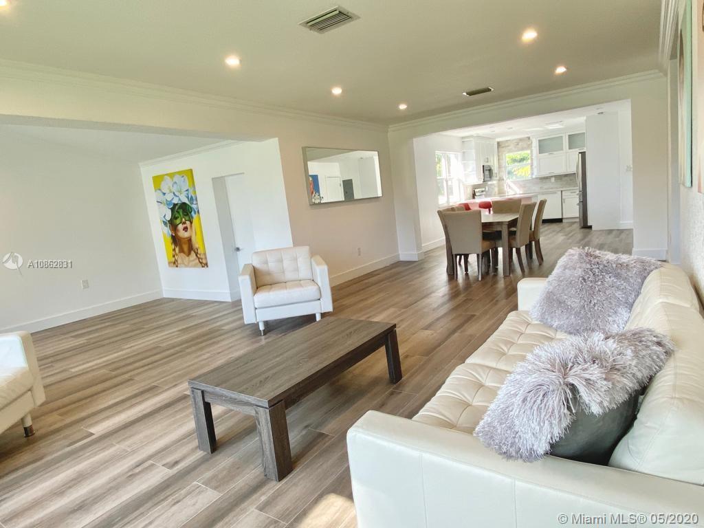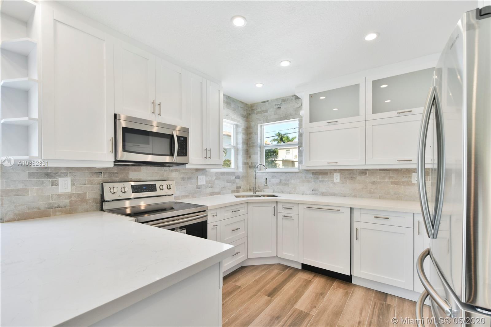 4/3 with salt water pool. Beautifully remodeled! Italian porcelain wood look tile throughout. New kitchen with top of the line quarts countertops and stainless steel appliances. Open layout with tons of natural light. 2 master bedrooms with on-suite bathrooms, one with large whirlpool. All bedrooms have built in European style closets. Laundry room with tons of storage space. Large fenced in front yard and backyard big enough to park a boat or RV. Pool with brick pavers and tons of space to BBQ and host parties. Walk to the beach or Downtown Hollywood.