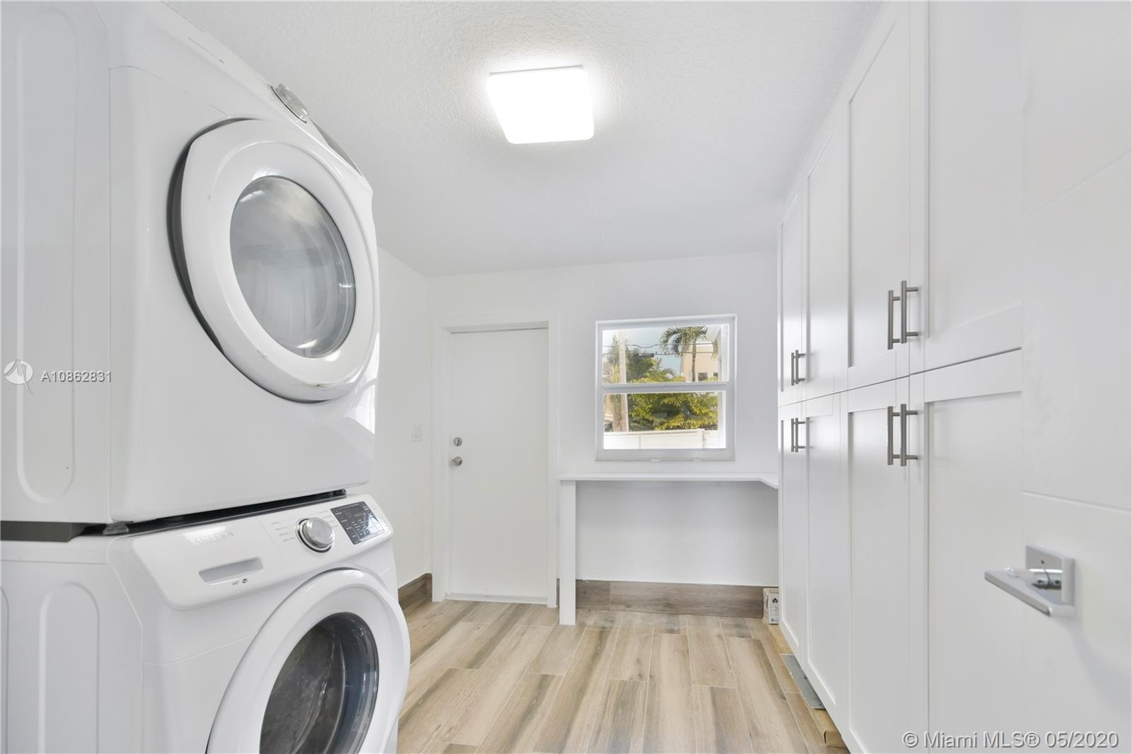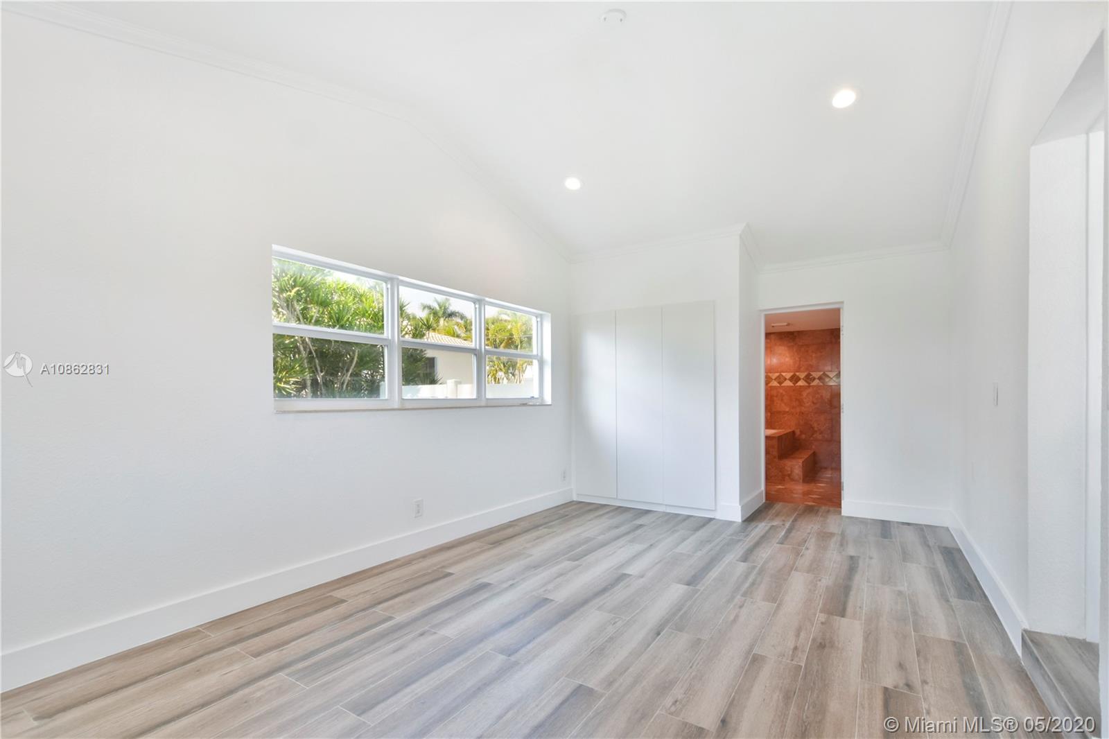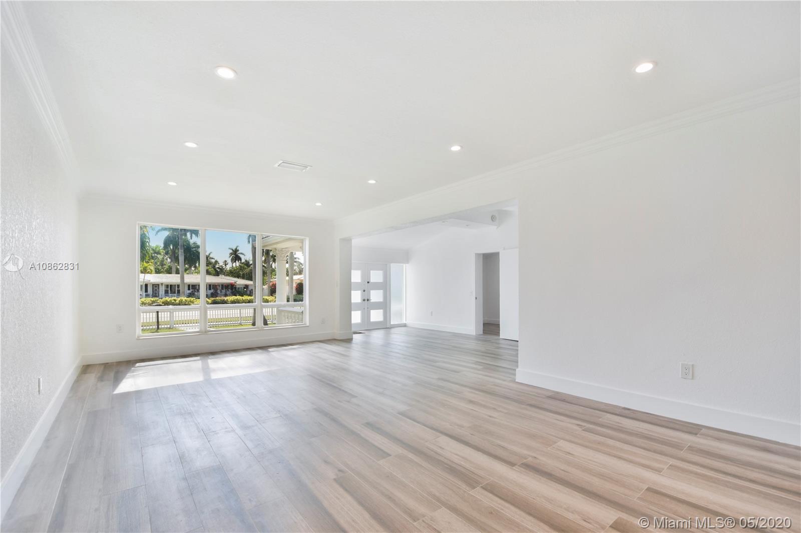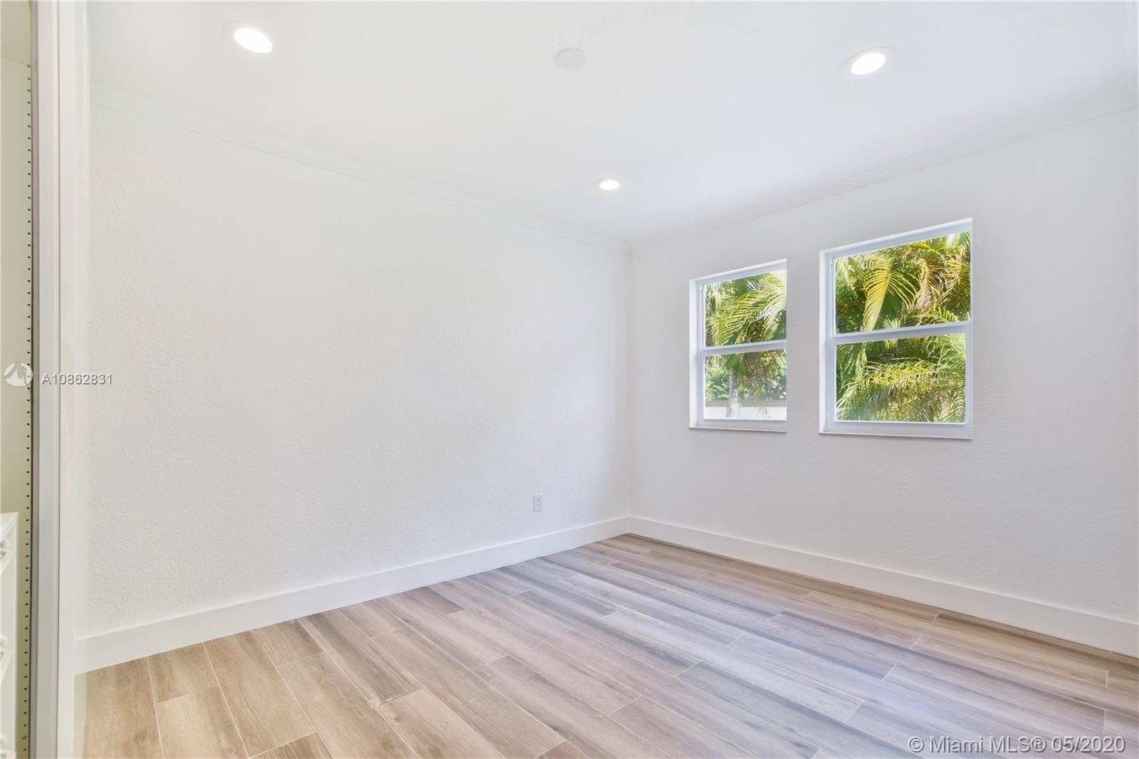 4/3 with salt water pool. Beautifully remodeled! Italian porcelain wood look tile throughout. New kitchen with top of the line quarts countertops and stainless steel appliances. Open layout with tons of natural light. 2 master bedrooms with on-suite bathrooms, one with large whirlpool. All bedrooms have built in European style closets. Laundry room with tons of storage space. Large fenced in front yard and backyard big enough to park a boat or RV. Pool with brick pavers and tons of space to BBQ and host parties. Walk to the beach or Downtown Hollywood.