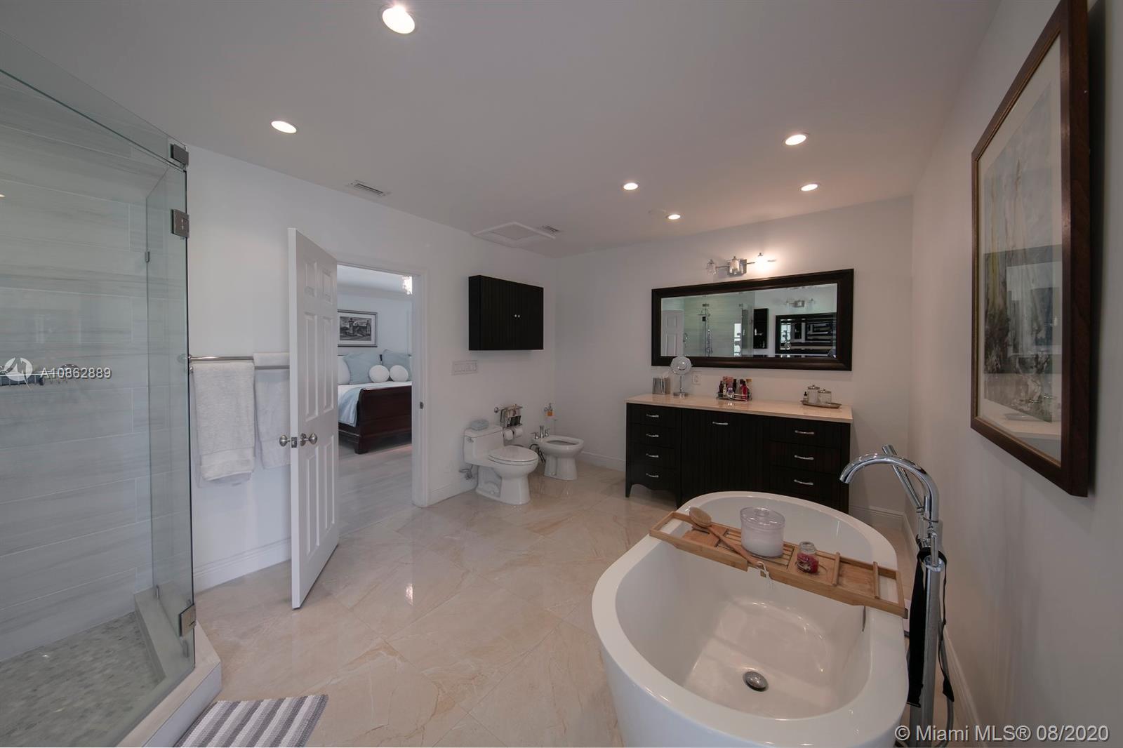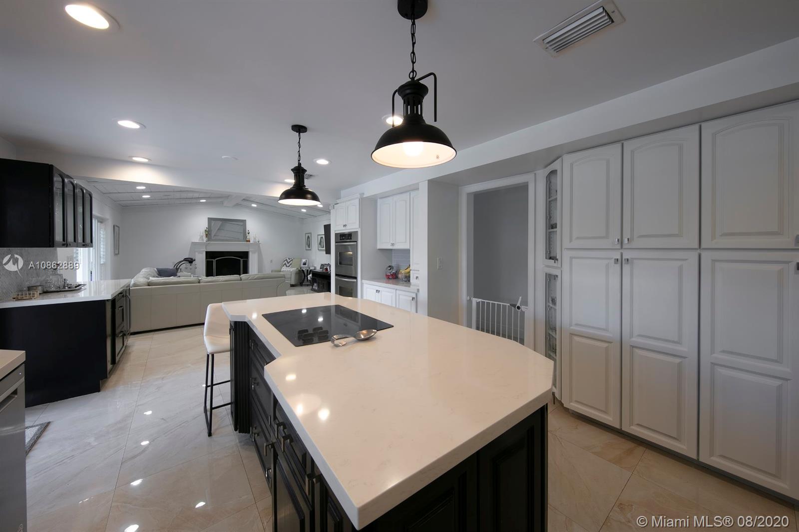 New price below the at “At Bank” appraised value. This home checks all the boxes! Pinecrest half acre corner lot with a circular driveway offers plenty of parking and green areas. Open and bright floor plan with wood and porcelain floors. Living room, kitchen and family room all open to pool patio and large covered terrace. Downstairs master suite with sitting area and 2 walk-in closets. Four bedrooms and two bathrooms upstairs. Large laundry room. All 2019 appliances. New floors in 2014. Other updates in 2014 and 2019. All impact windows and doors, Plantation shutters, additional driveway to 2 car garage.