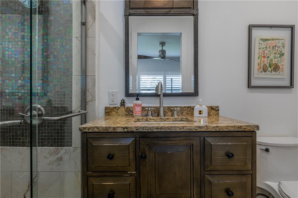 This River Oaks home has undergone Contemporary renovations with high end, designer finishings in every room! Renovations include modern open floor plan with contemporary white Italian cabinets, huge kitchen island of rare blue/grey granite, specialty backsplash tile to the ceiling. Added storage closets in halls and expanded closets in bedrooms. The home has been completely re-thought to be more current and user friendly for our modern lifestlye. Italian marble and onyx in bathrooms. Frosted glass entry doors for each room keep the bright, light contemporary vibe throughout. Roof is 2 years old. Vintage washed wood in bedrooms. Lot backs up to lush tropical foliage and offers plenty of square footage for future additions. Tankless water heater, gas stove. Plantation shutters in bedrooms.
