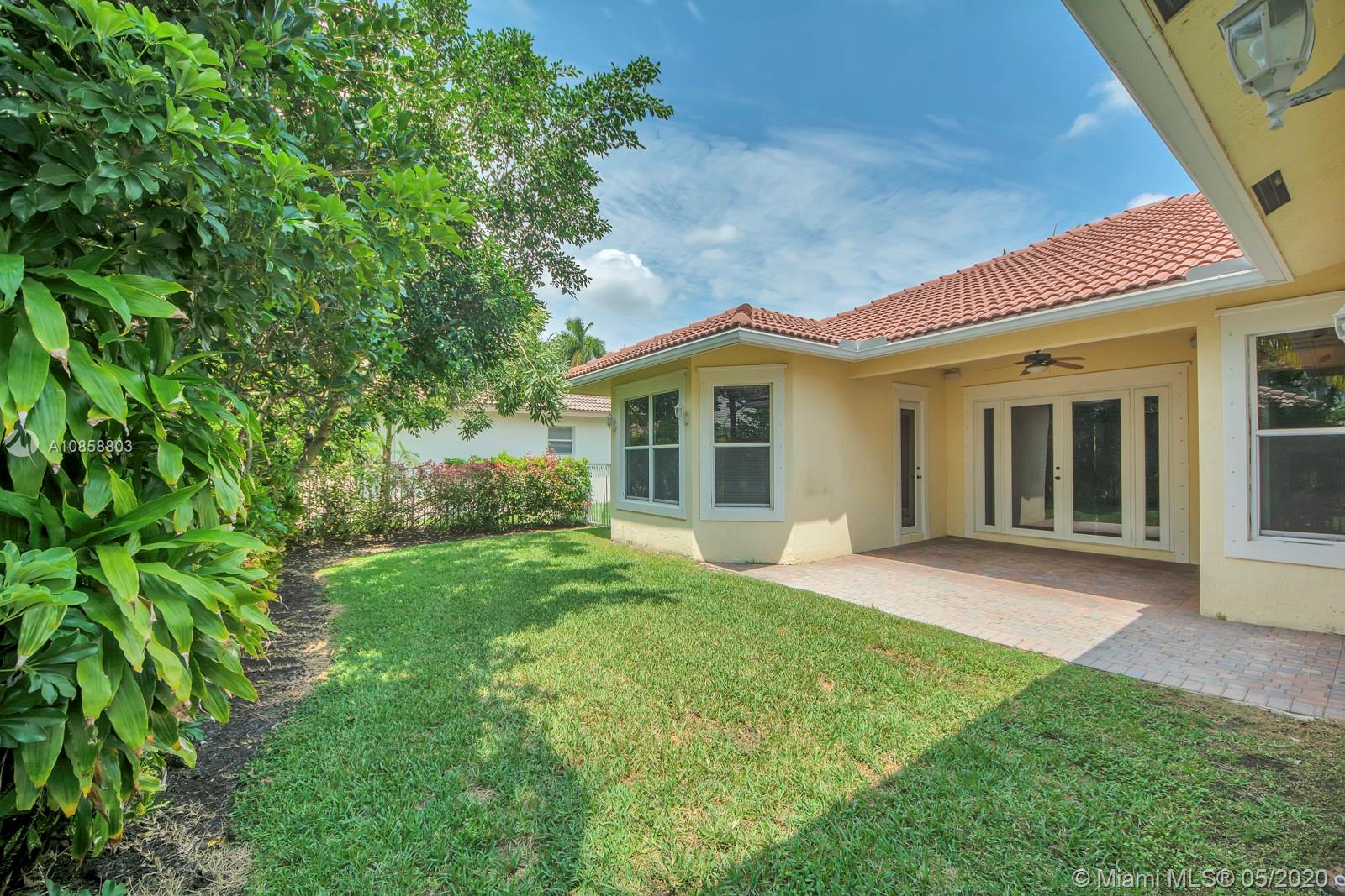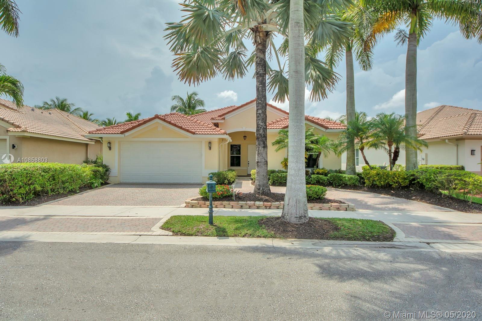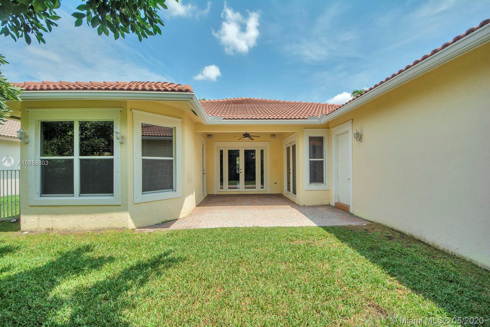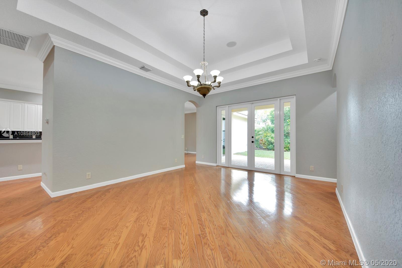 Fabulous four bedroom three bathroom one story home in Weston Hills Country Club. Upgrades include wood floors throughout, center island kitchen with stainless steel appliances, granite counter tops and snack bar overlooking family room. French doors open to covered patio for outdoor enjoyment and fenced yard surrounded by lushly landscaped for ultimate privacy. Triple split floor plan. Recently painted. AC 2017. Two car garage and circular driveway for easy parking. Guard gated community in the heart of Weston.