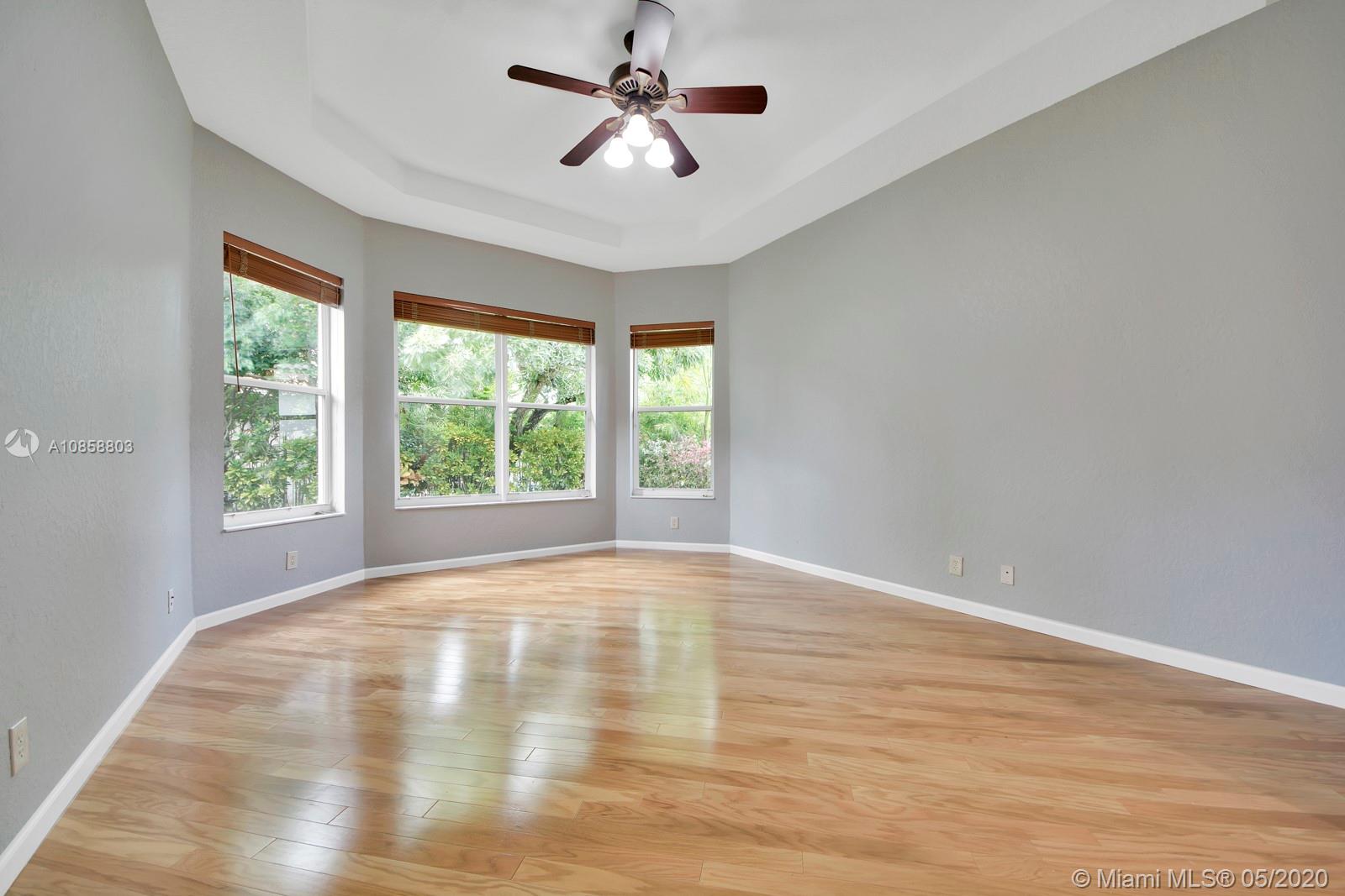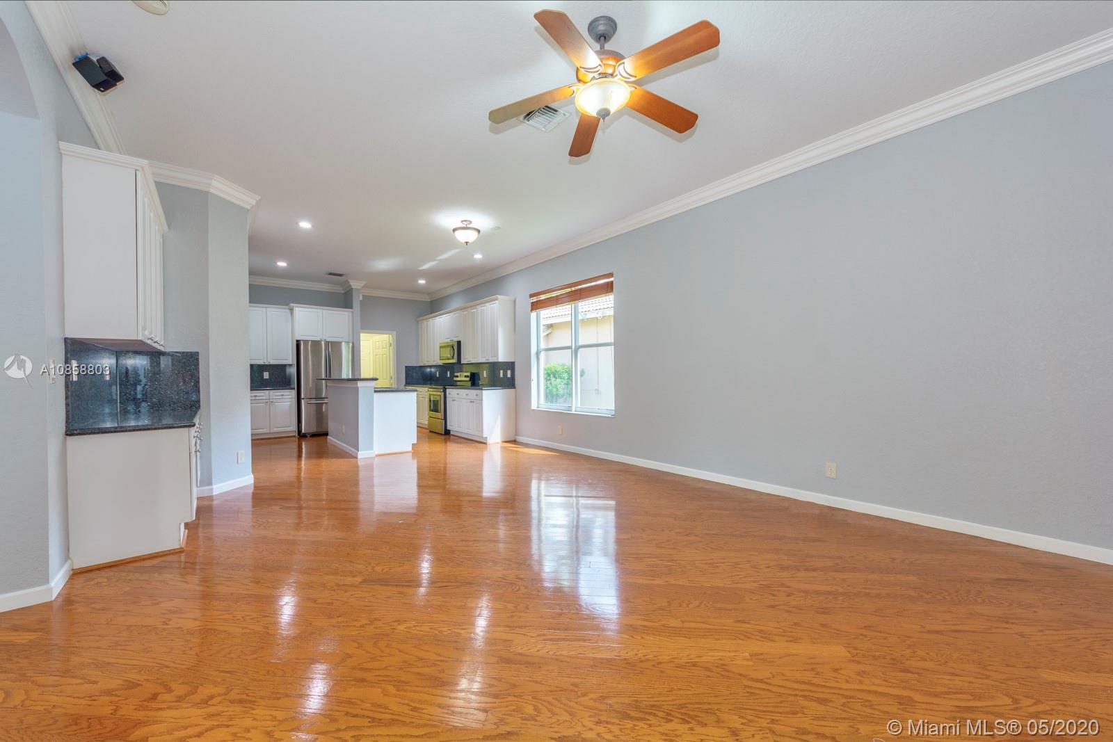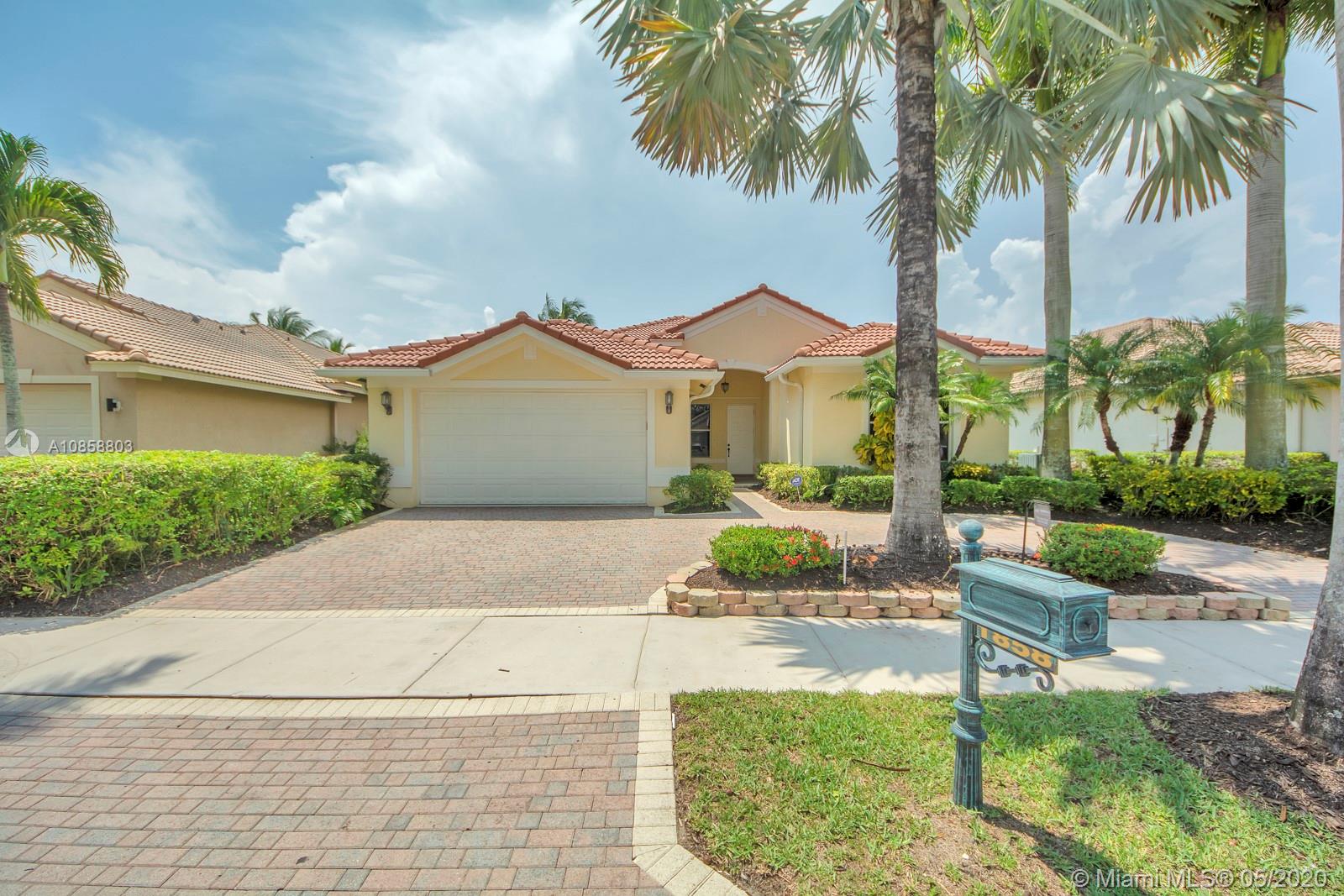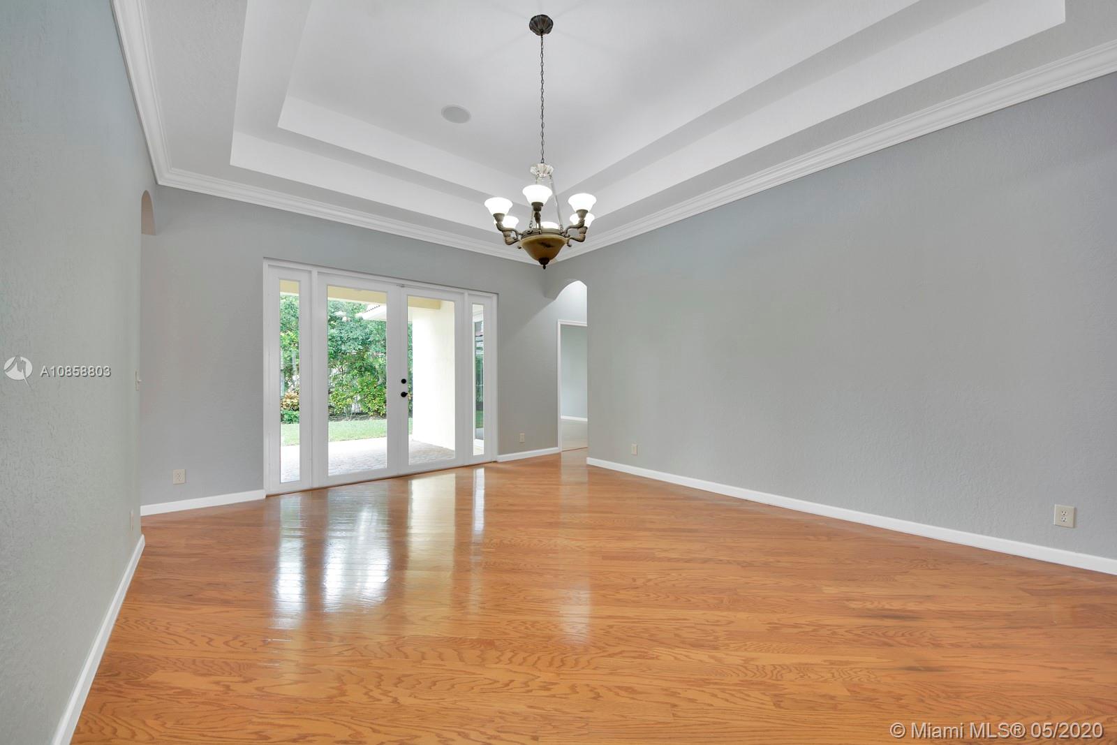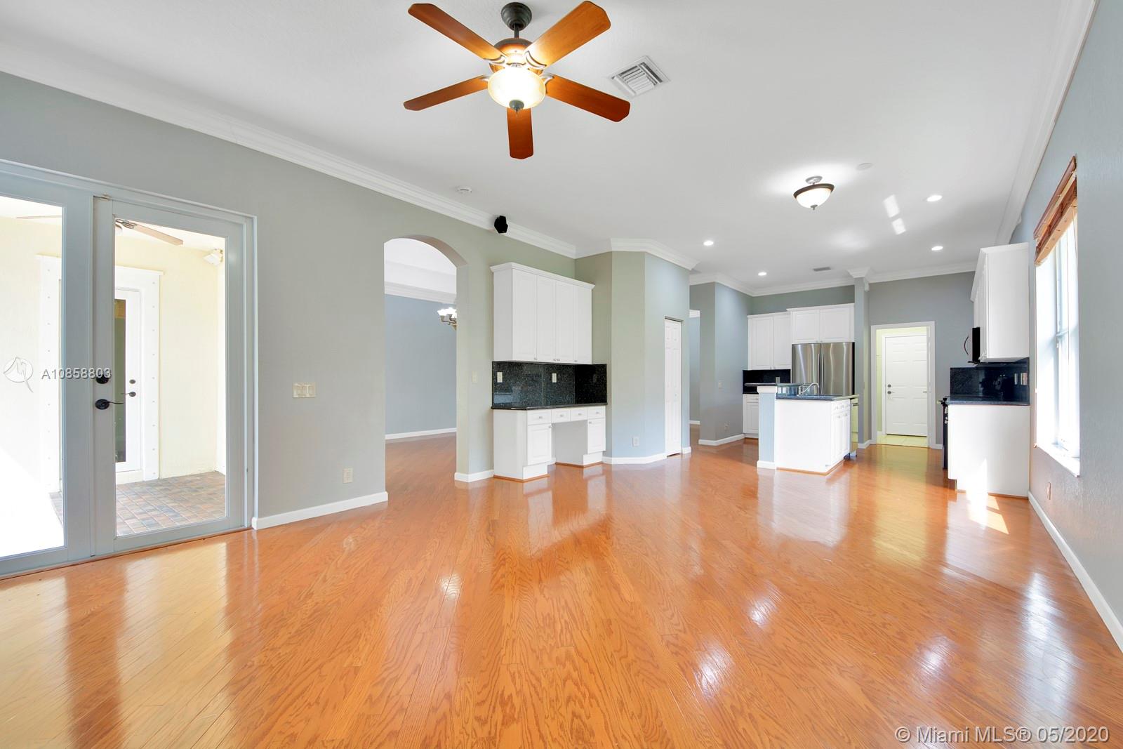 Fabulous four bedroom three bathroom one story home in Weston Hills Country Club. Upgrades include wood floors throughout, center island kitchen with stainless steel appliances, granite counter tops and snack bar overlooking family room. French doors open to covered patio for outdoor enjoyment and fenced yard surrounded by lushly landscaped for ultimate privacy. Triple split floor plan. Recently painted. AC 2017. Two car garage and circular driveway for easy parking. Guard gated community in the heart of Weston.