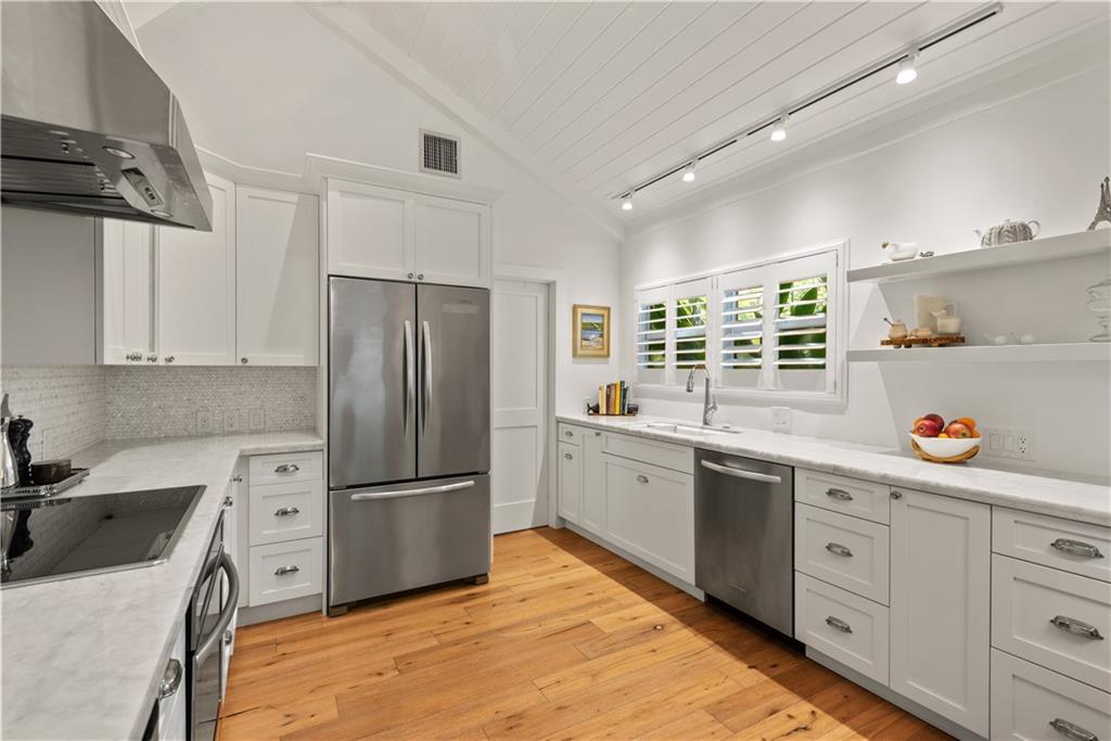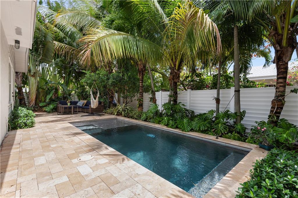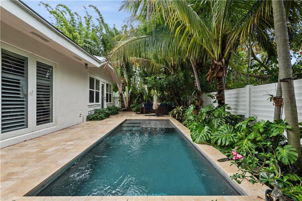 Superbly renovated and extremely private Victoria Park pool home will have you feeling as if you are constantly on vacation in a tropical urban Utopia! Acutely-designed, split bedroom floor plan maximizes functionality by offering: a family room with an abundance of natural light and windows overlooking a chilled & heated salt-water pool; a den/sitting room w/amazing ambiance (and future amazing conversations!) thanks to a wood burning fireplace and impressive built-in bookcase; and a modern kitchen w/SS appliances, quartzite counters, cabinetry w/multiple pull-outs and a corner banquette for dining! Impact glass throughout and a metal roof provide additional peace of mind during storm season. But wait...there's more! An air-conditioned attic large enough to stand up and move around!