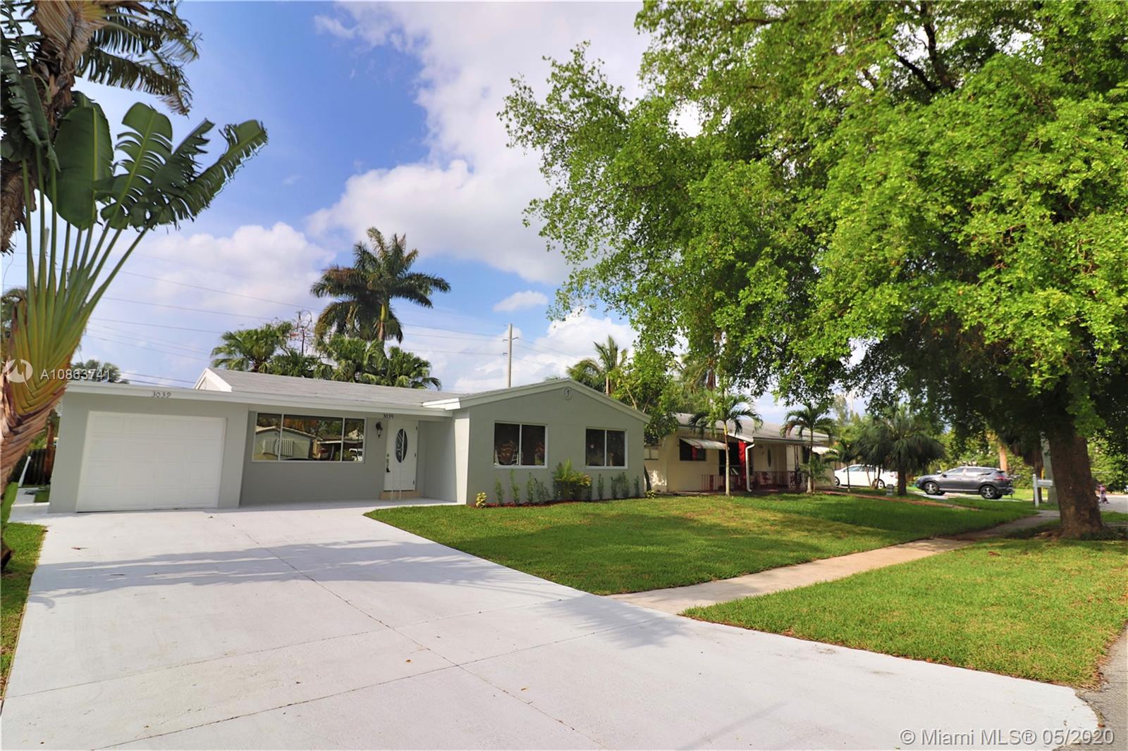 This unique GEM is in a league of it’s own in this area. Luminous elegant home,3 Bedrooms, 2 Full Bathrooms completely remodeled in a beautiful cul de sac. New Roof,New A/C and some ducts,New plumbing,New sewer connection,New Electrical,New impact sliding door,New impact main door & Garage door with remote, All is done with permit.New insulation and drywall,New hard wood vanities w/ glass doors in bathrooms. New tile Flooring through home and Wood laminate in bedrooms.New Kitchen with quartz counter top on soft closing hard wood cabinets W/ New SS Appliances,New water line from meter.New Landscaping, New Sprinkler system. New Smoke detector.House has active Gas Range and Water heater. Freshly painted interior and exterior building.Centrally located in Heart of Hollywood.No HOA, Must See.