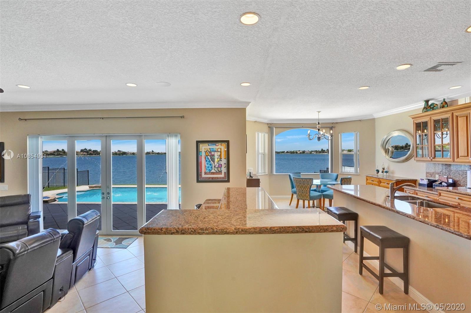 Location! Location! Longest lakeview in Miramar! From the moment you step in you are drawn to the expansive west facing lakeview. This TURNKEY home is a must see! Large, open and airy 6 BR 4 1/2 Bath home has ALL the upgrades and is move in ready.20x20 ceramic tile in all living areas. Upgraded solid wood pecan cabinets with 2 ISLANDS! All granite counters & newer SS appliances.Gorgeous crown molding in EVERY room . 2 new Carrier AC's and New Water Heater. Master Bedroom spans the entire back of the house with large private covered balcony. Master Bath is gigantic and is a separate his and hers with shower entry from both sides. Gorgeous professional landscaping with fountain. 5 star resort community with easy access to I 75. VACANT and SAFE TO SEE! Hurry before your dream home is gone.