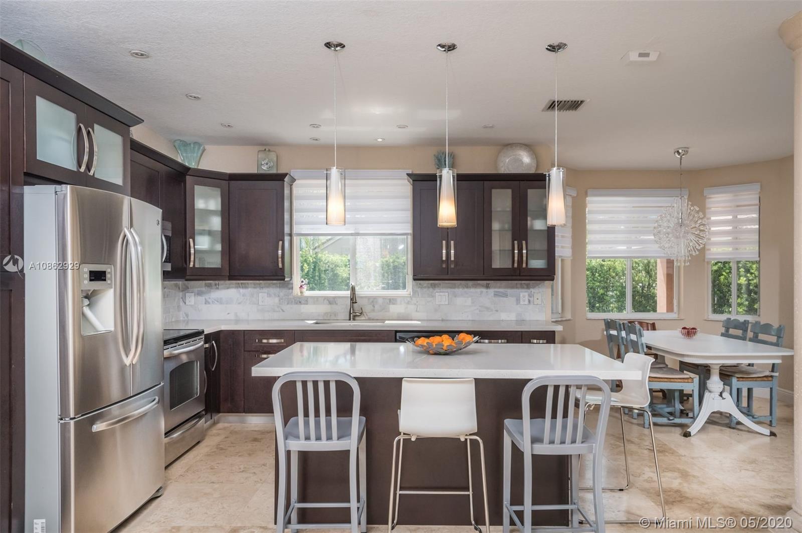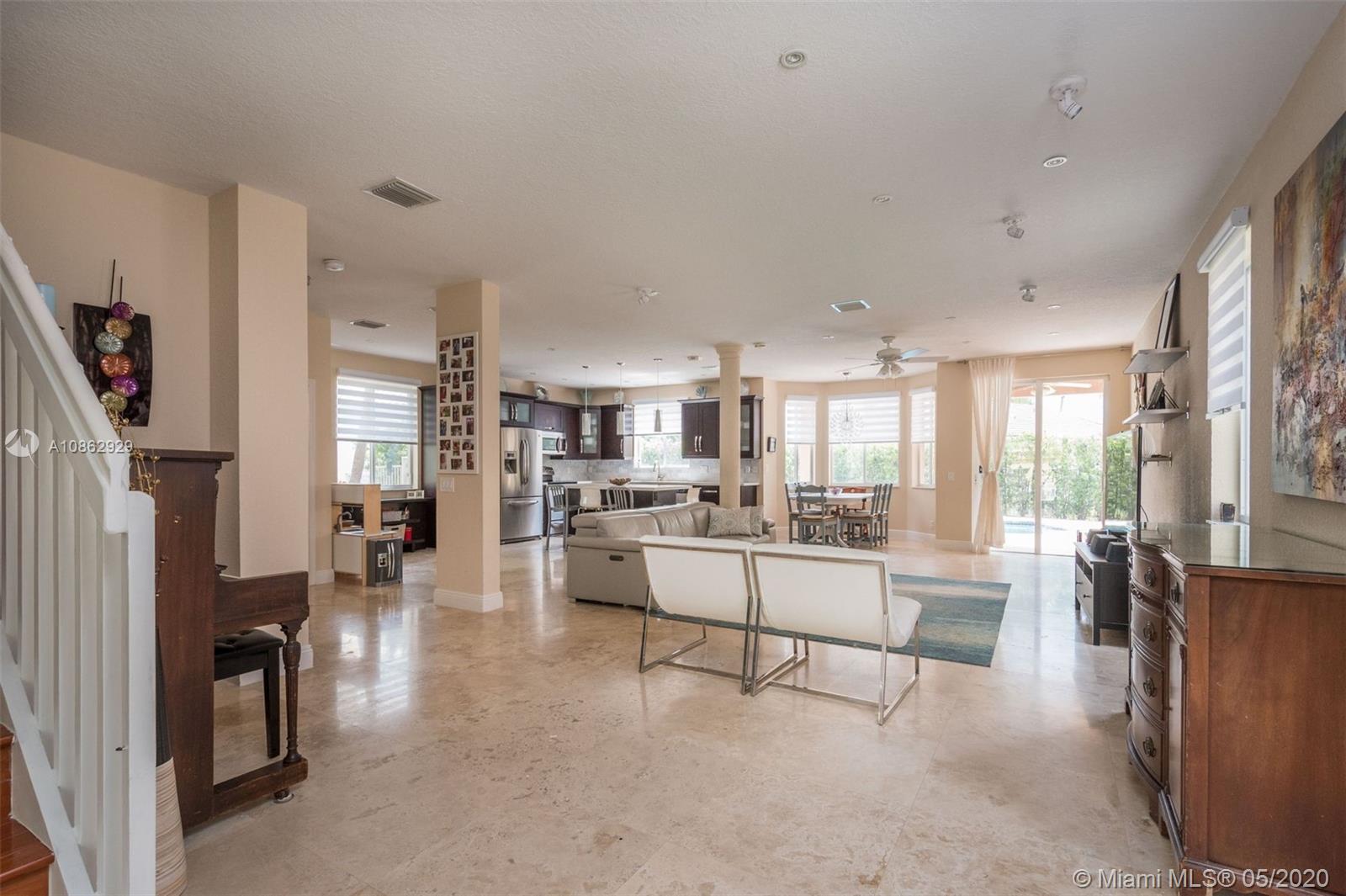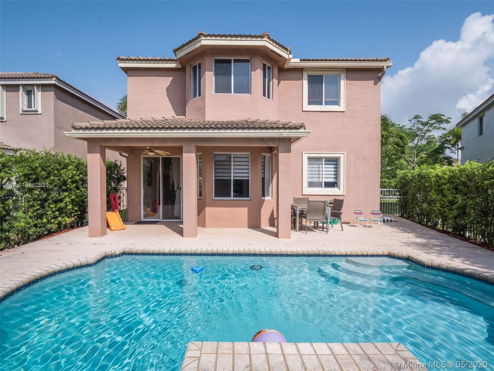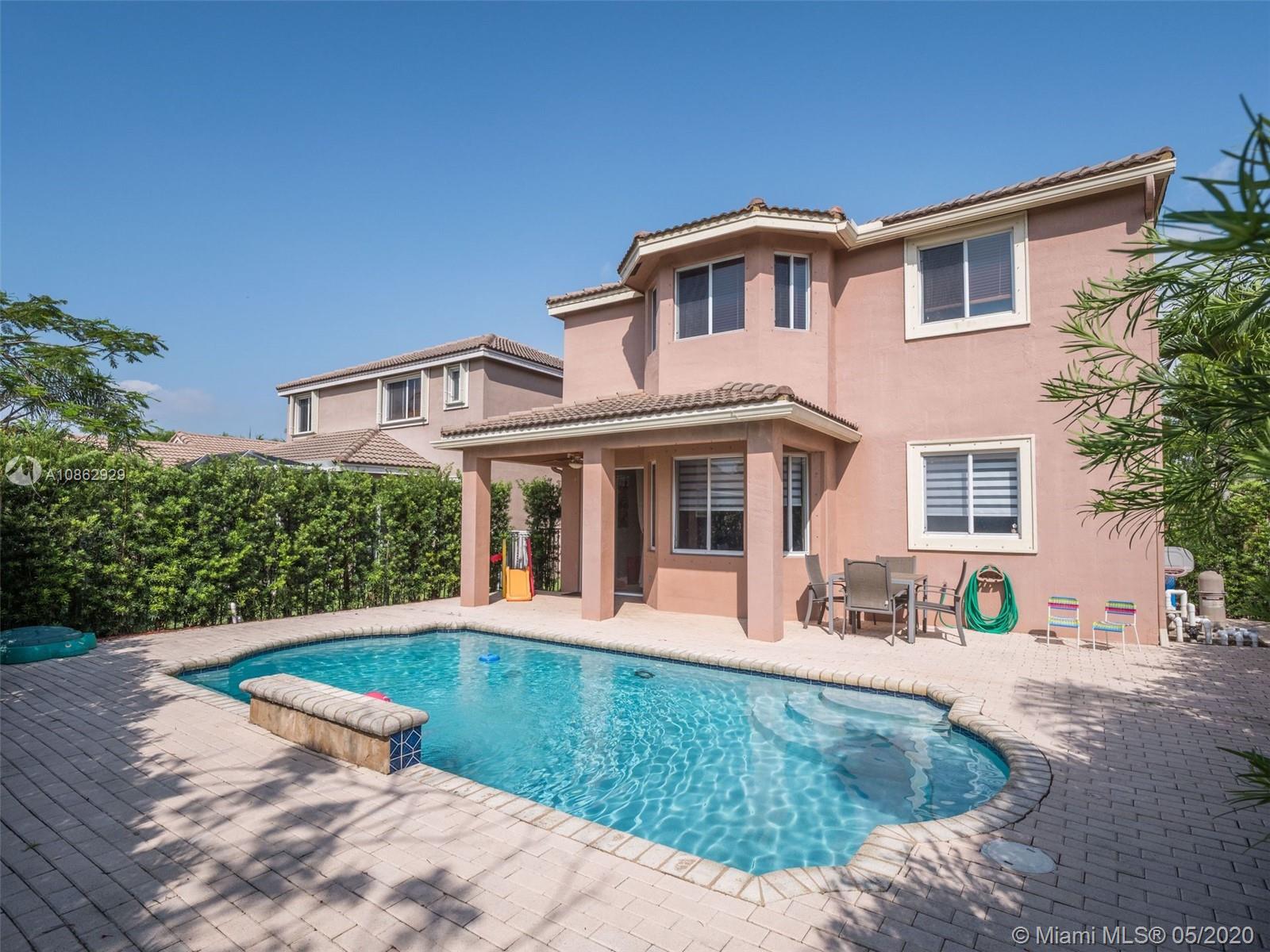This upgraded 4 bedroom/4 bathroom pool home in guard-gated community of Savanna has an open layout that's perfect for entertaining. Enjoy cooking in this spacious contemporary kitchen w/ all the top stainless steel appliances, quartz counterrtops & custom wood cabinets. Marble flooring on the 1st floor & wood flooring on the staircase, landing and guest bedroom. Enjoy the privacy in your fenced backyard with pool and covered terrace. Hurricane shutters. Located on a cul-de-sac street. Amenities include community clubhouse, 5 pools, soccer field, baseball field, basketball court, hockey rink, mini golf, playground and much. A rated schools.