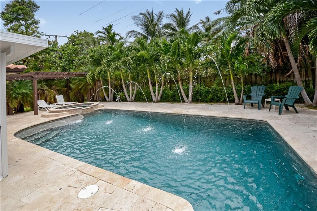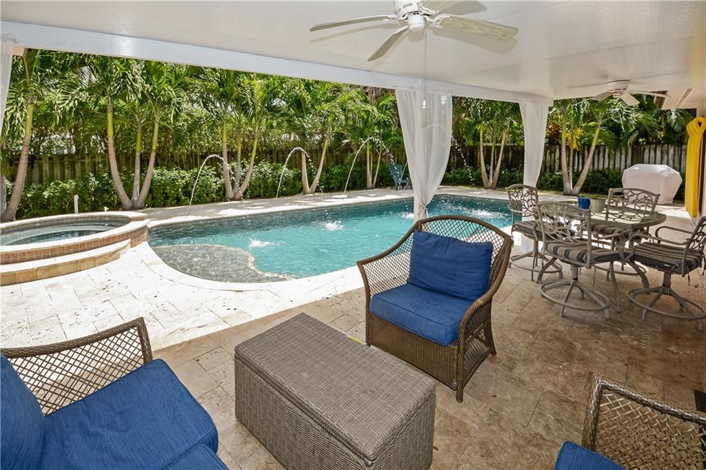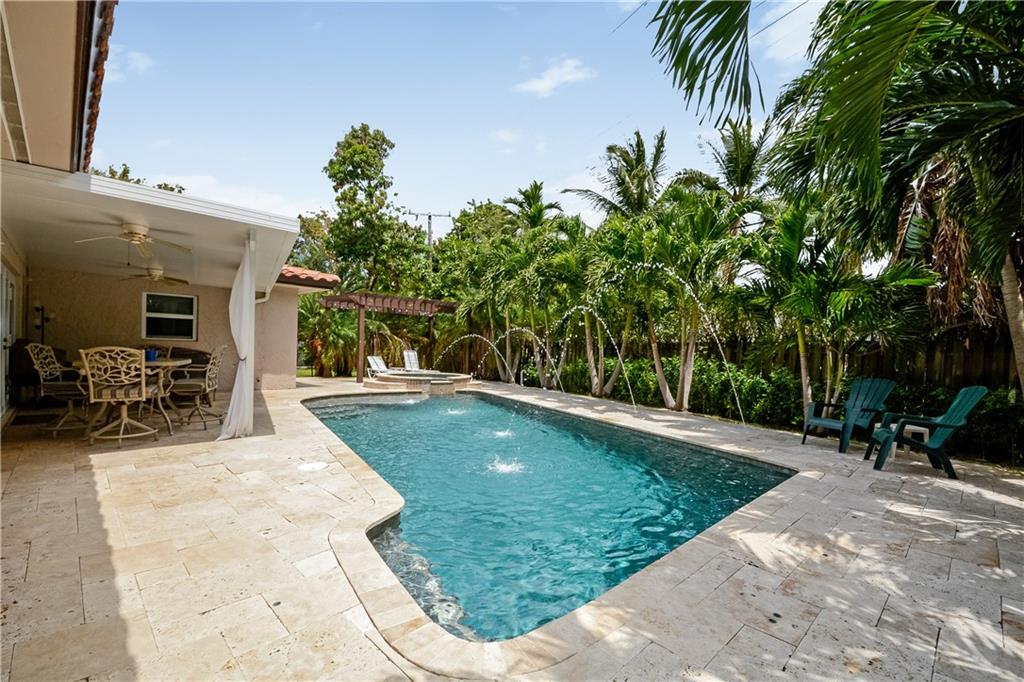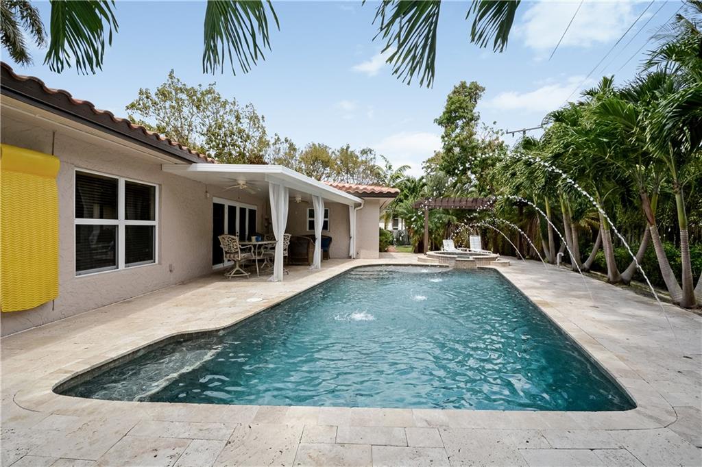 Ready to move in, completely remodeled. Marble floors, granite counters, impact windows, fireplace, split floor plan, open area for liv, din and kit. Heated 15x30 pool/hot tub, w/ blue Pebble Tech finish, shallow area & fountains. 2 separate covered outdoor sitting areas w/ fans, hot/cold outdoor shower, full 2 car garage, 2 sheds. Backyard fully fenced in, mango & avocado trees, large lot & circle driveway for easy access & room for 8 cars. Pleated shades, drapes. New roof, A/C & upgraded appliances.