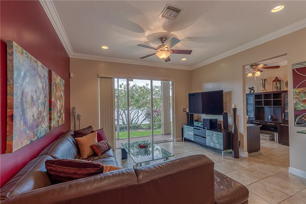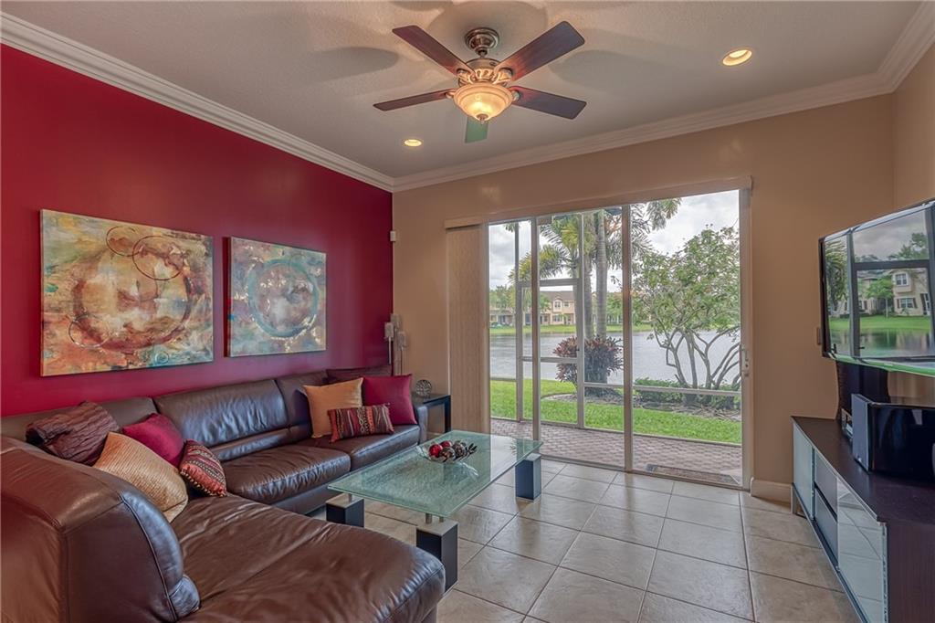 Immaculate 4 Bed 2.5 Bath 1 CG Townhouse overlooking the Lake! 4th Bedroom currently being used as a Den. Den can be converted back to 4th bed with a door. 2 Dogs up to 50lbs allowed. Hurricane Shutters. The Foyer entry opens up to a spacious living room overlooking a huge screened-in patio, the width of the home, w/ Lake Views. This unit is very upgraded w/ Tile floors Downstairs & beautiful Laminate Wood upstairs. Crown Moldings,Smooth Walls,Knockdown texture ceilings (No Popcorn) add to the contemporary look. Upstairs Master & Guest baths boast dual sinks & Granite Countertops. Master has a Lake view with Walk-In California Closet. All closets have built-ins. Front Loading Washer & Dryer upstairs. Large 1 CG w/ Attic storage & wall cabinet built-ins. Newer A/C. Community Pool. WOW!