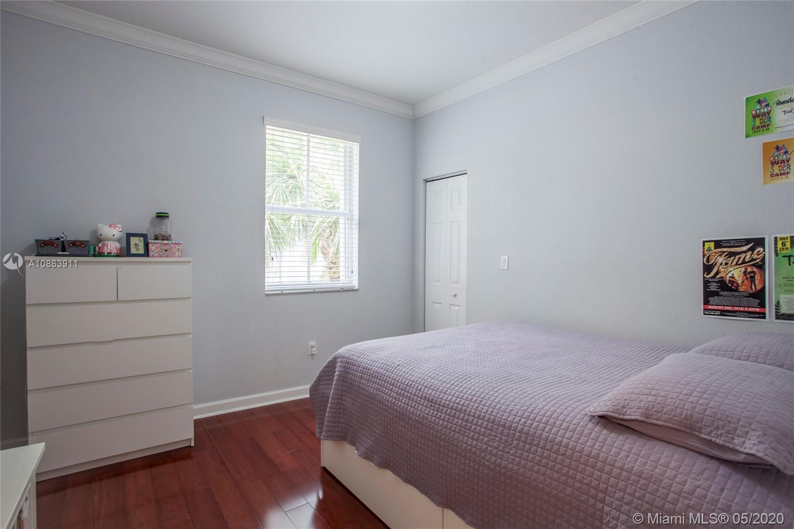 Spacious, beautiful two-story corner Townhouse located in The Reserve at Doral East. This 4 bedroom, 3 1/2 bathroom home has great flow throughout the living space with an inviting living room, dining room, family room, and kitchen great for entertaining. Also, on the 1st floor is a half bathroom, a two car garage, and a tiled backyard. All 4 bedrooms are located on the 2nd floor including an oversized master bedroom with a sizeable en suite, walk in closet, and a balcony overlooking the backyard. One of the other bedrooms also has its own en suite and balcony. The other two bedrooms share a jack and jill bathroom. Laundry room also located upstairs. The home sits in front of a children's playground. The community features a clubhouse with pool and a gym. This is a true gem of a home.