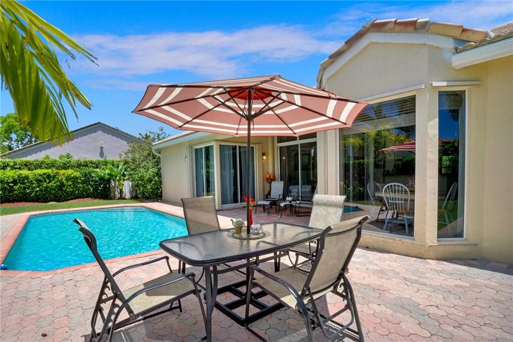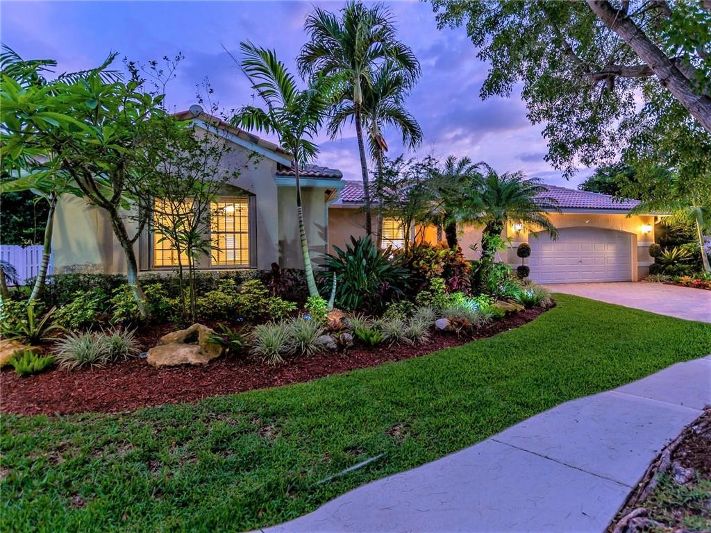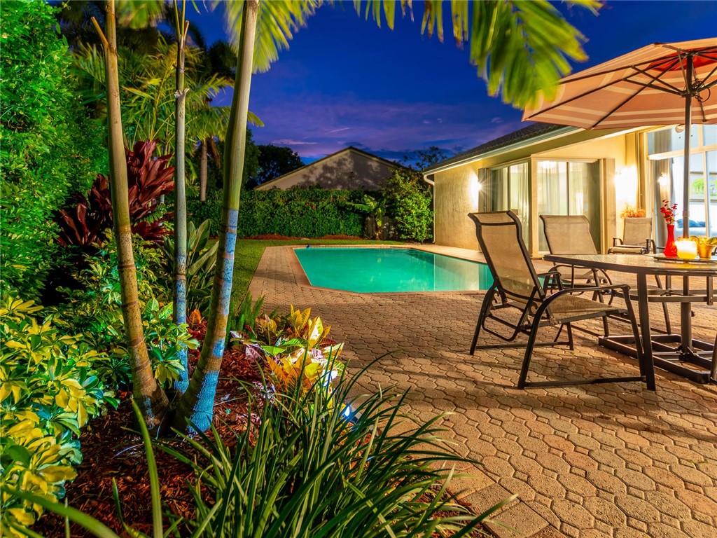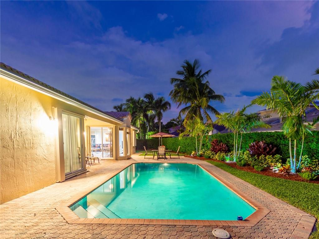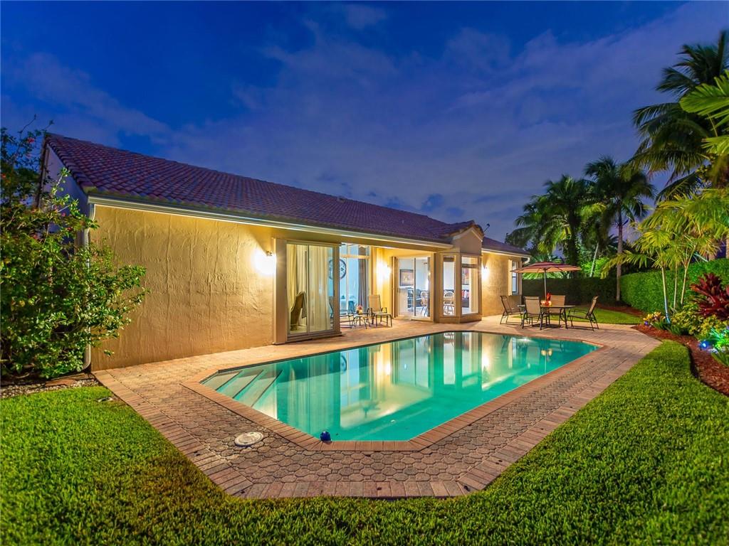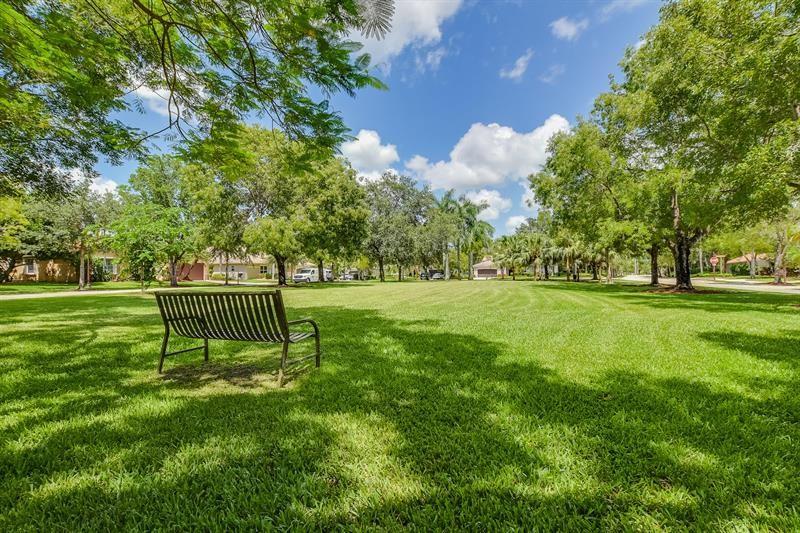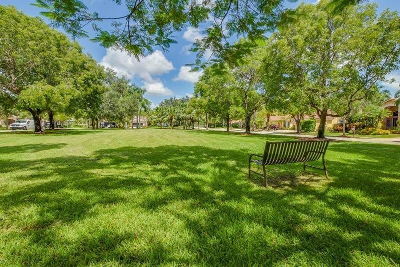 Nestled across a picturesque passive park, this beautifully updated 5BD/4BA/2CG single story of almost 3000 SF/AC, has a peaceful, private backyard retreat of over 1/4 acre, with POOL, covered patio, gorgeous manicured landscaping illuminated by outdoor lighting & tons of room for play! 2019 remodeling includes a BRAND NEW ROOF, NEW AC, NEW PORCELAIN FLOORING in secondary bedrooms & NEW wood laminate in master bedroom. 2018 updates include three stunning completely REMODELED modern bathrooms & NEW extra capacity washer & dryer. Split floor plan with spacious family room, breakfast area flanked by large windows & granite kitchen with stainless appliances including NEW dishwasher & microwave. Pre-wired cameras, mostly all ACCORDIONS. Guard-gated, comm pool, playground, ball park, A+ schools!