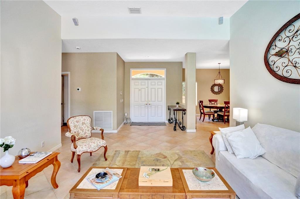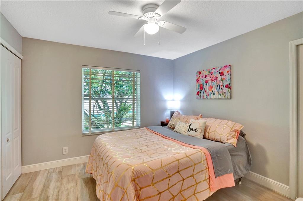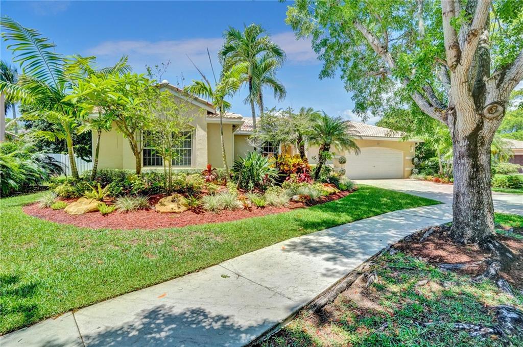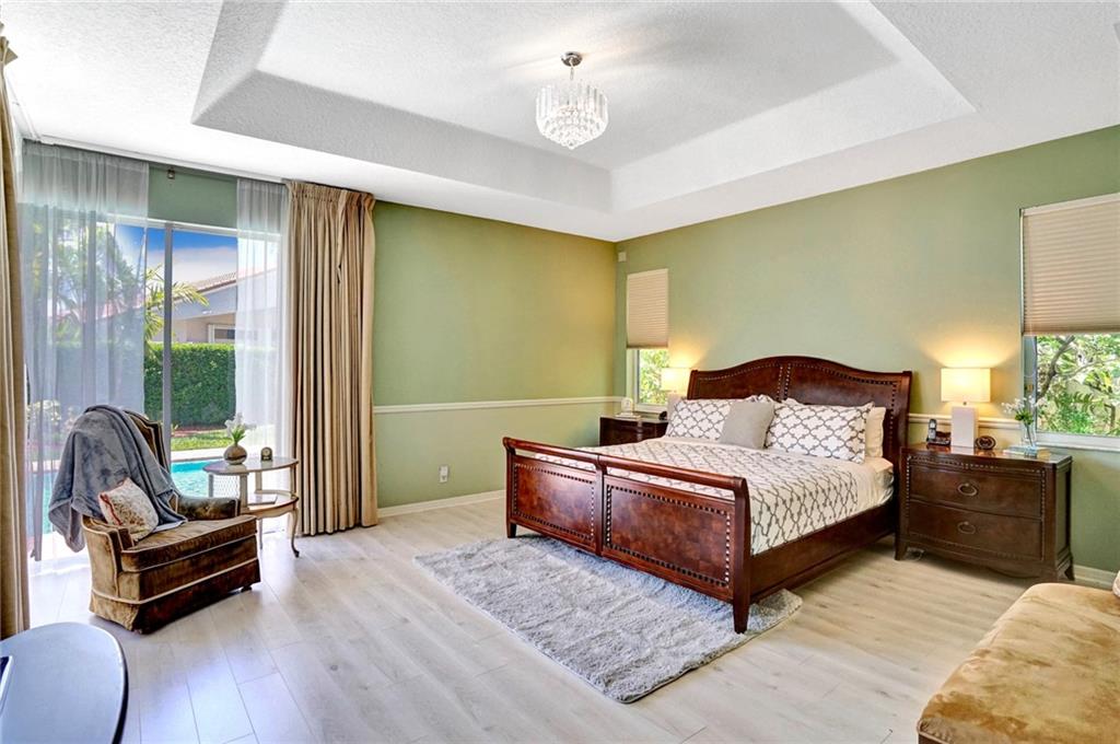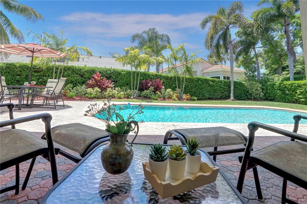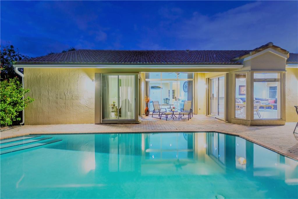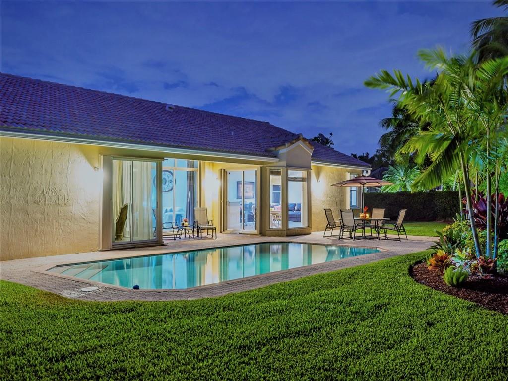 Nestled across a picturesque passive park, this beautifully updated 5BD/4BA/2CG single story of almost 3000 SF/AC, has a peaceful, private backyard retreat of over 1/4 acre, with POOL, covered patio, gorgeous manicured landscaping illuminated by outdoor lighting & tons of room for play! 2019 remodeling includes a BRAND NEW ROOF, NEW AC, NEW PORCELAIN FLOORING in secondary bedrooms & NEW wood laminate in master bedroom. 2018 updates include three stunning completely REMODELED modern bathrooms & NEW extra capacity washer & dryer. Split floor plan with spacious family room, breakfast area flanked by large windows & granite kitchen with stainless appliances including NEW dishwasher & microwave. Pre-wired cameras, mostly all ACCORDIONS. Guard-gated, comm pool, playground, ball park, A+ schools!