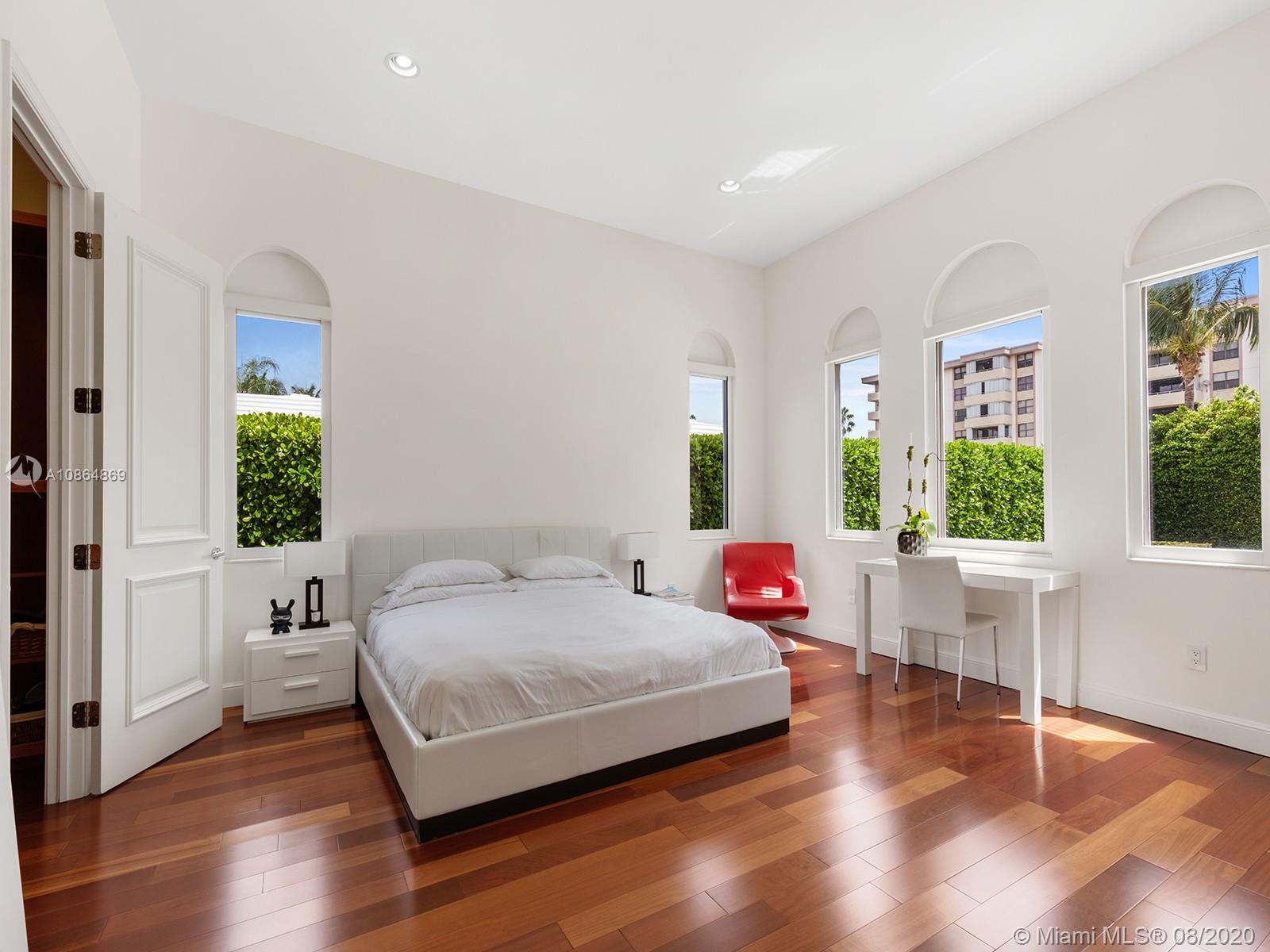 Coveted Bay Harbor Islands Waterfront. This luxurious custom built Mediterranean estate w/ contemporary design is nestled on a 16,875 sf lot w/ mature foliage offering complete privacy. The residence features magnificent foyer entry w/ 24' coffered ceilings welcoming you to an open living room offering stunning views of the outdoors. 6bd/6.5ba, marble & hardwood floors, chef's kitchen, top-of-the-line appl, formal dining, media room, grand master suite leaves nothing to be desired w/ double door entry, 2 closets, huge master bath & terrace. 113' of waterfront w/ huge protected dock allowing for easy bay & ocean access within minutes. Huge outdoor area surrounds the opulent Jacuzzi & pool, ideal for Florida entertaining at its finest! You could not pick a better community to call home!