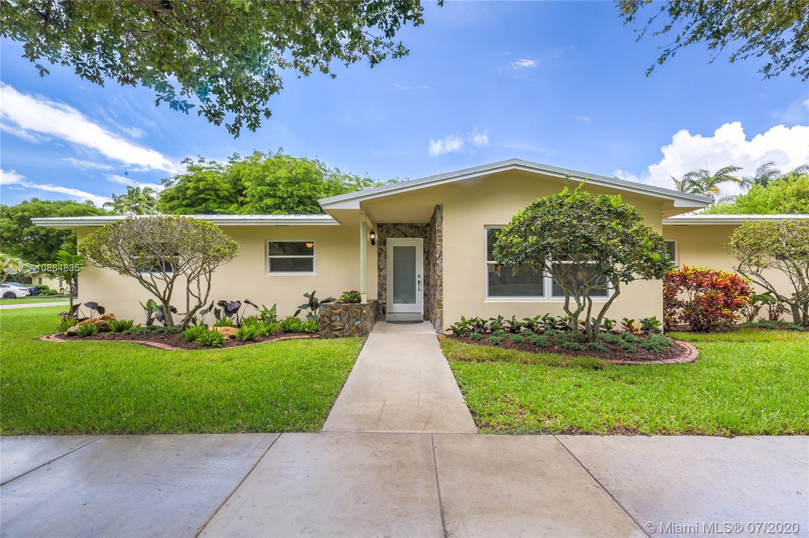 Fabulous opportunity in N. Pinecrest. Update this charming 3 bedroom, 2 bath, 2,300 SF home on a quiet, no-through street in a wonderful family neighborhood. This bright and cheerful home features an open floor plan with a sun lit living room that flows to a huge family room, large enough to include a bar and gaming area. French doors extend all along the family room providing beautiful views of the tree-shaded brick patio. The private, walled back yard has room for a pool and expansion on this 1/3 acre corner lot. This home offers a surprising number of great options for updating. It has impact windows, a metal roof, all new copper plumbing and a 1-car garage. All Pinecrest schools.