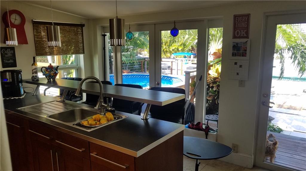 Beautiful 1 story 3/2 home with Key West style Oasis backyard, - Beautiful Kitchen and bathrooms, Recent Stainless appliances & Central Air. Natural gas stove and hot water tank. - Travertine marble flooring throughout - Metal Roof and Bahama shutters - Freshly painted inside and out + Fence, Deck & Dock. - Recent modern Deck wraps both pool & Gazebo overlooking dock and canal. - Centrally located; Approx. 10 mins from Airport, Downtown Las Olas, Beaches, I-95 & I-595. - Dock accommodates 45 foot boat with deep canal and Ocean access. The perfect boater's oasis.