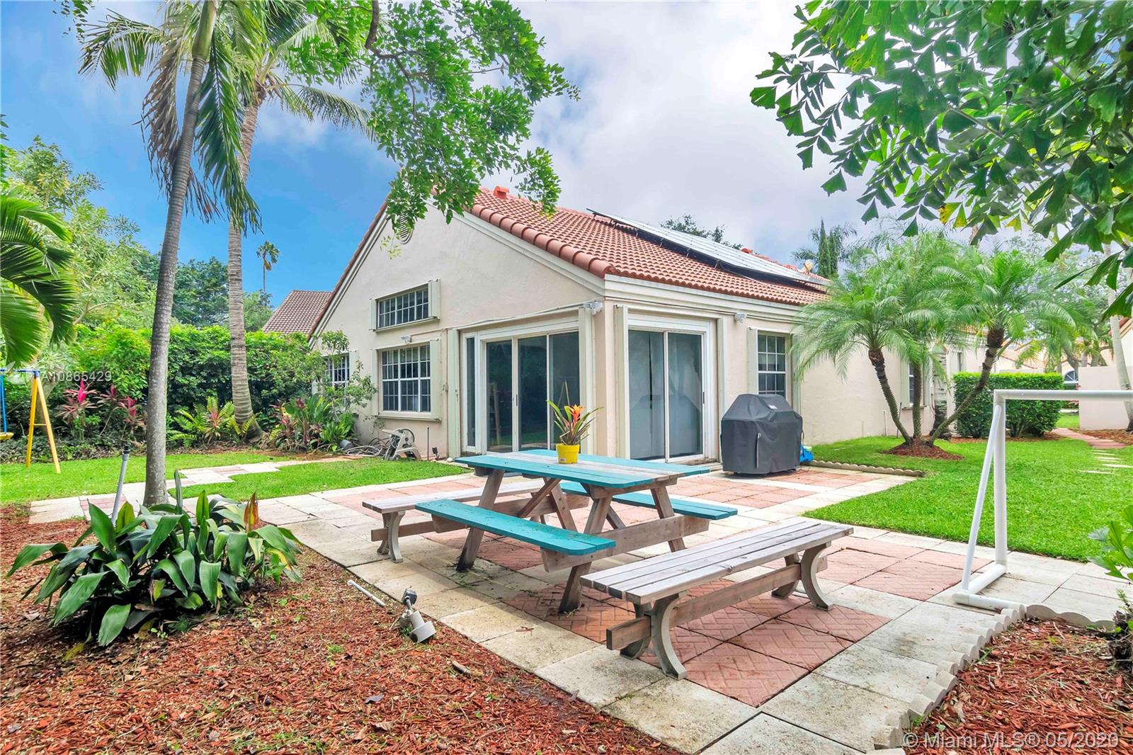 Gorgeous one story 3/2. Smart home in highly sought-after Coral Harbour in Weston. Comes with new roof, kitchen and flooring in main areas, Solar Panels. Enjoy electricity bill savings over the 25 years of your SS (warrantee included). Unlike most investments on the market, you begin enjoying those returns on Day 1. Home's thermostat, lights, garage door, security, and more are all connected into a common system, which can be controlled from your phone. Bright and Open floor plan, featuring high ceilings and windows, spacious Master Bedroom. Lot with room for a pool, with lush backyard. Gated Community. Community Pool on lake, Low HOA. Privileged location, walking distance to Elementary School, Walgreen's, Restaurants, shops, and 1/2 mile to Cleveland Clinic. Perfect Family Home!