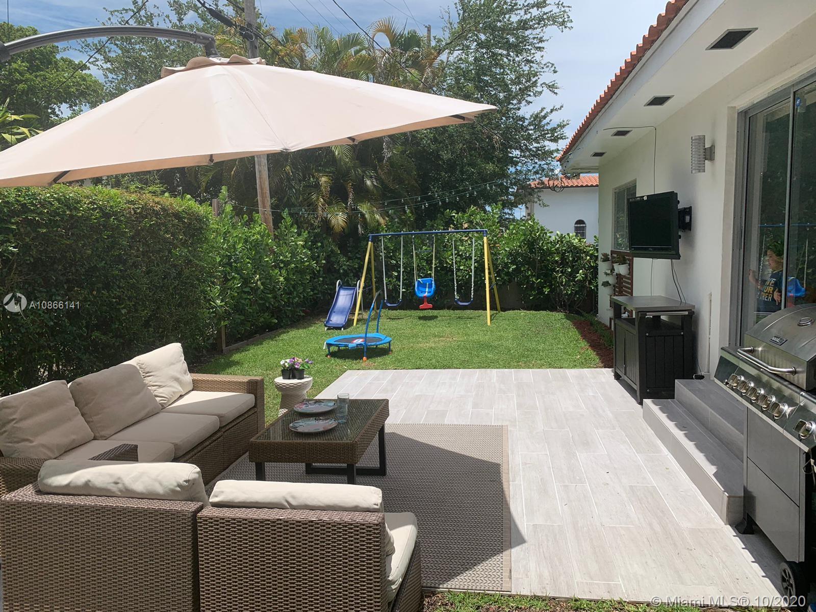 Single Family home, located on a quite coral gables Street. Beautifully Remodeled, Large Open spaces with brand new Kitchen with Quartz Countertops. New remodeled Bathrooms. Two Large Walking Closets. Large remodeled Den Area that can be converted into a 4th bedroom or office space. Beautiful backyard patio just remodeled with new gardening. New Landscape grass, clusias and tropical plants. Outdoor Tv. Beautiful Wine Glass Wine Cellar custom made.