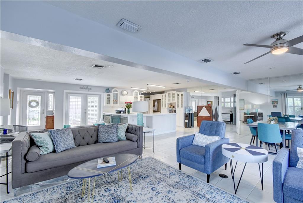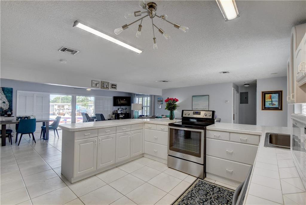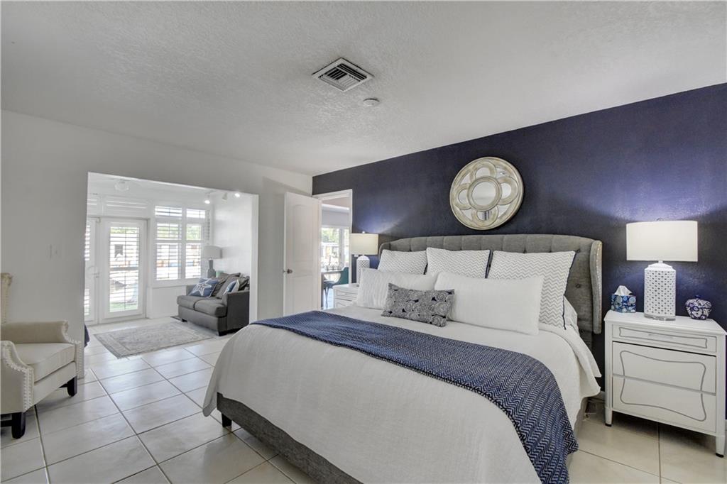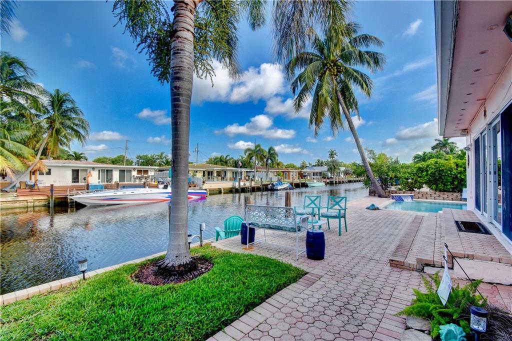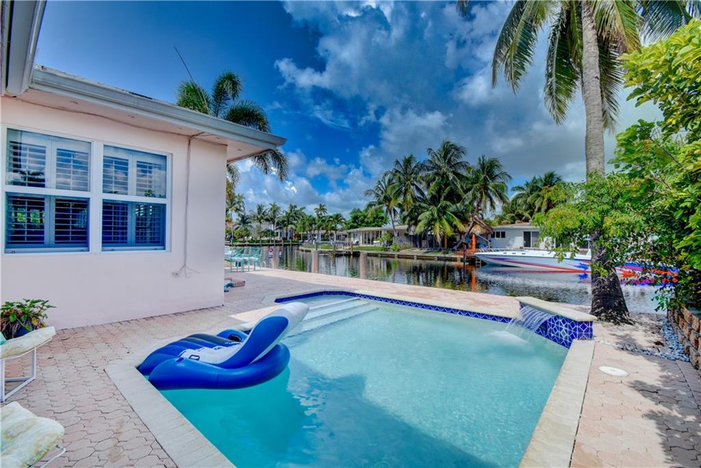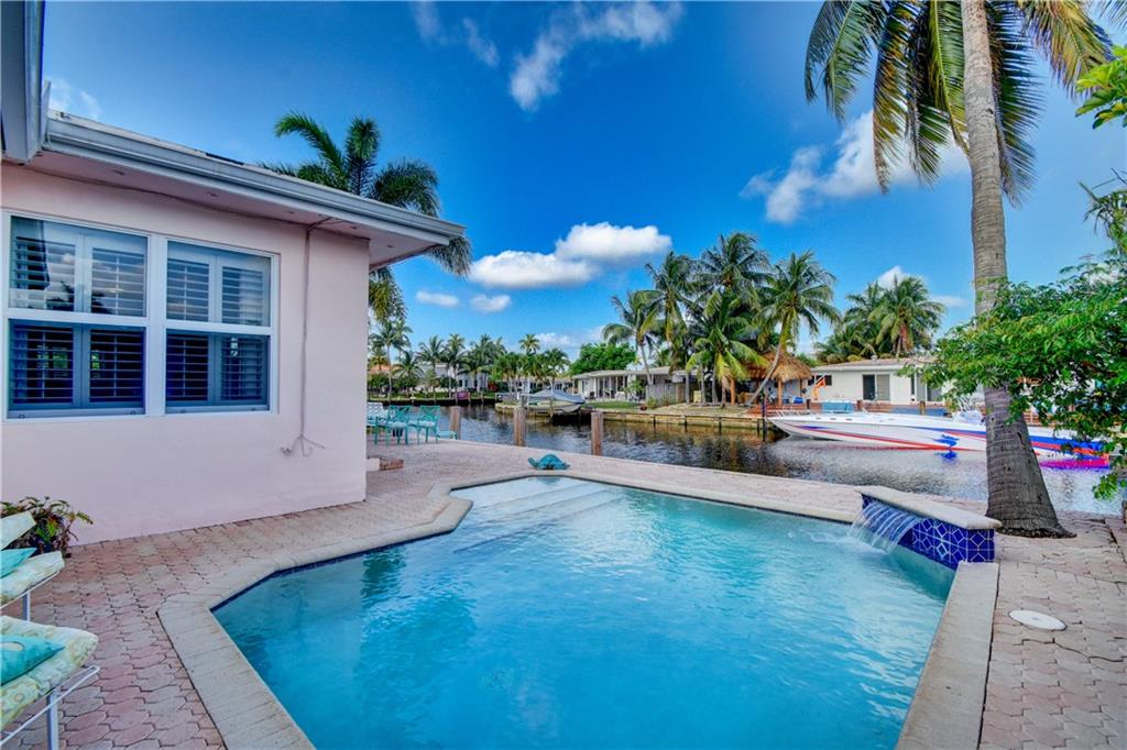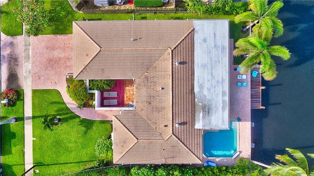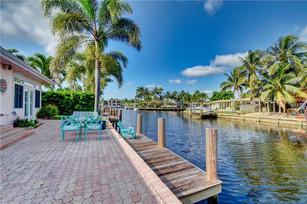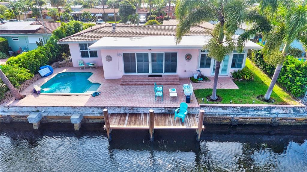 Ocean access pool home with new dock and 70 feet of waterfrontage. Almost 2,000 sq ft under air & 2 car garage. Barrel tile roof with tie downs for insurance and hurricane impact doors and windows throughout, including garage. Split floor plan with open layout perfect for entertaining. Stainless steel appliances and 2 year old ac. Oversized master bedroom with sitting area perfect for den or office newly installed barn doors for privacy. Brick pavered driveway and pool deck. Awesome views of intersecting canals. Both bathrooms completely remodeled in the last two years. large open Kitchen.