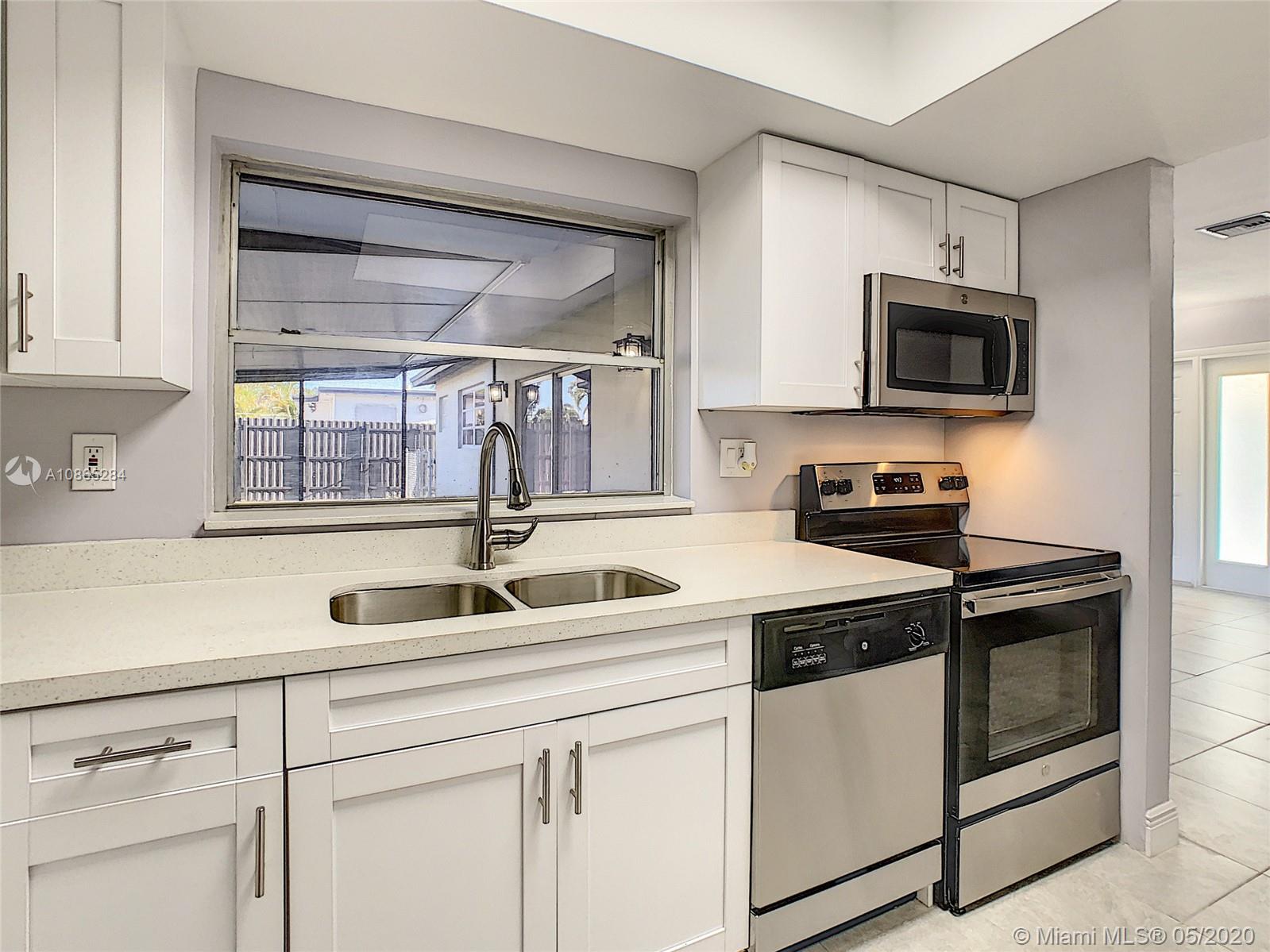 Looking for the right place? Look no further and come take this spacious remodeled 3 bedroom and 2 bathroom corner single family home, located in the great neighborhood of Palm Springs North. New roof, doors, electrical panel, AC and water heater, kitchen and bathrooms with quartz counter tops and white shakers cabinets, stainless steel appliances, tile throughout living area, freshly painted and the list goes on. Very close to major highways, dining/entertainment establishments, supermarkets and schools.