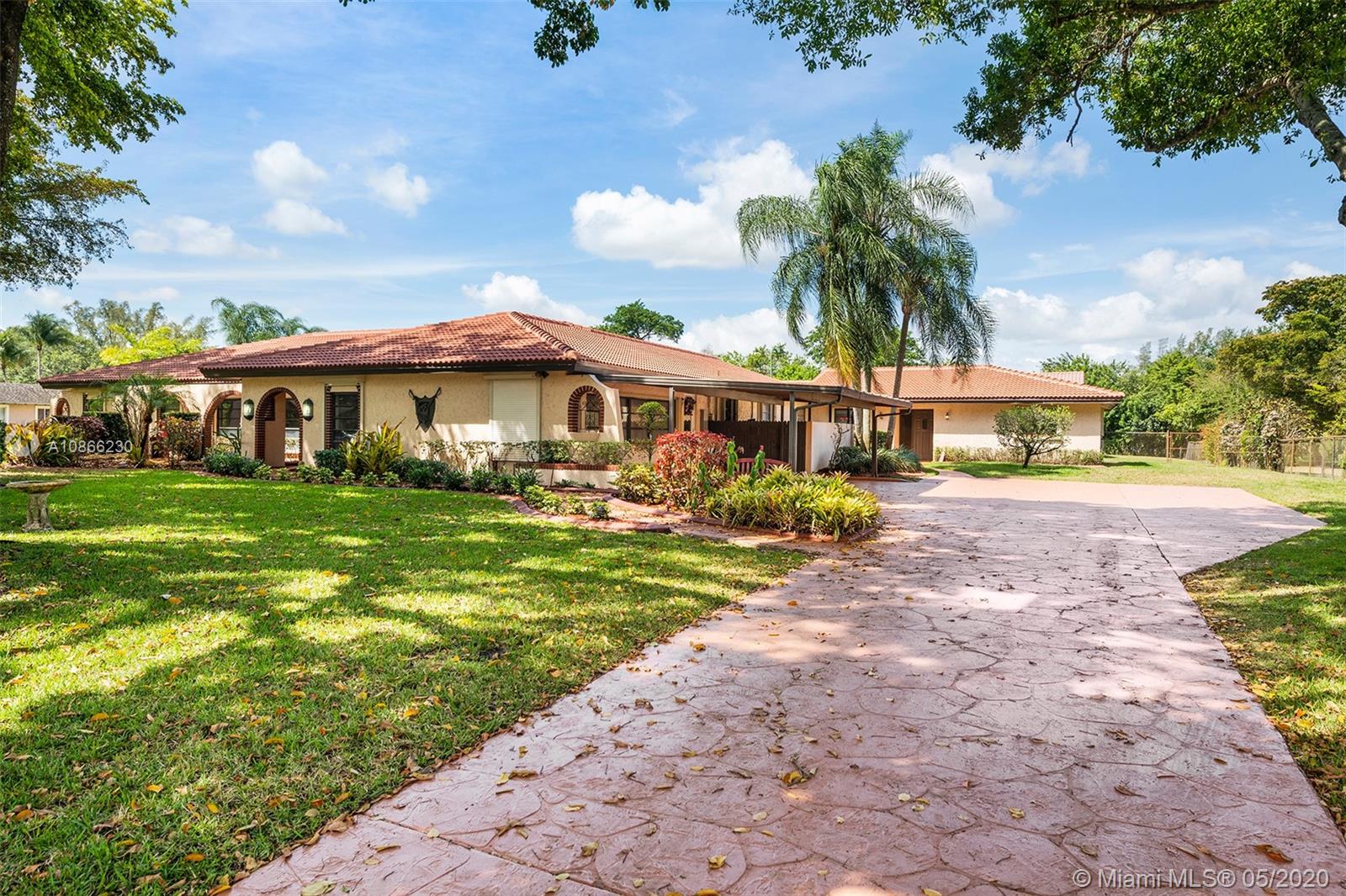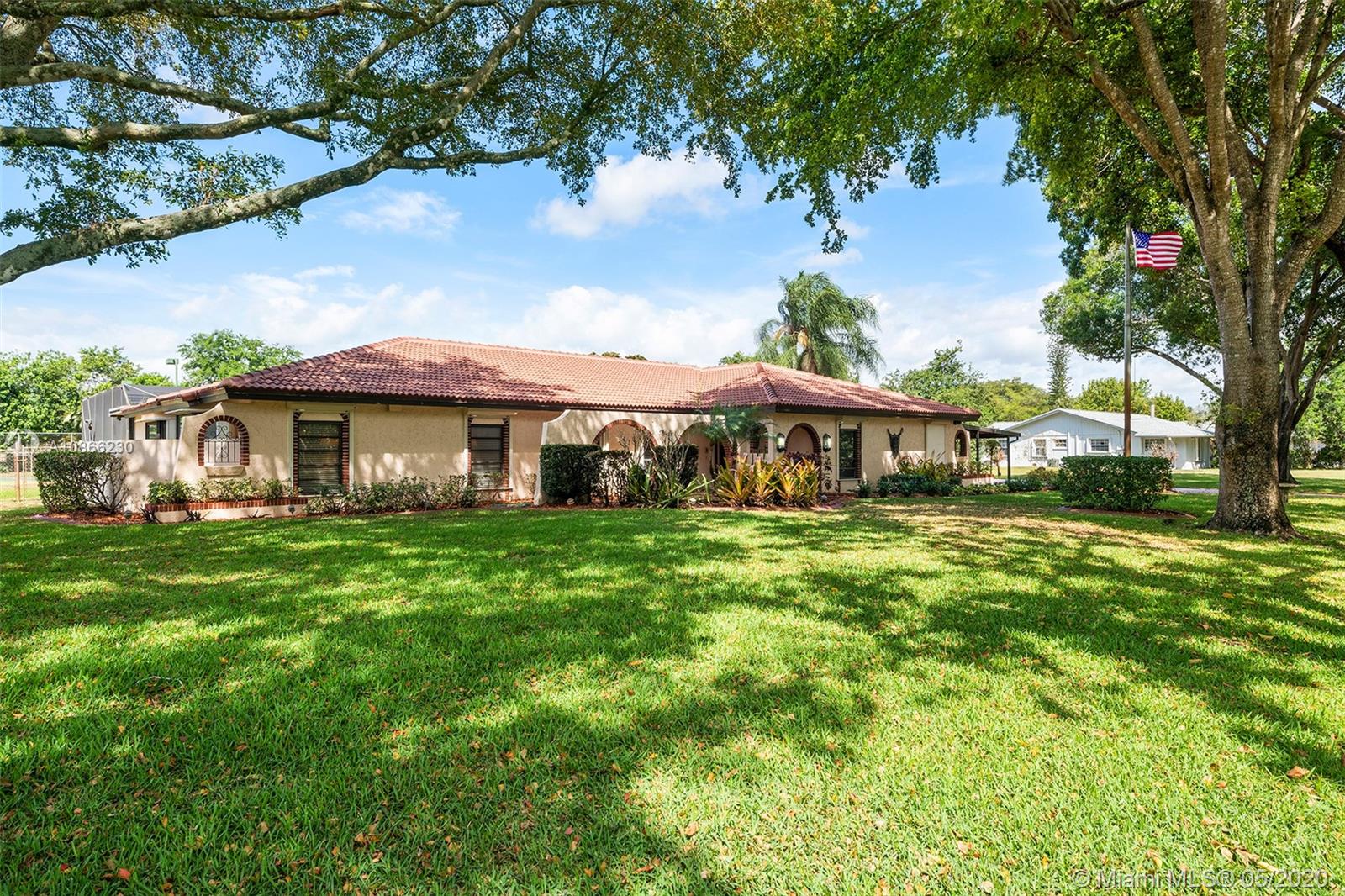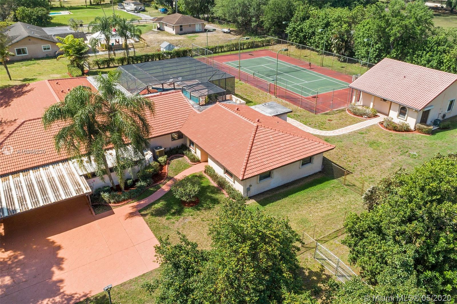 Beautiful Davie home situated on a 1.23 Acre lot! Home features 4 Bedrooms, 2.5 bathrooms, and an additional large office that could be a 5th bedroom! Stunning movie theatre inside. Large kitchen with double island open to the family room. Additional 2 bedroom 1 bathroom guest house is located on the property. A third structure sits on the property and was used as a game room by the sellers. Backyard contains large pool and surrounding deck with enclosed screen and outdoor grill area. Full tennis court is located on the property.