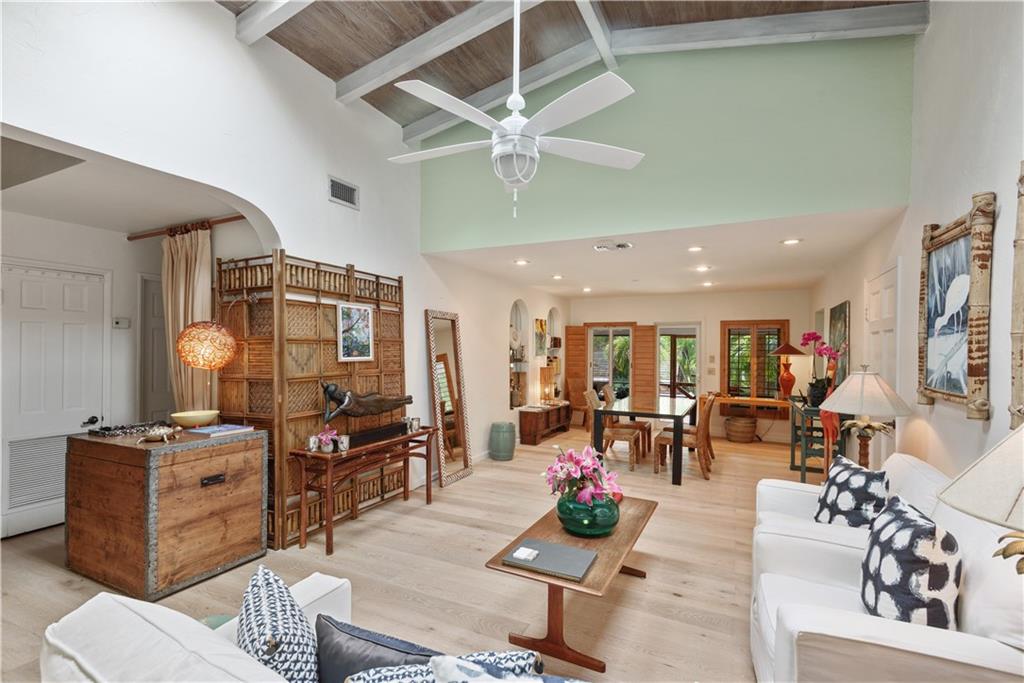 This is it! The Oasis you have been looking for. Located in sought after Las Olas Isles and looking across the 150ft wide Rio Navarro canal to the pretty park. This Impeccably maintained and updated property features spacious sunny rooms, impact rated windows and doors, exposed beam vaulted ceilings and two screened porches also with high ceilings, generous sized closets and dressing areas. The second floor master suite boasts tranquil tropical views of the heated saltwater pool and river, truly feels like a retreat. Direct ocean access and no fixed bridges, this secluded deep water residence offers privacy and is just minutes to the shops and restaurants of Las Olas Blvd. S. Gordon Rd AKA Navarro Isle.