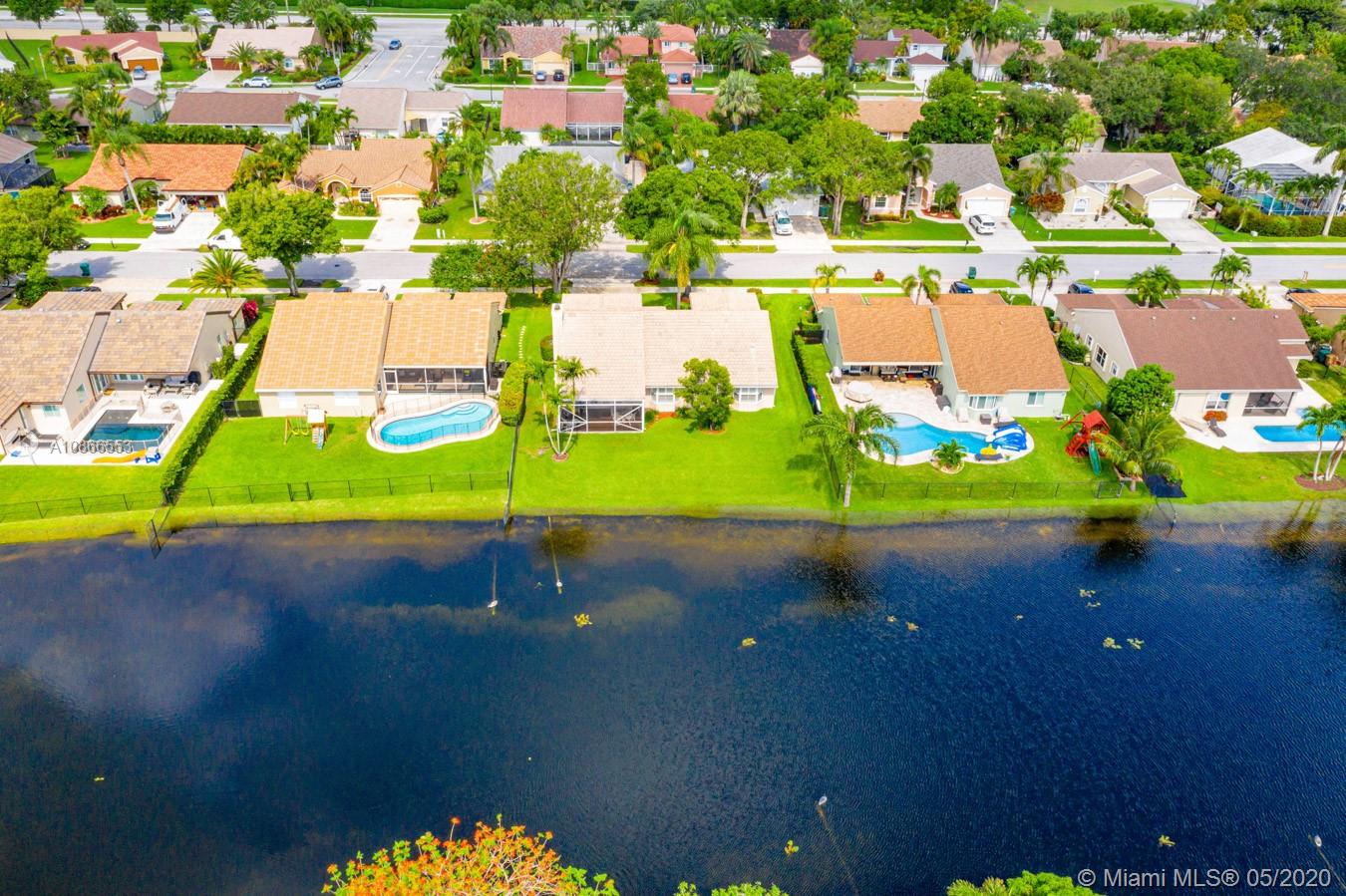 Beautiful waterfront home in Davie is ready to make your own! Spacious 3/2 features custom designed kitchen w/several pull out cabinets, over-sized island, all bedrooms have walk-in closets, crown molding throughout, vaulted ceilings in main living areas and master, wood burning fireplace, custom plantation shutters and blinds throughout, bay windows in cafe area & master with lake view, custom built-in unit in great room, 52 in. fans in all rooms, Bay windows in cafe area and master, large linen closet, tiled screened patio, French doors to patio, hardwood flooring and 17 inch tile throughout, utility sink in garage, hurricane accordion shutters/gutters, automatic sprinkler system that runs off lake, monitored security system on doors & windows and so much more. Make this your home today!