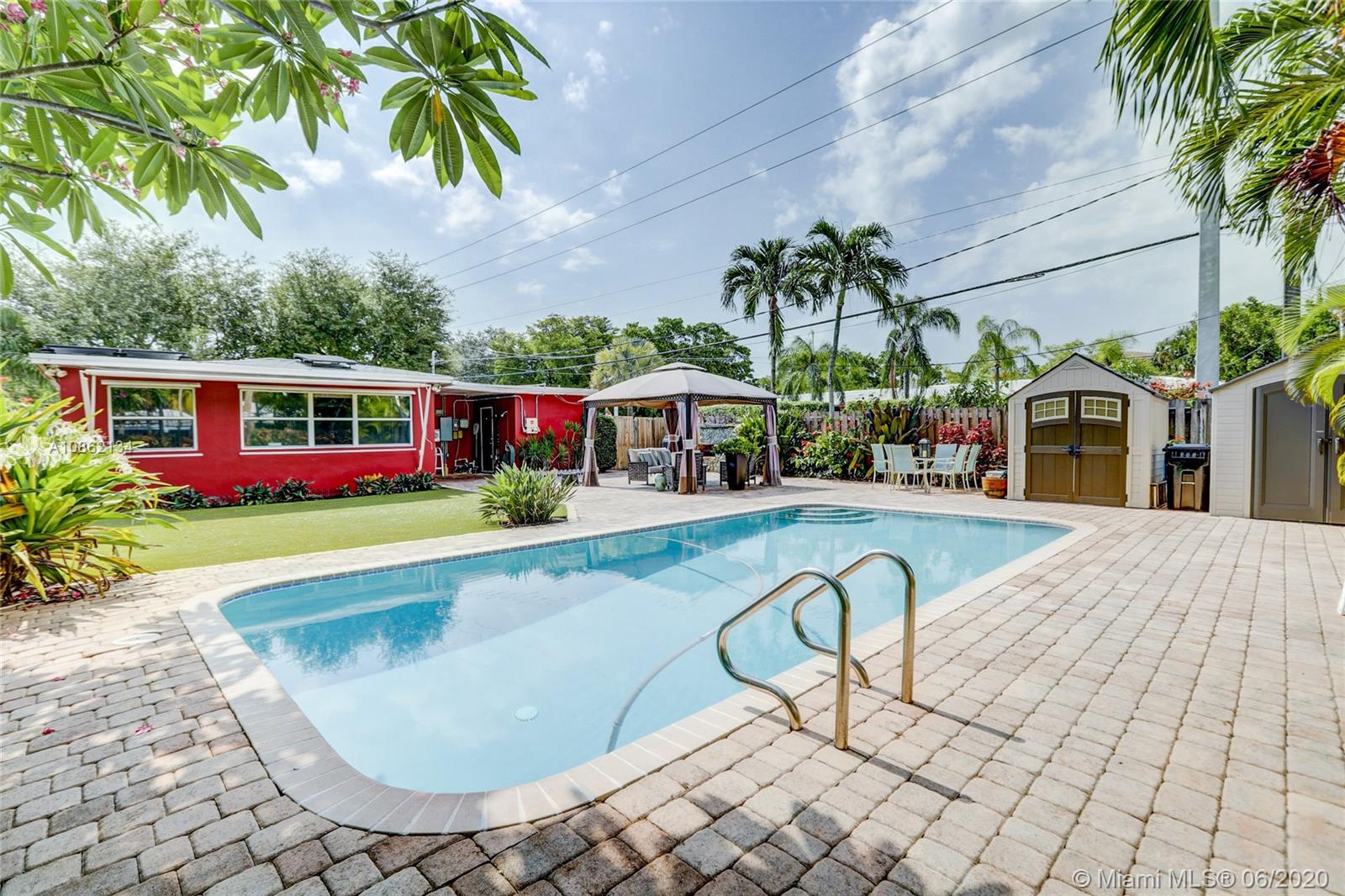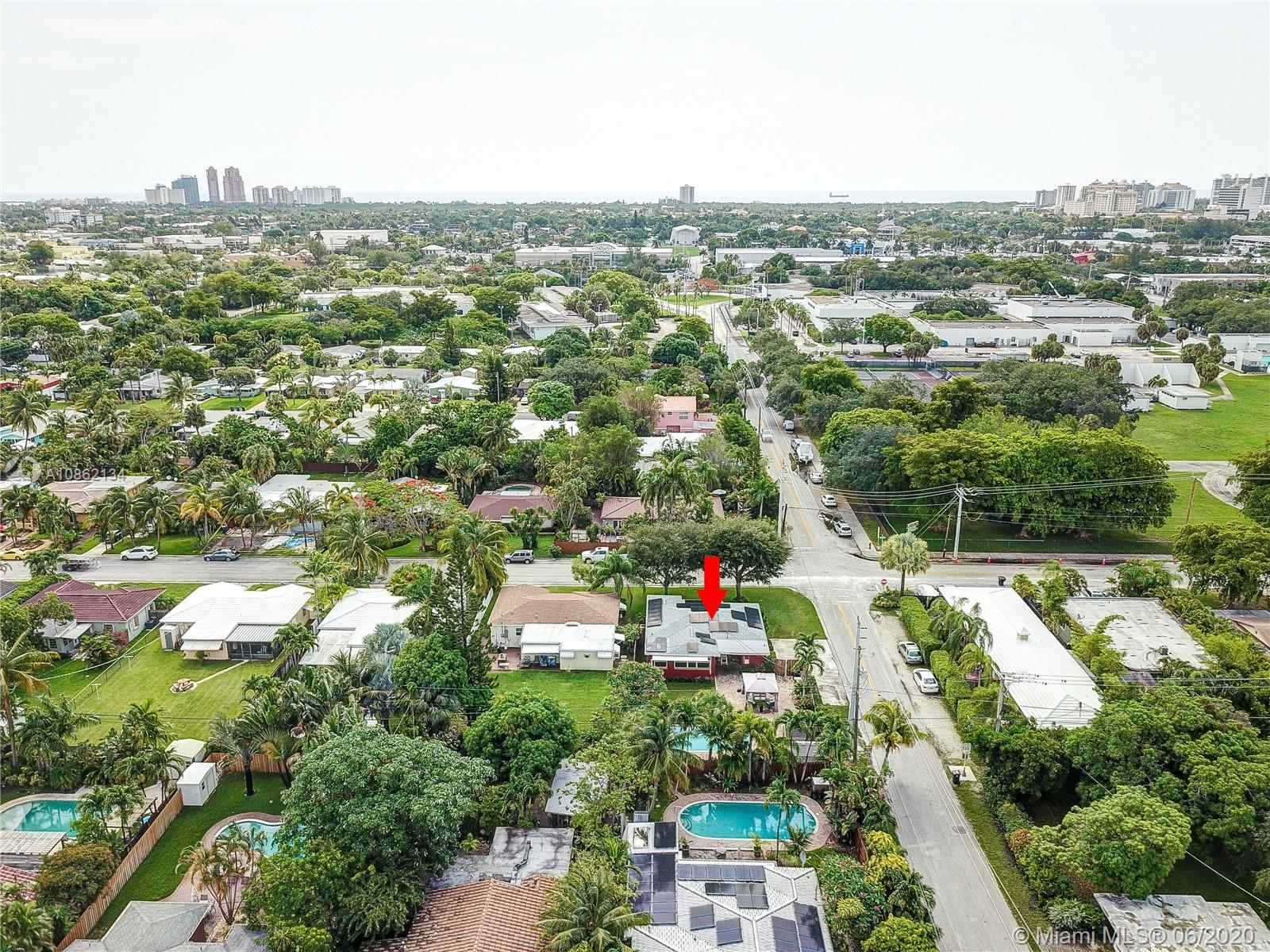 There's a RED HOUSE over yonder, with 2018 SOLAR PANELS! Electric bill just $9.97/month & transferable warranty! Under a mature tree canopy, seconds from the Poinsettia Heights / Lake Ridge areas of Progresso, you will find a large CORNER LOT home w/ great light & energy, & a sprawling backyard w/ pavers & faux turf for your dogs. The sparkling Pool w/ newer pump & filter is perfect for laps or get togethers. Other recent upgrades include 2018 ROOF, '15 plumbing drain line, fully fenced; plus NEWER AC, WATER HEATER & large neutral tile. Every opening also has WIND STORM PROTECTION. The energetic & friendly neighborhood is minutes from Whole Foods, Holiday Park, Galleria Mall, FAT Village & Ft Lauderdale Beach - in the heart of everything & the opportunities keep growing in this community.