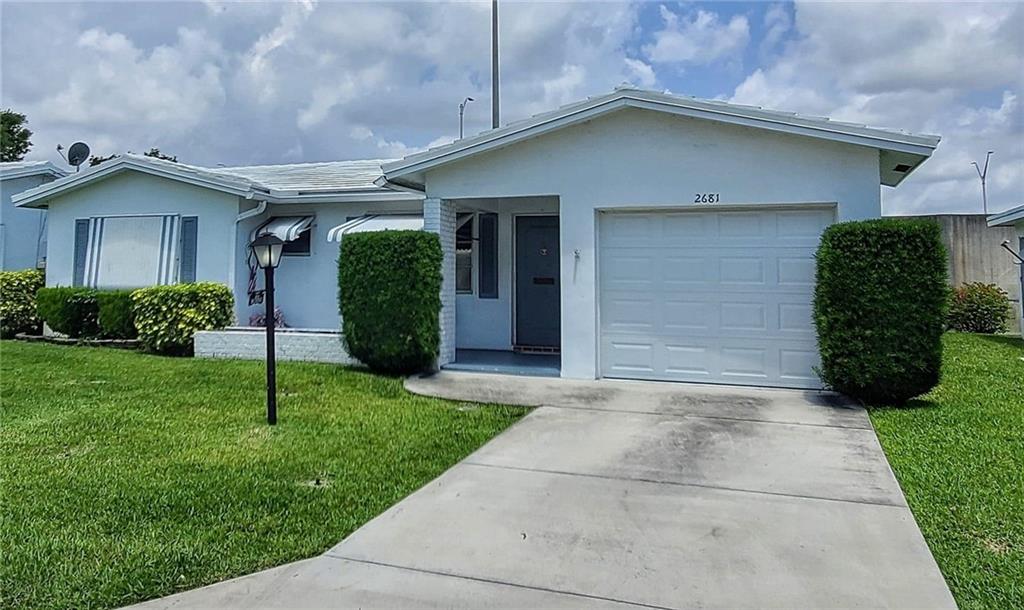 Least expensive 2 bedroom 2 bath CBS home with a garage in Broward County according to MLS & it's furnished! Nice screened in patio. New garage door 2019 & concrete driveway poured in 2014. Low HOA $219/mo & No Land Lease! Home can use updating and price reflects this. Lively Leisureville is an active 55+ community right in the heart of Eastern Pompano Beach.Leisureville offers a 9-hole 3 Par - golf course, 2 clubhouses, heated pools, billiards, picnic area, Bocce and Shuffleboard courts. A Leisureville bus takes you shopping. Motorcycles & golf carts okay. Large dogs-okay. Leasing okay. Enjoy wonderful shopping, fine dining, movies, the beaches, parks and access to 95 all close by.