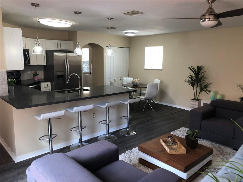 5 bedroom 2.5 bathroom 2 car garage home in small gated community of the Gardens at Huntington. Home shows very well and boast all spacious bedrooms with tile and wood floors through out. Kitchen features stainless steel appliances, quartz countertops and modern cabinets. Kitchen also entails lots of counter top space and eat- in breakfast area. A/C unit is fairly new and well maintained along with automatic garage opener. Back yard is fenced for extra privacy including a paved patio and fruit trees. Master bedroom includes two walk-in-closets and large master bathroom with separate shower and tub. Property is in great condition and feels larger than stated tax role.