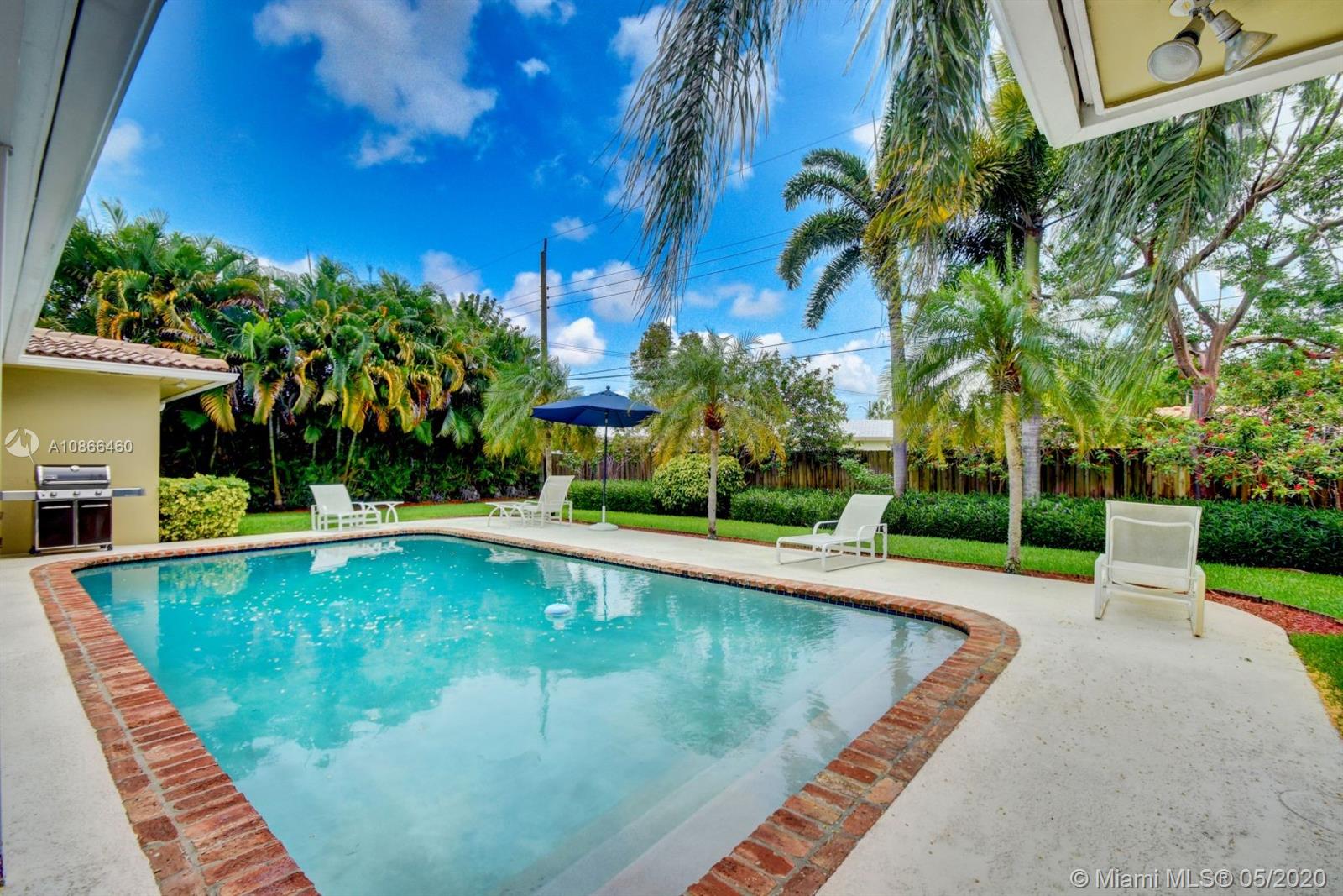 Located on a DOUBLE lot on a beautiful quiet street in Hollywood Hills and ready for new owners! This 4 bedroom Pool home has gorgeous cherry oak wood floors, spacious bedrooms with built ins, updated bathrooms, a modern and sleek kitchen with marble countertops, a quartz island, stainless steel appliances including a massive subzero refrigerator, and a gas stove! All appliances in excellent condition and like new! You can enjoy being quarantined in a backyard like this! Home is owner occupied and showings by appt only.