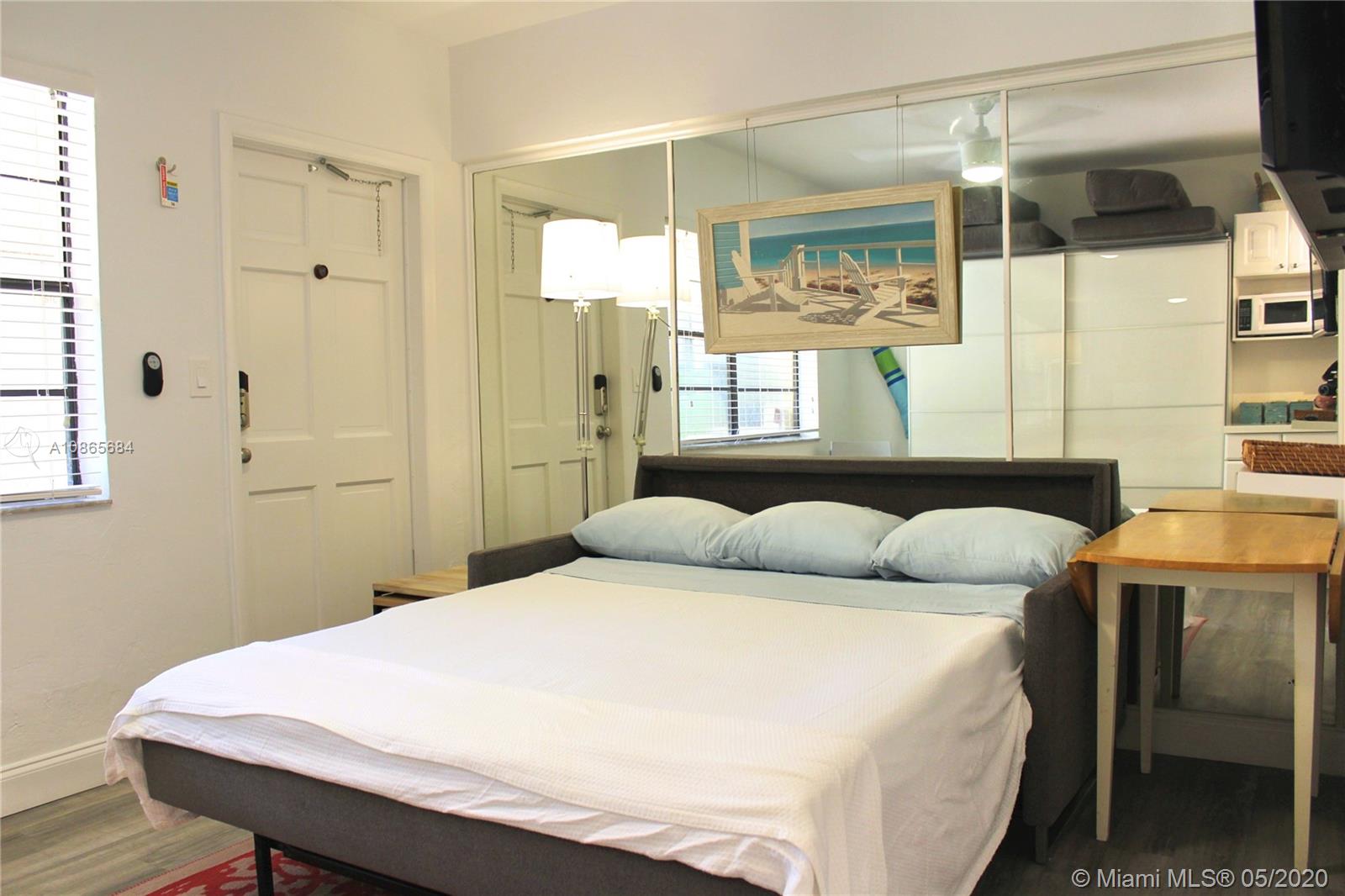 100 STEPS TO THE BEACH & LOCATED IN CENTER OF HOLLYWOOD BEACH. Walking distance to restaurants, bars, cafes & multimillion dollar condos/townhomes. Our modern studio apartment features new vinyl beach floors throughout, fully equipped kitchen, large closet & full bath. Unit comes with a 1 reserved parking space & storage closet in front of unit. The complex offers heated swimming pool, roof deck & laundry facility to owners. Also, there are NO RENTAL RESTRICTIONS, NO HOA INTERVIEW, PET FRIENDLY & the MONTHLY HOA FEE IS $215. Building is quiet & friendly with opportunity to live full time or easily rent it out part time to cover expenses ( up yo $4,700 per month in rental income). Perfect for the beach, fishing, surfing, hiking, jogging, skateboarding, bike riding, fine dining, etc.