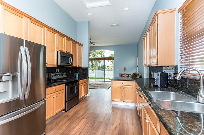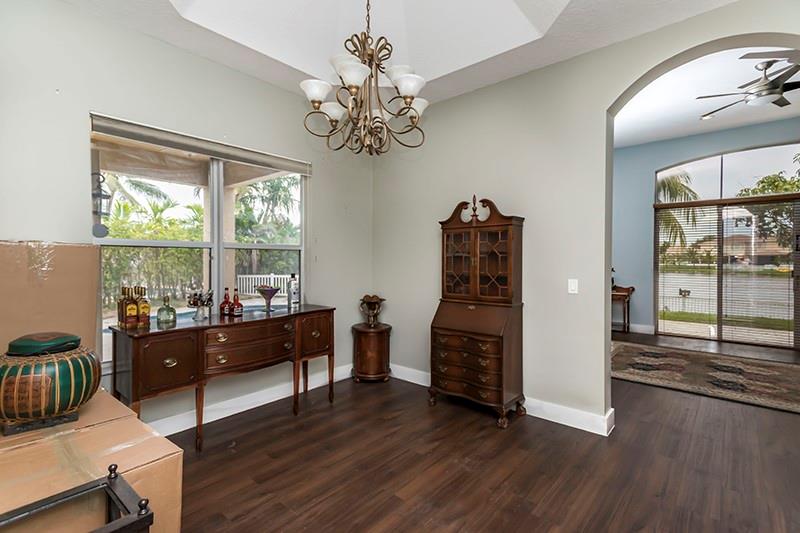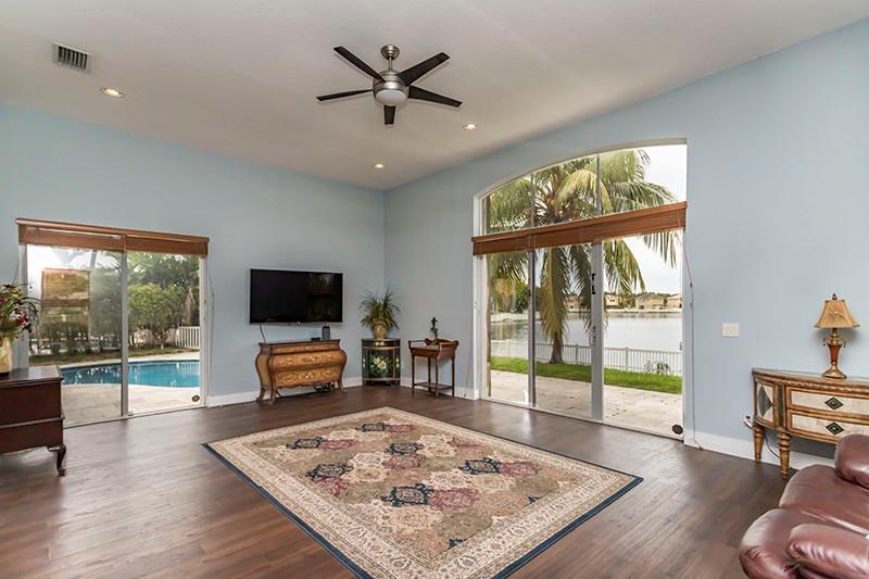 GORGEOUS FOUR BEDROOM, THREE BATH HOME WITH POOL AND LAKE IN MONARCH LAKES! UPGRADED KITCHEN WITH GRANITE COUNTERTOPS, WOOD CABINETRY & STAINLESS STEEL APPLIANCES. ONE BEDROOM AND FULL BATH ON THE LOWER LEVEL. STUNNING WOOD FLOORING THROUGHOUT AND WROUGHT IRON RAILINGS. OVERSIZED FENCED-IN BACKYARD WITH FREE FORM POOL, EXPANSIVE TRAVERTINE POOL DECK, LARGE GRASSY AREA AND LAKE VIEWS. HOME IS PROTECTED BY ACCORDION SHUTTERS AND ON QUIET CUL DE SAC WITH NO THRU TRAFFIC.