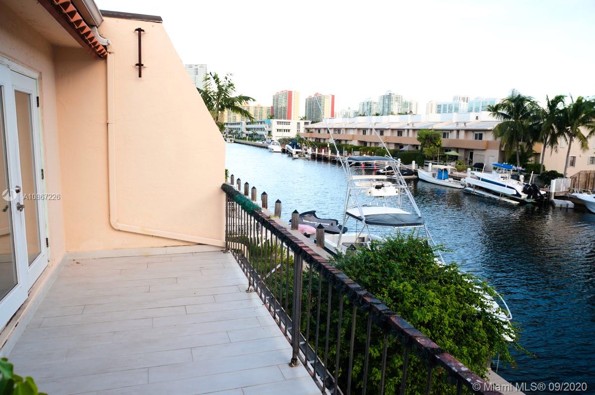 LOWEST PRICED unit on the water with direct ocean access and a 20 ft boat dock with no fixed bridges to ocean. Don't miss this chance to own a boat at home! Needs TLC, fixer upper. Gated community of Eastern Shores, this townhouse has 3 bedrooms + 2 and a half remodeled bathrooms! Huge bedroom overlooking the Intracoastal with a private balcony. Great patio area facing the water and community pool. Association allows immediate yearly rentals & also allows large (and multiple) pets for owners. Close to Aventura Mall, Oleta State Park, restaurants, shops etc.