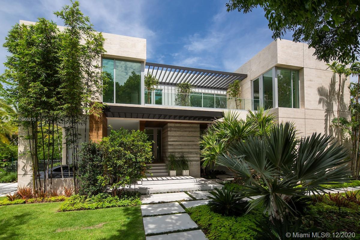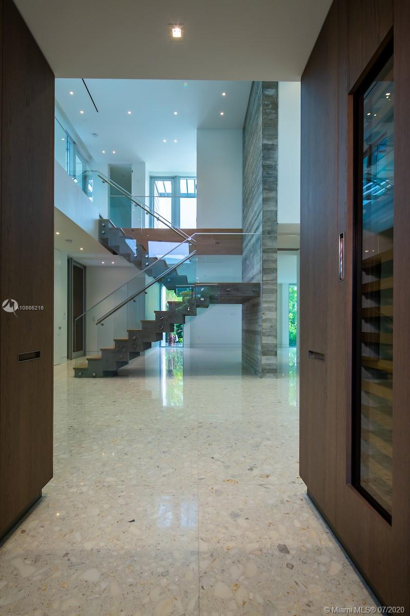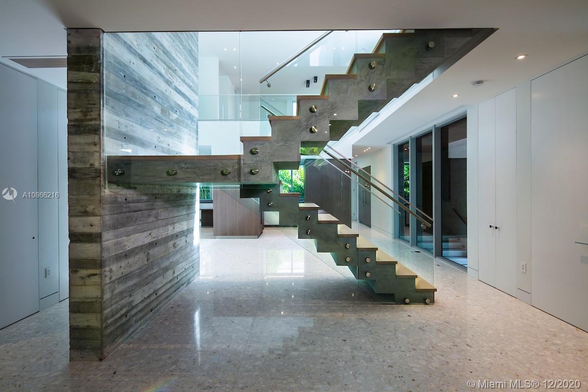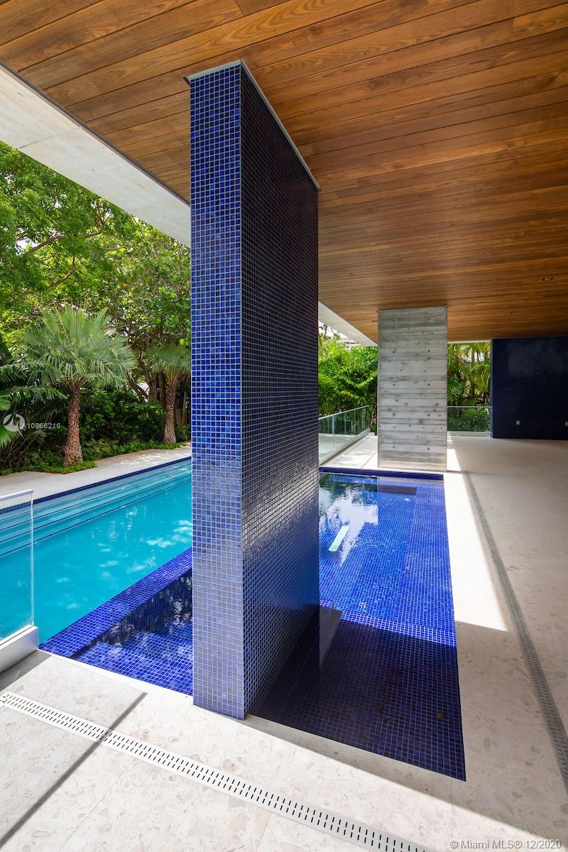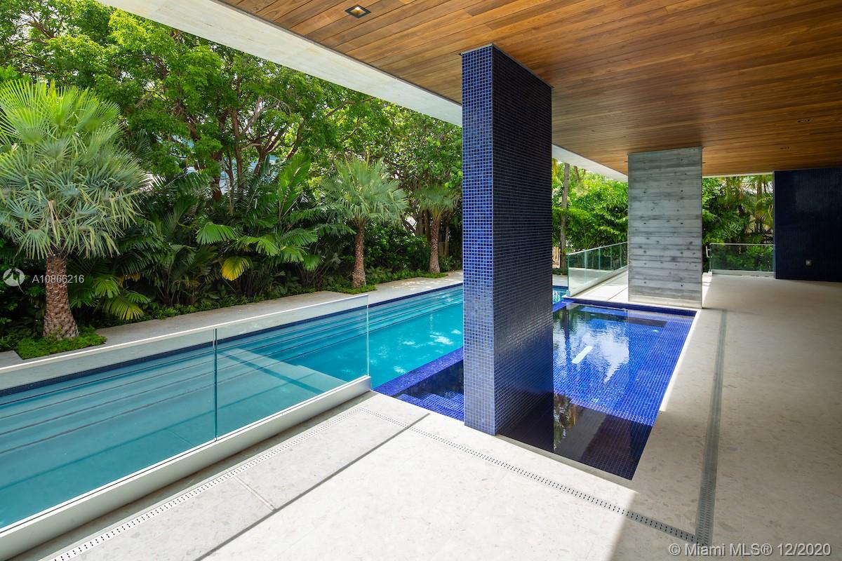 Located on a 12,500 sq. corner lot surrounded by beautiful landscape and just a few steps away from the key Biscayne beach this house blends in with the ocean. A combination of exposed concrete, roman travertine marble, and Timura wood volumes are interconnected, true open spaces, extensive terraces, green trellises, and an impressive 60´ long lap pool, 5,500 sf. under HVAC area, and a gross area of 7,680 sf. Italian Quarella floors, beautiful Italian kitchen by Binova Cucine, Plumbing fixtures by Dornbracht, Gessi, Toto Neorest, etc. State of the art kitchen appliances, Lighting and Crestorn integrated system.