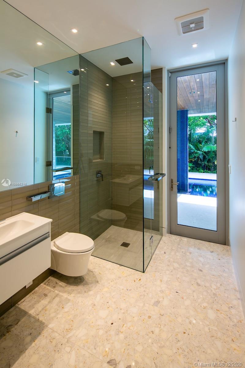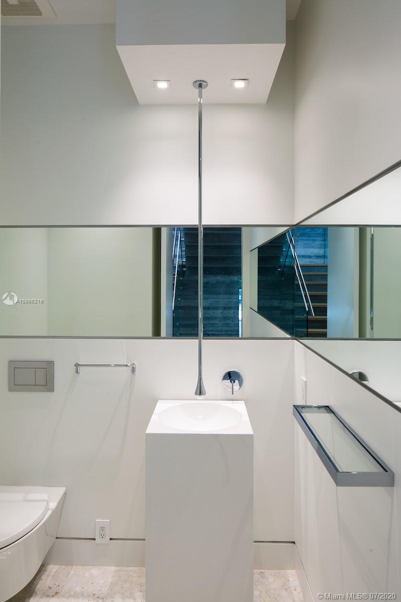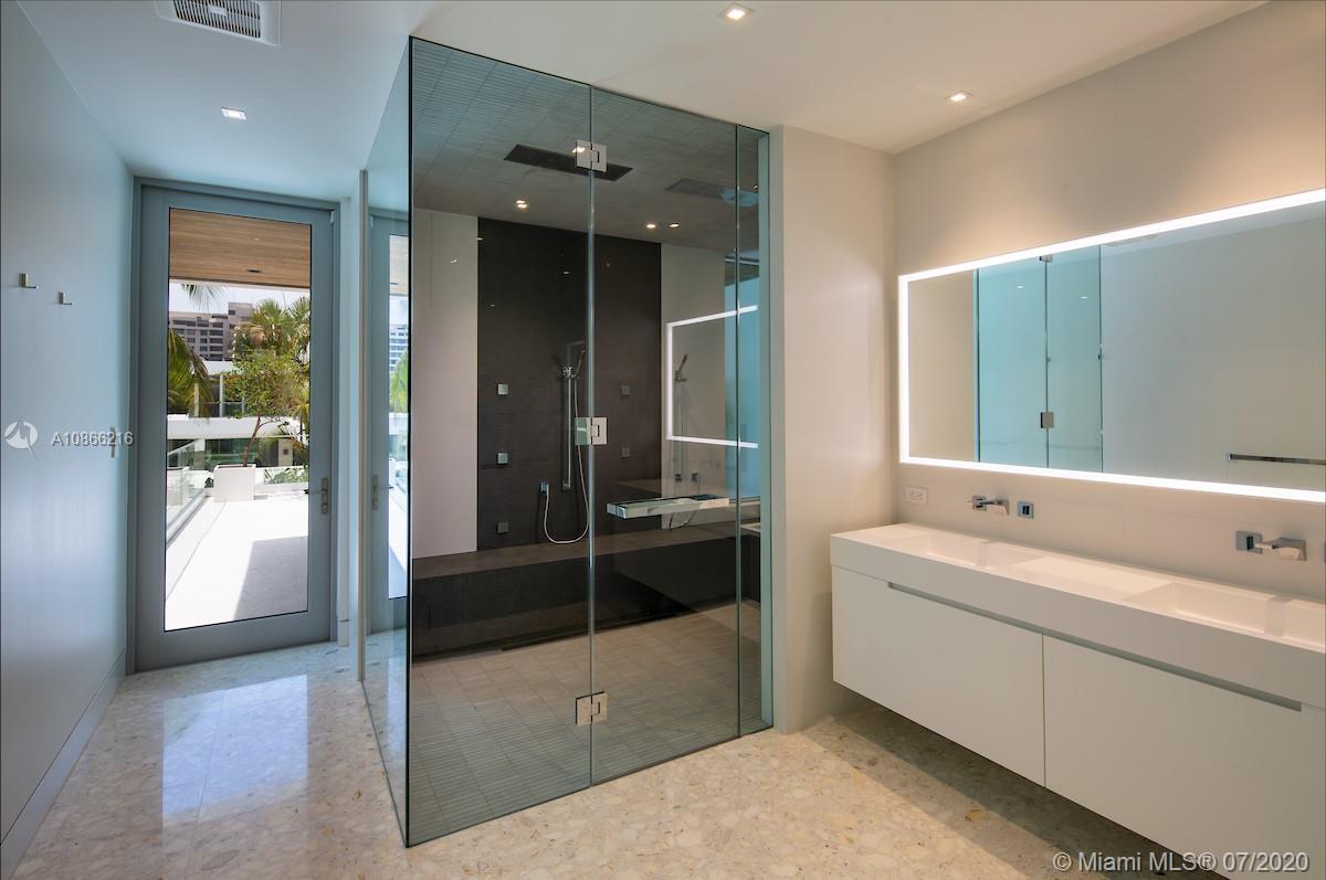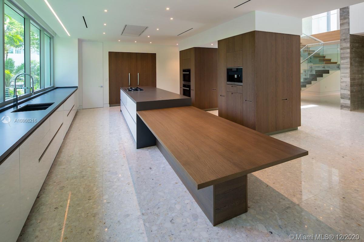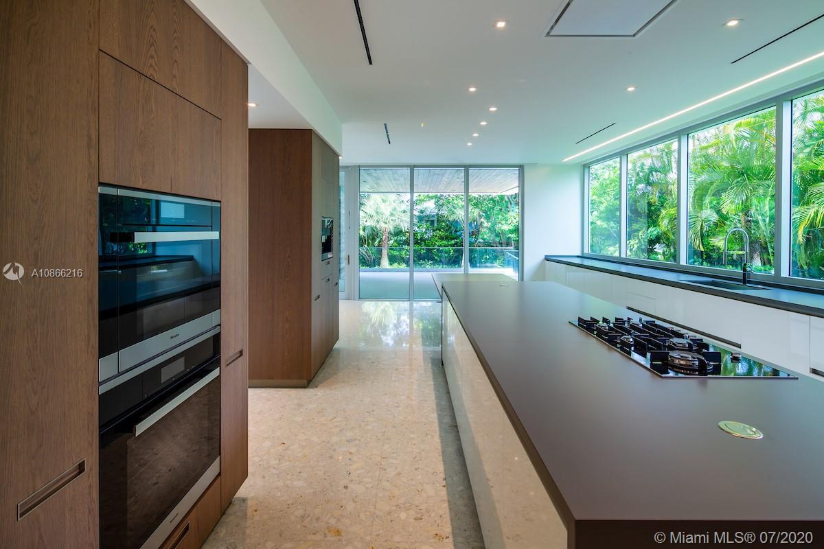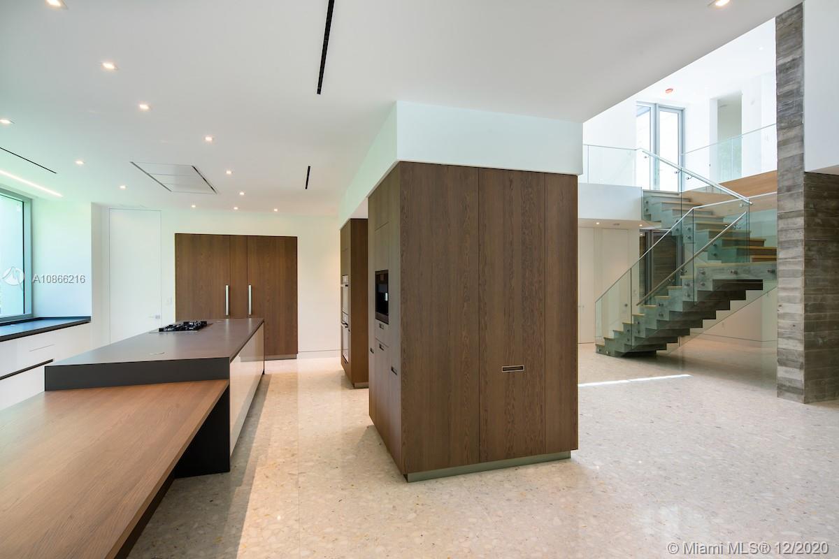 Located on a 12,500 sq. corner lot surrounded by beautiful landscape and just a few steps away from the key Biscayne beach this house blends in with the ocean. A combination of exposed concrete, roman travertine marble, and Timura wood volumes are interconnected, true open spaces, extensive terraces, green trellises, and an impressive 60´ long lap pool, 5,500 sf. under HVAC area, and a gross area of 7,680 sf. Italian Quarella floors, beautiful Italian kitchen by Binova Cucine, Plumbing fixtures by Dornbracht, Gessi, Toto Neorest, etc. State of the art kitchen appliances, Lighting and Crestorn integrated system.