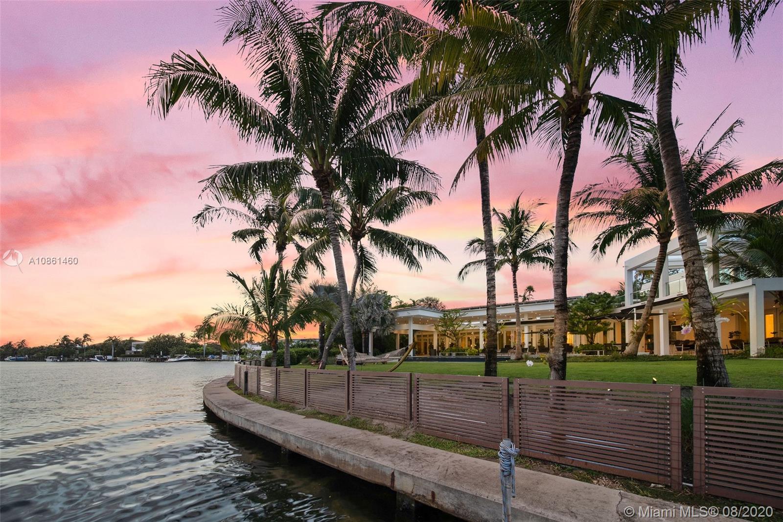 Icons of architecture & design-Bernard Zyscovich & Raymond Jungles-personally collaborated to deliver this stunner. Rebuilt & impeccably finished authentic midcentury MiMo estate. boasts 5,578-Sq. Ft. of covered terraces (incl. 5 retractable electric canopies). Main house and guest house (W/OFFICE) overlook 2 pools (infinity & lap), blending indoor-outdoor living along 200+ Ft. of water frontage on nearly 1 acre. Guest house is a HOME OFFICE sanctuary w/bedrooms & kitchenette downstairs; executive office & gym (steam & sauna) upstairs. Crestron system operates entire property & 16 cameras. Highlights include custom 30,000-lb four post boat lift, 4 kitchens (main, kosher, summer, kitchenette), 67-KW solar panel system (largest in Miami-Dade) & full-house generator. Features list attached.
