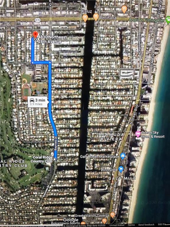EAST OF US1 : Impeccably maintained single family home in the sought after CORAL RIDGE COUNTRY CLUB ESTATES. Just an 18 minute walk to the beach and even closer to Lauderdale-by-the-Sea.Golf and tennis activities at the Coral Ridge Country Club are just 15 minutes by walk or a 4 minute drive. Property has: Large living area that brings in natural light, great kitchen, perfect for entertaining. 3 bedrooms all accommodate king beds, en-suite bathroom with a TOTO washlet and rain shower. Hurricane impact windows/doors, custom shades throughout. Recessed lighting in all rooms. Sliding door opens to a covered patio and heated salt water pool with large grass area (great for kids/dogs).LED landscape lighting and pool light with wifi controlled sprinklers and mature plantings. Must See!!
