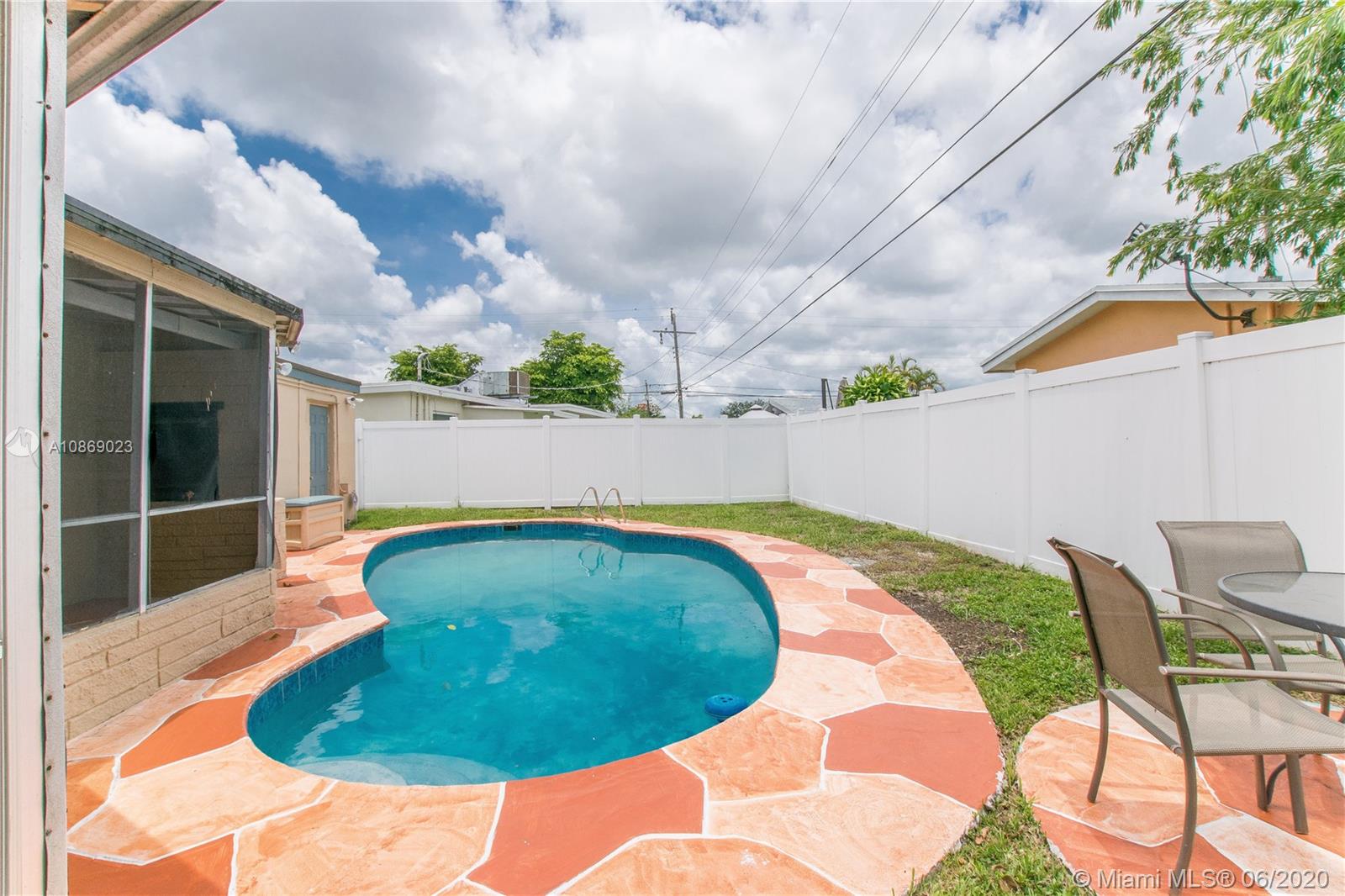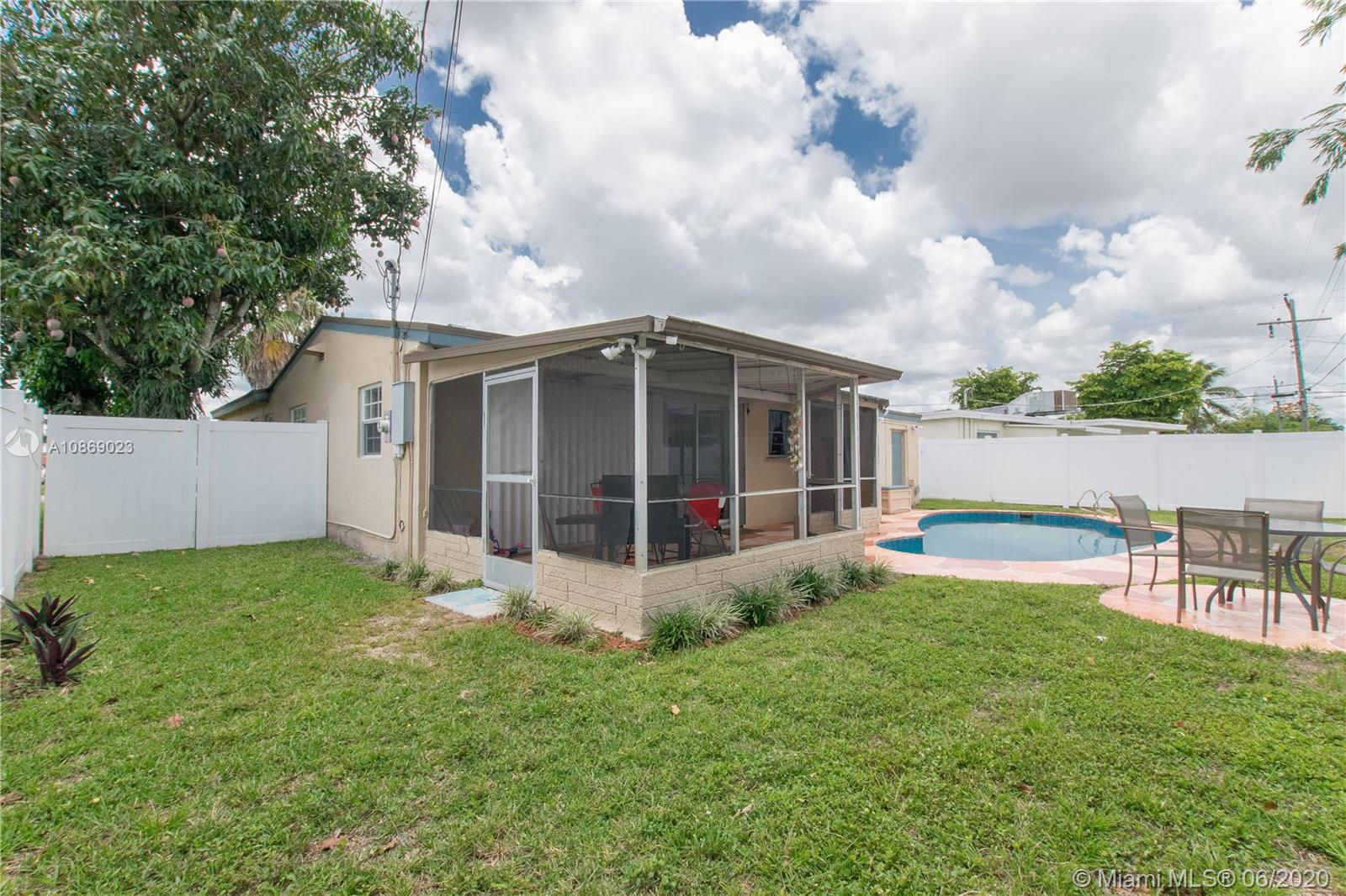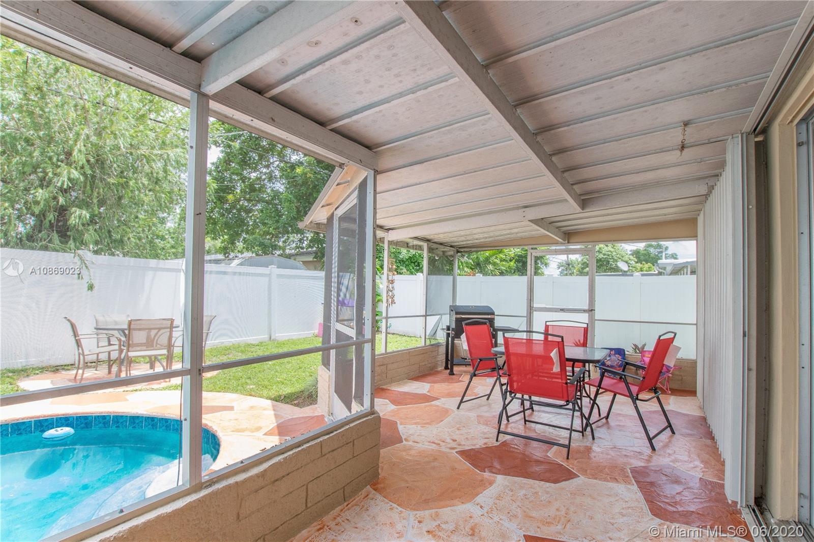 Beautiful 3 bedroom, 2 bathroom home in the heart of Miramar. This property features a 2-car covered driveway, open front porch, spacious rooms, laminate flooring throughout, tiled kitchen and bathrooms, indoor laundry, 1 car garage, screened in back port overlooking the pool and back yard. Centralized location near dining, entertainment and much more. Won't last!