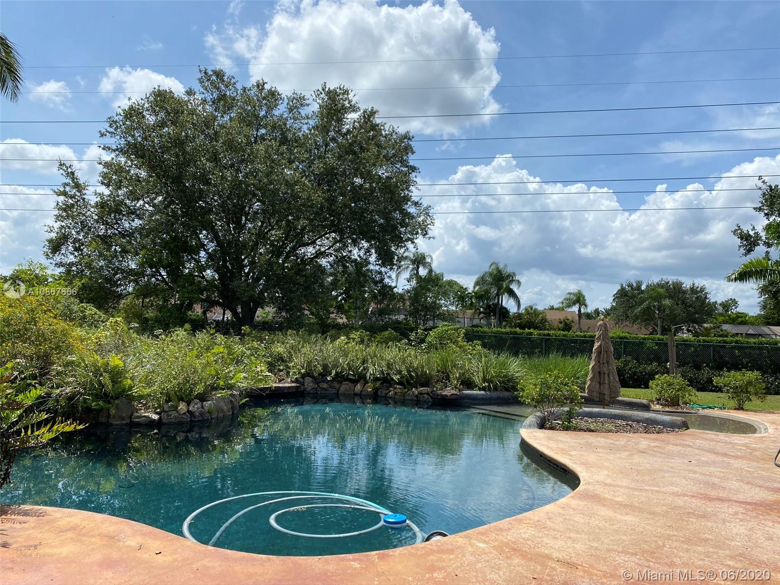 This beautiful five bedroom/three & a half spacious property sits on an acre lot and features an oversize resort style lagoon pool with a beach entrance & water feature, large tikki hut, sunk in trampoline, volleyball area & lots of additional space to make it your own. This property is located on a quiet street at the end of a cul-de-sac & backs up to Shenandoah Park. The living room features a wood burning fireplace. It has a two way split plan & two master suites with plenty of closet space, granite counters, walk in shower in both plus a custom tub in main suite. The updated & spacious eat in kitchen features granite, stainless steel appliances & a large side by side Frigidaire refrigerator. Located in a top rated school zone. Easy assess to highways, Sawgrass Mills & Weston!