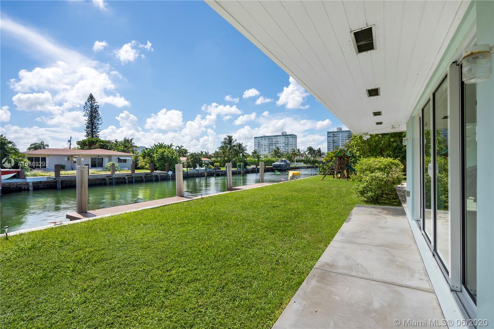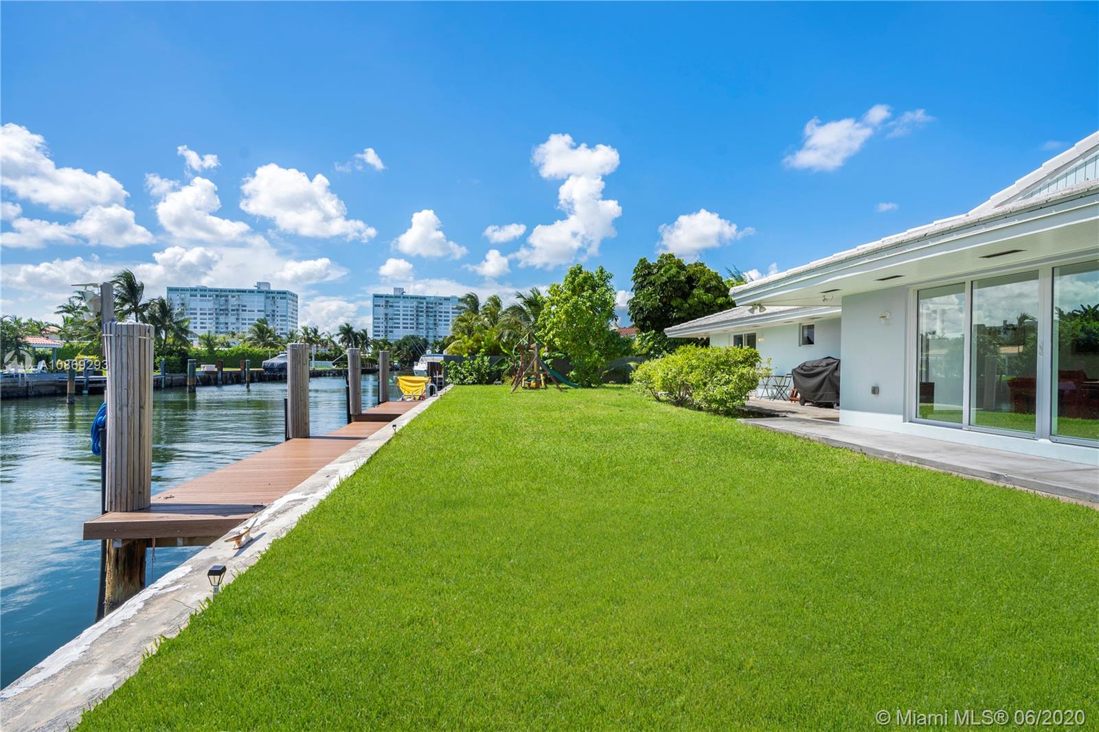 WON'T LAST, huge 14,063 lot, Renovated, Waterfront in San Souci Estates. Fully upgraded interiors with high ceilings. Spacious home with Formal Living Room, Formal Dining Room, Den, dedicated walk-in Laundry room with service entrance, and Chef Kitchen. Open floor plan with Lots of natural light thanks to the many impact glass windows throughout the home. Master Bedroom has sliding glass doors that open to the water with walk-in closet. 113' feet on the water to park your dream yacht open Bay with no fixed bridges. Near Bal Harbour shops, the Beach, and Whole Foods.