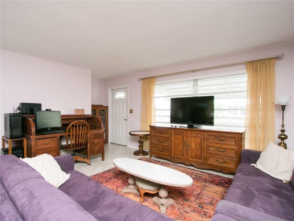 This home is one of the best locations on the market today in this active 55+ golf community, perfect Florida living for your seasonal or year-round home. The ocean is calling you, only 2.5 miles from your front door. Enjoy beaches, boating, restaurants, shopping from this well maintained 2 bedroom, 2 bath open floor plan, with eat in kitchen, tile throughout, screened patio for evening cocktails. HOA fee of $219/month covers golf for residents, water bills, 2 Clubhouses, 2 heated pools. Fee also covers lawn maintenance, pressure washing/painting roofs every 2 years & home exteriors every 4 yrs. Pets allowed, & NO LAND LEASE. One car Garage for a handyman’s workshop. Motivated widow, moving out of state to be with family. Bring all offers!