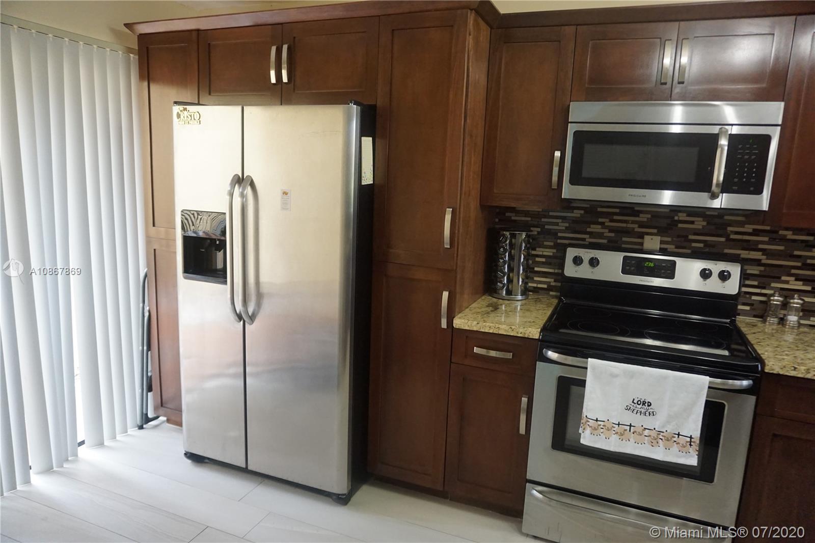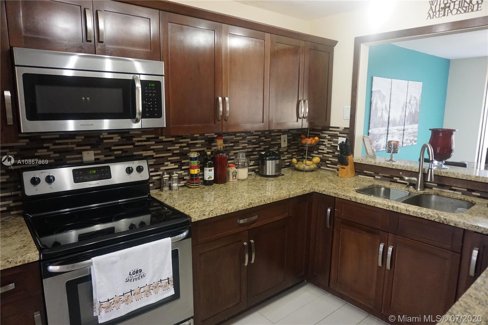 This beautiful, 3Beds/2.5 bath w/1 car garage TH in Doral, in the amazing community of Costa Del Sol, is in immaculate condition. It boasts newly renovated wood cabinets, granite countertop, SS appliances, gorgeous ceramic tile flooring throughout living areas, remodeled 1/2 bathroom, & modern ceiling fans & chandeliers. Its 3 BDRMS are large and spacious and the large screened patio faces the lush & delightful golf course. This quiet, gated community has 24/7 security w/patrolling security guards, golf course, tennis courts, basketball courts, child play area, community pool w/club house, restaurant, & walking and biking trails. Assoc. fee covers plenty: water, cable, roof & exterior repairs, insurance, termite prevention, common areas & more. Your pickiest buyers will love this place.