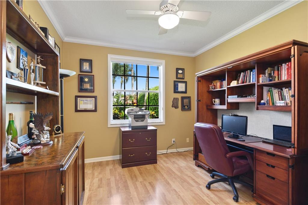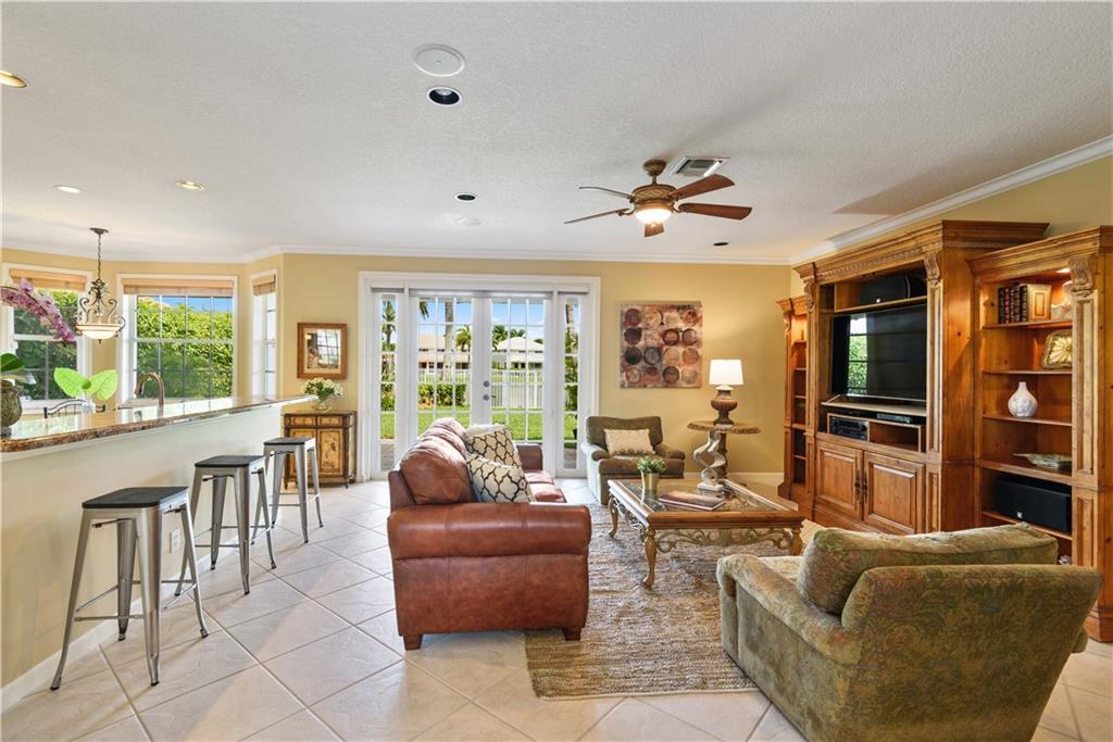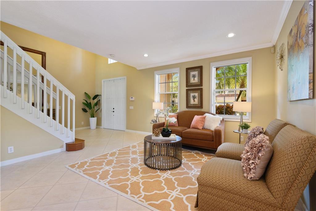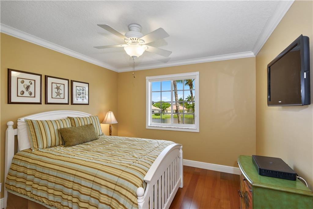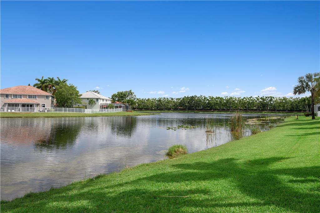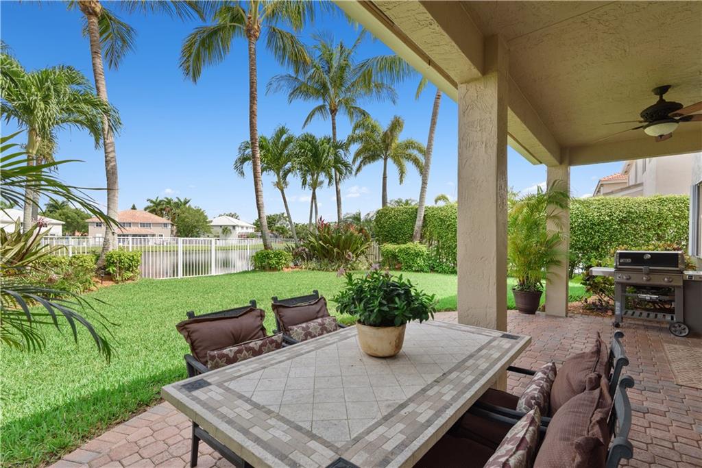Meticulously cared for 5/4 lakefront home in the much sought after Ridges community. The flow of this home is great for entertaining and the outdoor patio sensational for relaxing at the end of the day with breathtaking water and sunset views. The kitchen has 42” solid maple cabinets with granite countertops and stainless steel appliances. With one bedroom and full bathroom on the first floor, guests can have a space of their own or it can be used as a home office. Finer finishes include crown molding, custom window blinds, hardwood floors on 2nd floor, custom built-in closets, and accordion hurricane shutters. 24 hour security, walking trails, beautiful new clubhouse with a pool, kiddie pool and water playground, tot lots, basketball, soccer and pickleball courts. Walk to A rated schools.