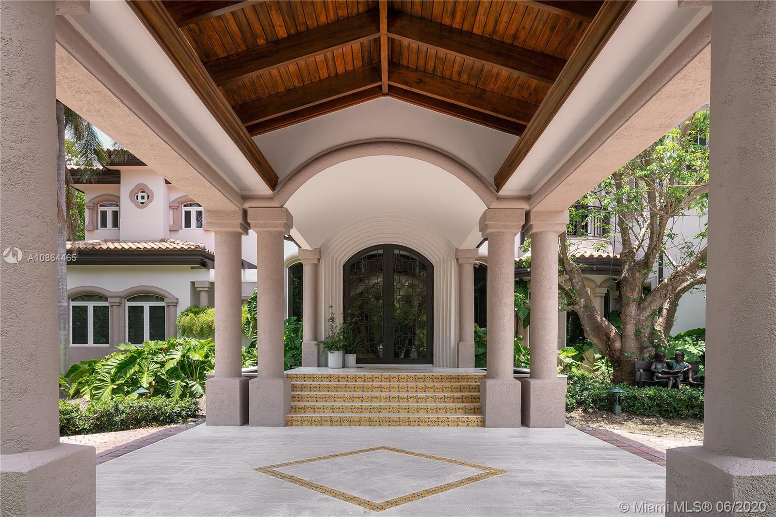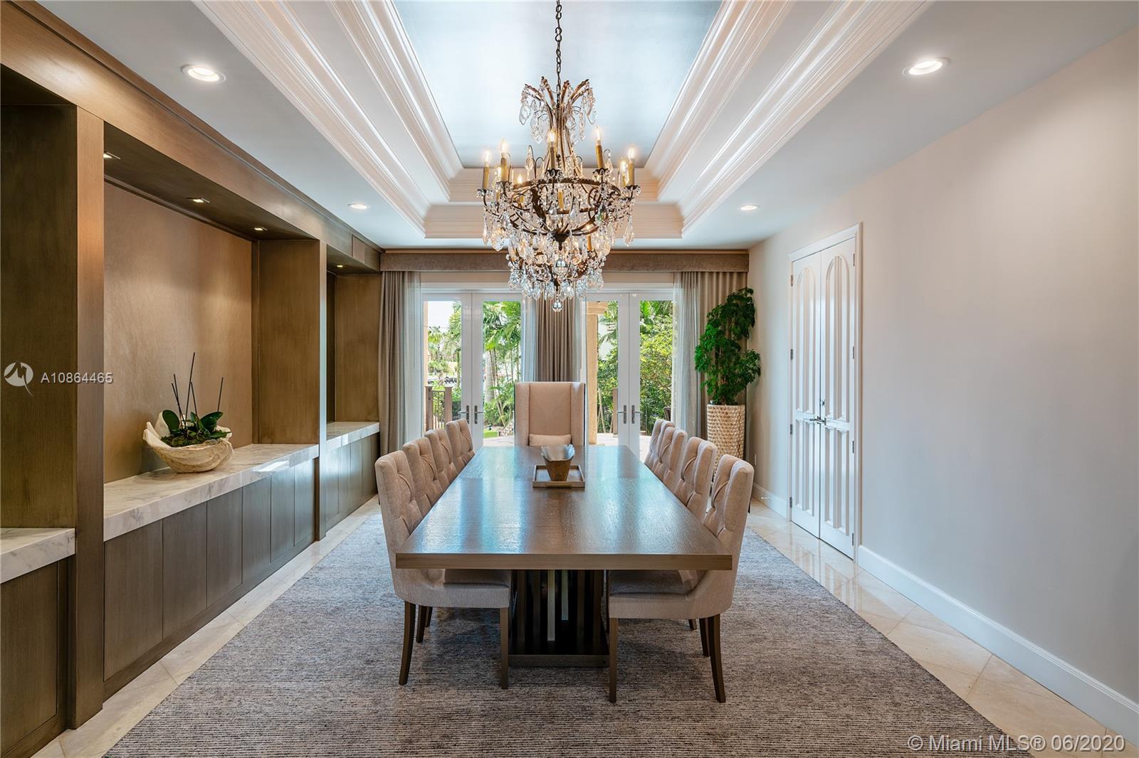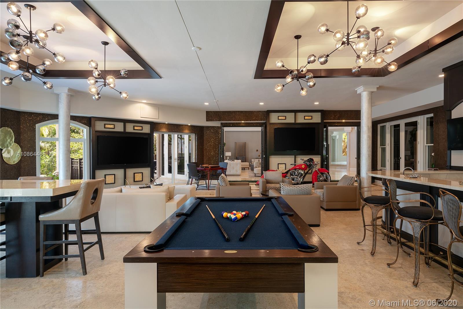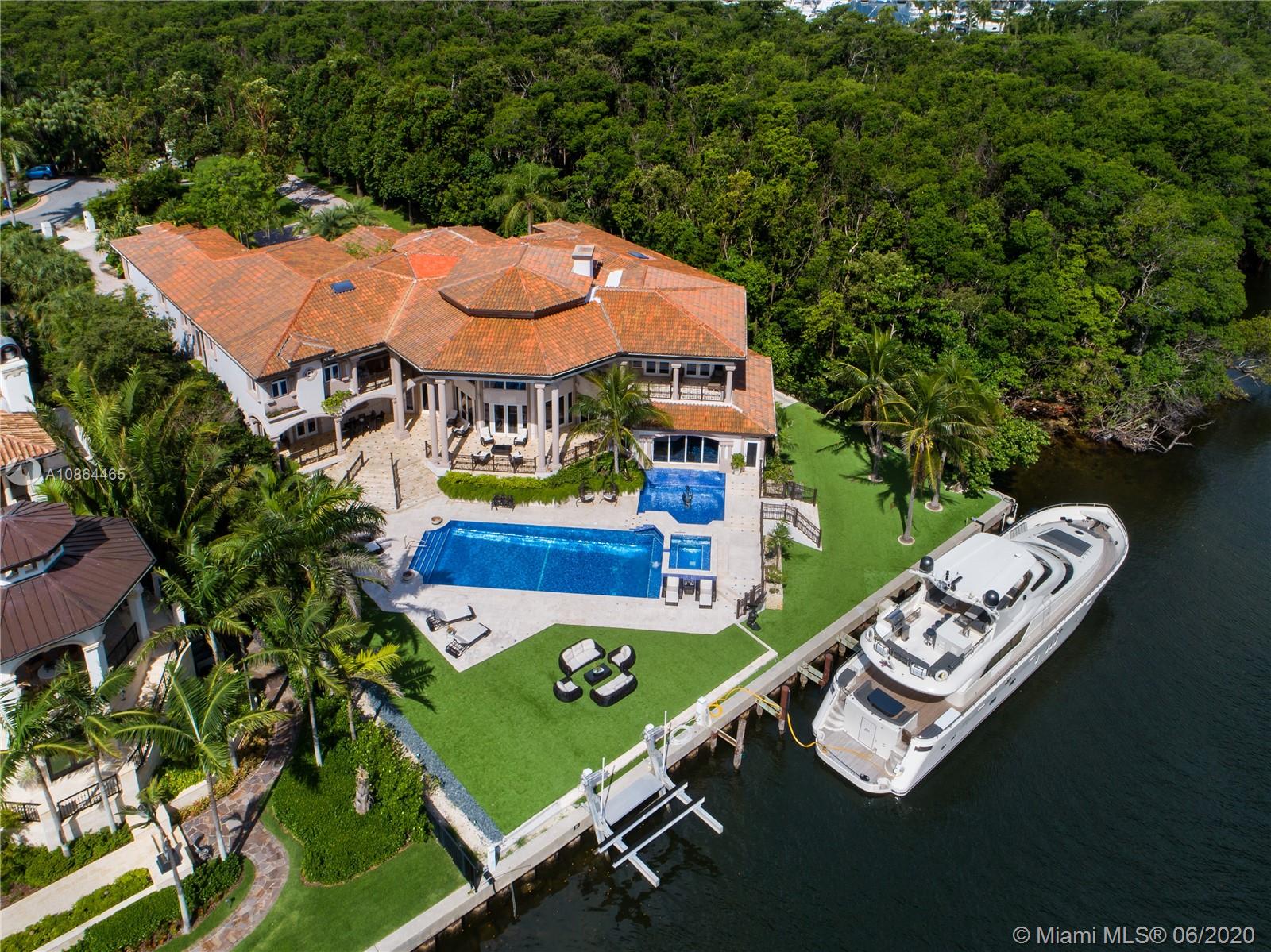 Nestled in exclusive, 24 hr guard gated Tahiti Beach Island, this private estate offers a 49,045 SF lot and 119ft water frontage w direct ocean access and private dock. This elegant property features a grand entryway greeted by double height ceilings in the formal living and dining areas, fireplace, media and recreation rooms w bar, expansive chef’s kitchen, all surrounded by large terraces overlooking the pool and bay. Large master suite offers a spacious bath, sauna and walk in closets, sitting area and balcony to enjoy the city and bay views. Extras include elevator, gym, office, 3 car garage w lift to accommodate 3 additional cars, porte-cochere for additional covered parking and private entry to service quarters. Community amenities include private beach, tennis and basketball courts.