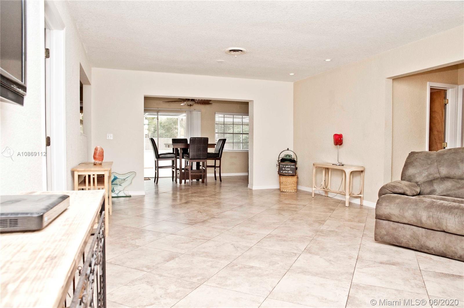 Spacious 3Br/2Ba single family home in a peaceful, sought after residential neighborhood in Hollywood, east of US-1. Located only a mile from Hollywood beach and close to Downtown shopping and restaurants. One car garage, circular driveway and even more extra space in the back to park more cars. Open concept kitchen, stainless steel appliances. The second bedroom has an additional den area. Tiles throughout, carpet in bedrooms. Second bathroom is updated. Sliding glass doors, Florida room, porch, hurricane shutters, fenced yard. New water heater, updated electrical and plumbing. This property won’t last!