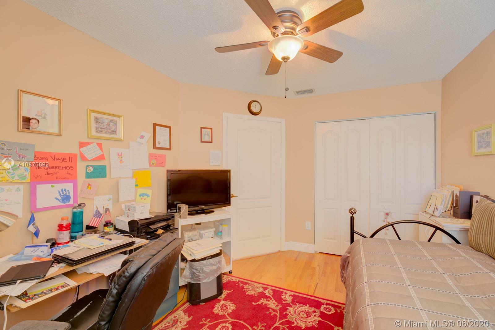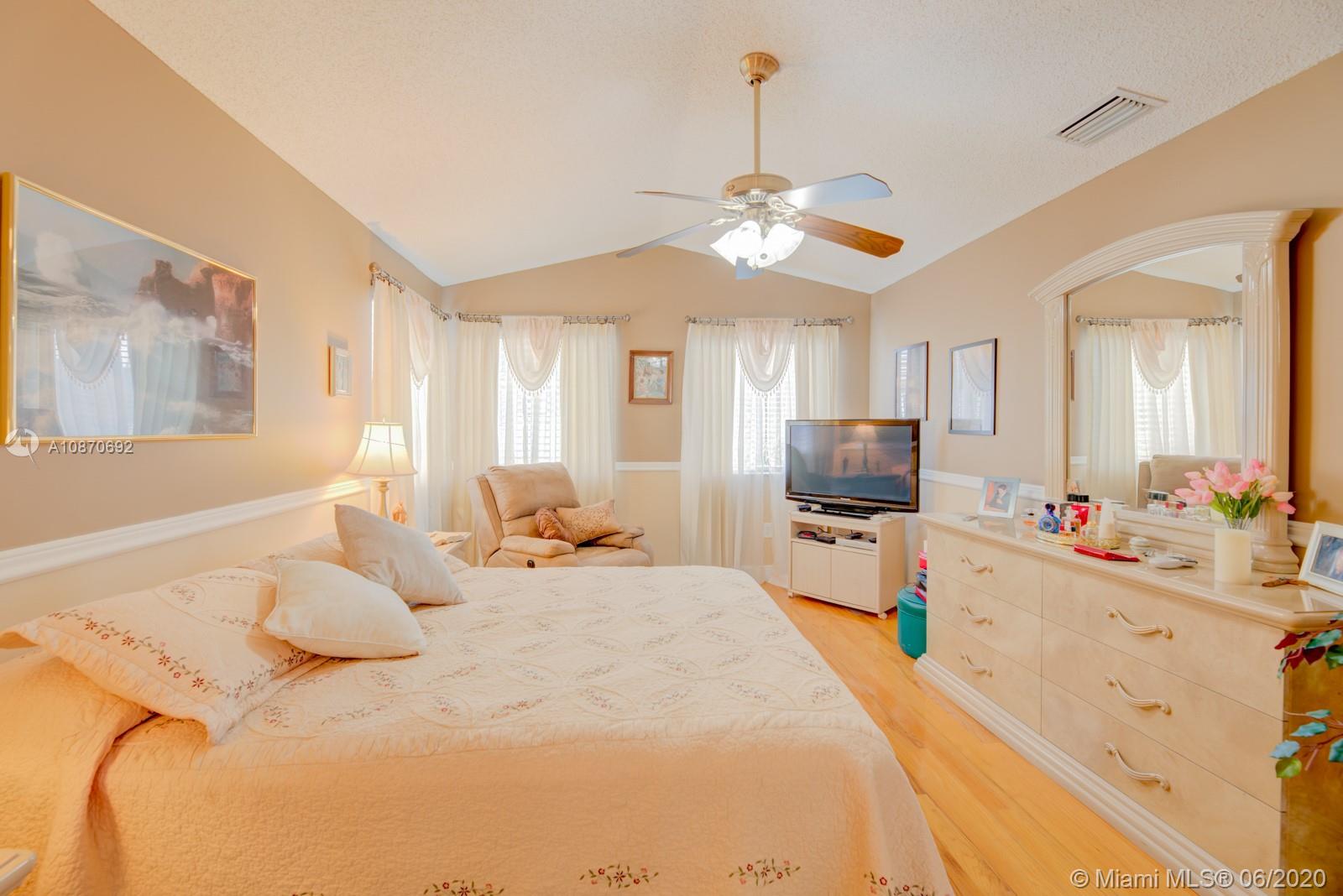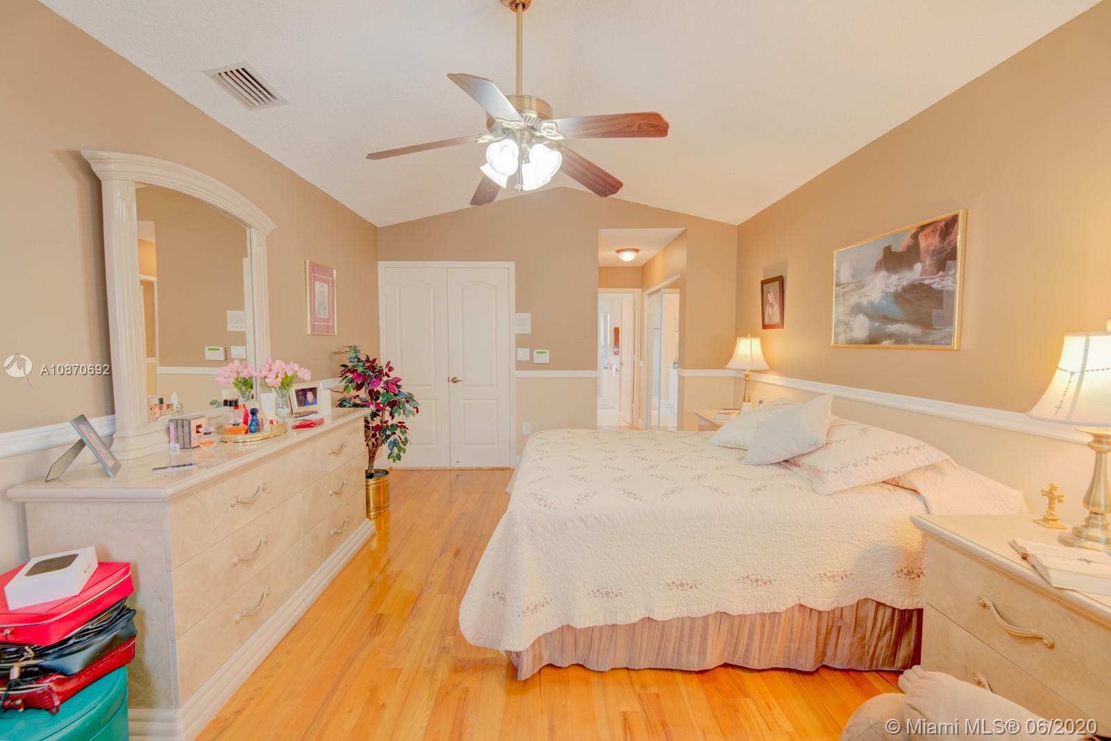 Beautiful 3 bedroom, 2.5 baths + family room home with 2 car garage, located in the highly desirable family friendly community of Costa Verde in Doral. This property has a new A/C unit. Spacious kitchen with quartz countertops. Handmade Saltillo/terra cotta tile downstairs and hardwood floors in the stairways and second floor level. Large master bedroom with double door entry and cathedral ceiling with large walk-in his & hers closet. Master bathroom with roman tub & shower. Hurricane accordion shutters throughout. Impeccably manicured backyard. Property located near Publix, Dolphin and International Malls, great restaurants & shopping areas. Low HOA fee, $219 per month includes 24 hr security, pool and children's playground. Your New Home Awaits! OWNER IS VERY FLEXIBLE WITH SHOWING TIMES